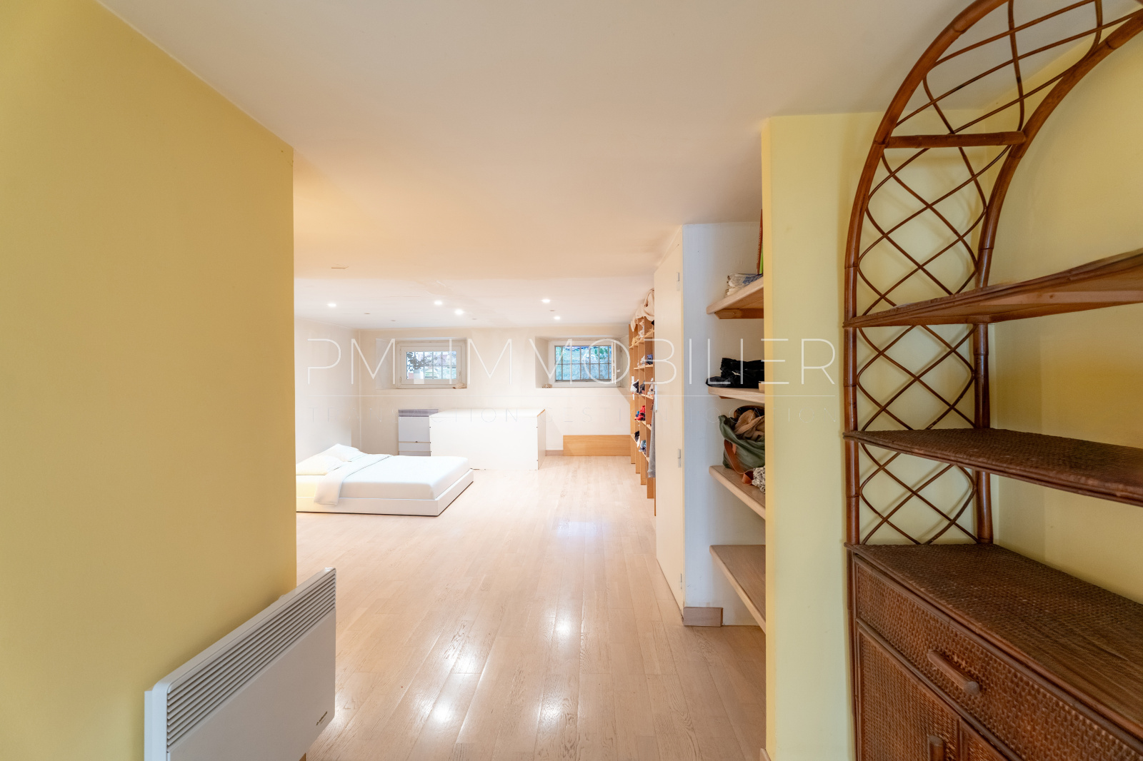 A l'étage le coin nuit propose une vaste chambre principale (33 m2) aux volumes rares, ainsi qu'un espace complémentaire (11 m2) pouvant accueillir un bureau, une chambre d'appoint ou un dressing selon les besoins.
