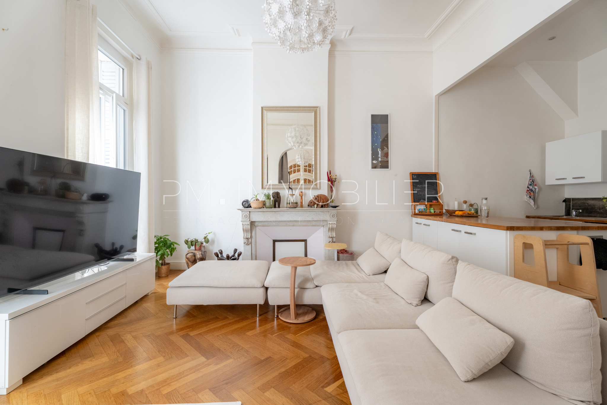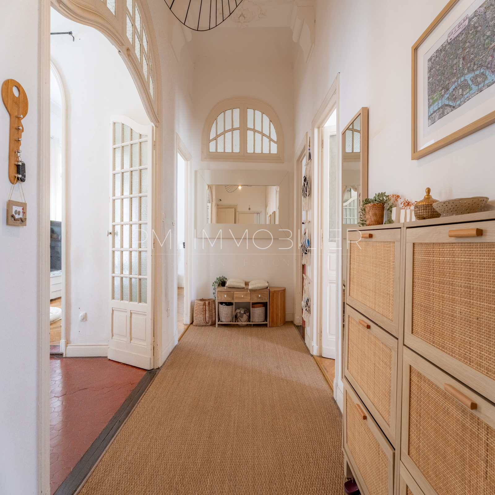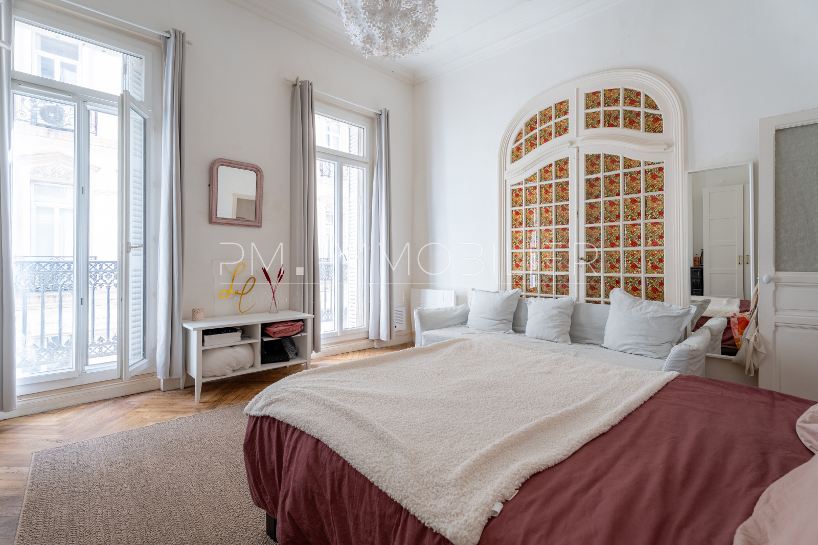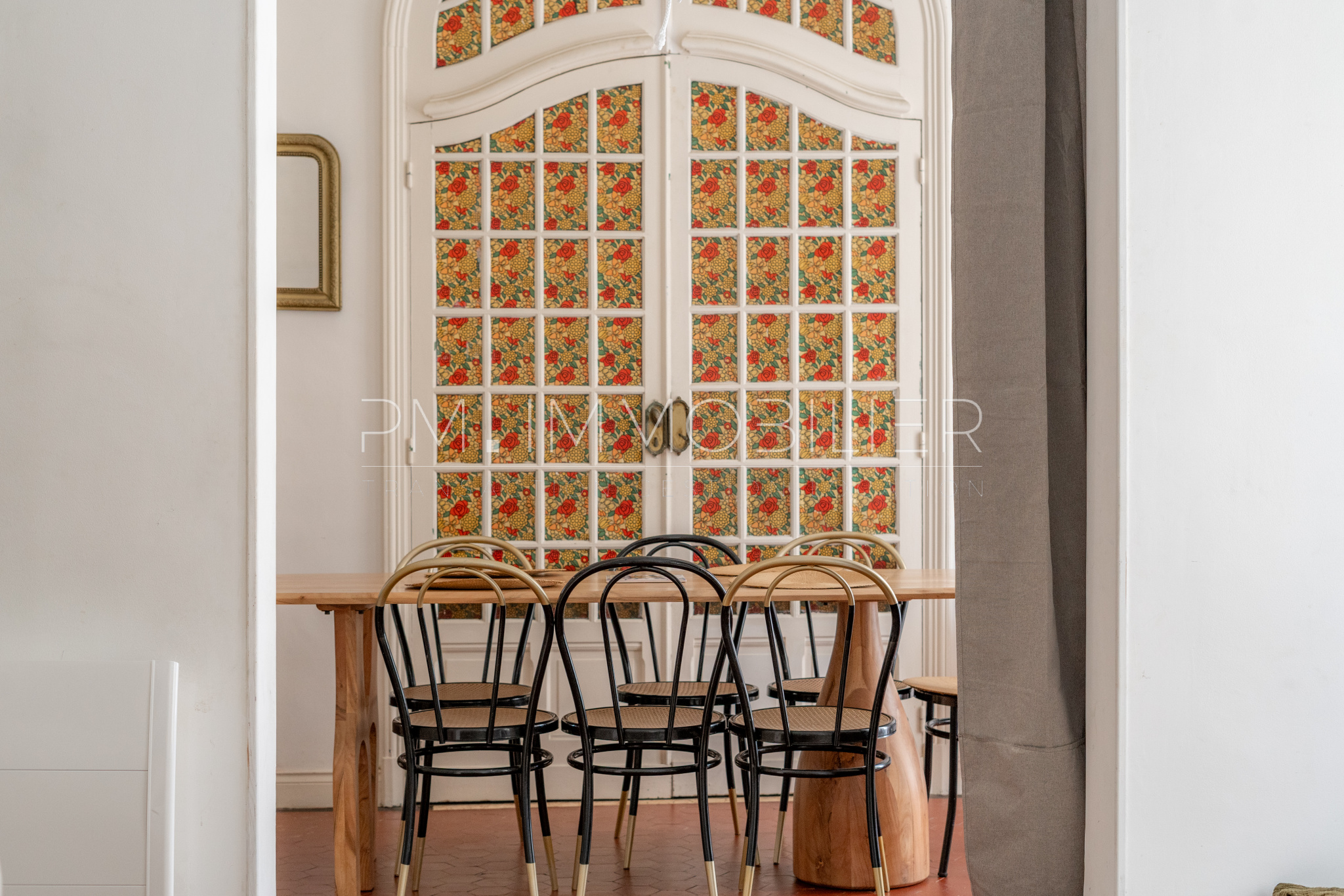 L’appartement a su préserver tout le charme de l’ancien avec des prestations d’époque soigneusement conservées : parquet en point de Hongrie en excellent état, tomettes authentiques, moulures raffinées et superbes portes vitrées esprit verrière structurant les espaces avec élégance tout en laissant circuler la lumière.