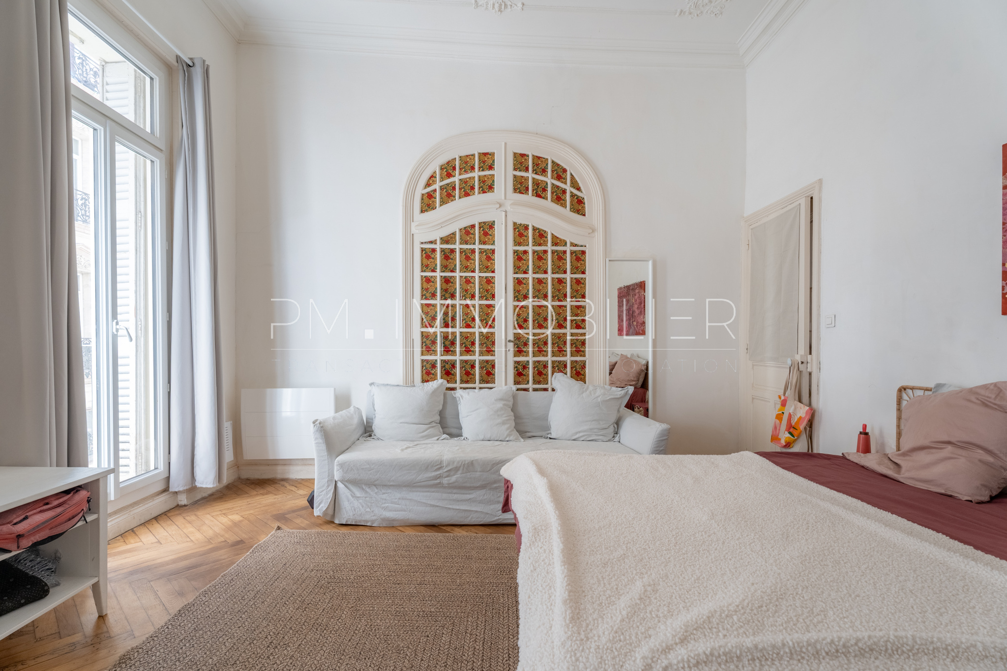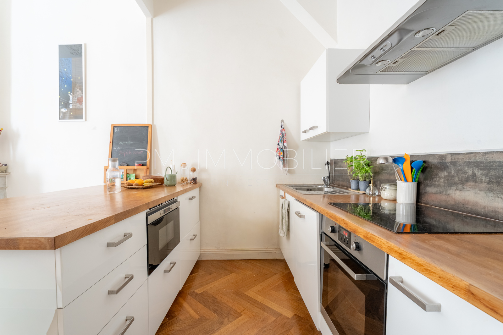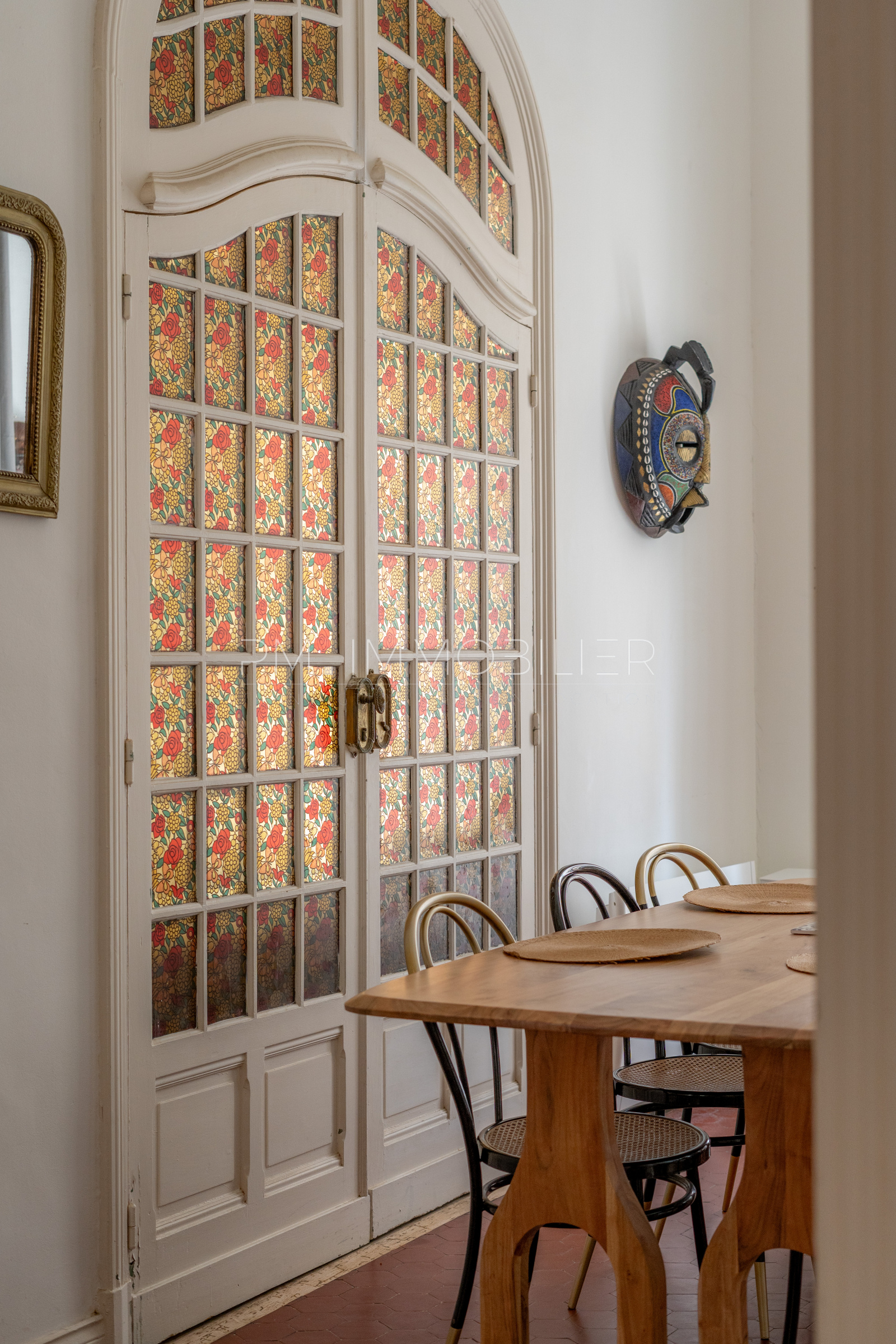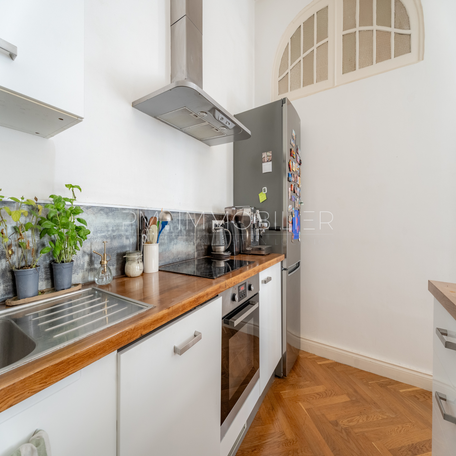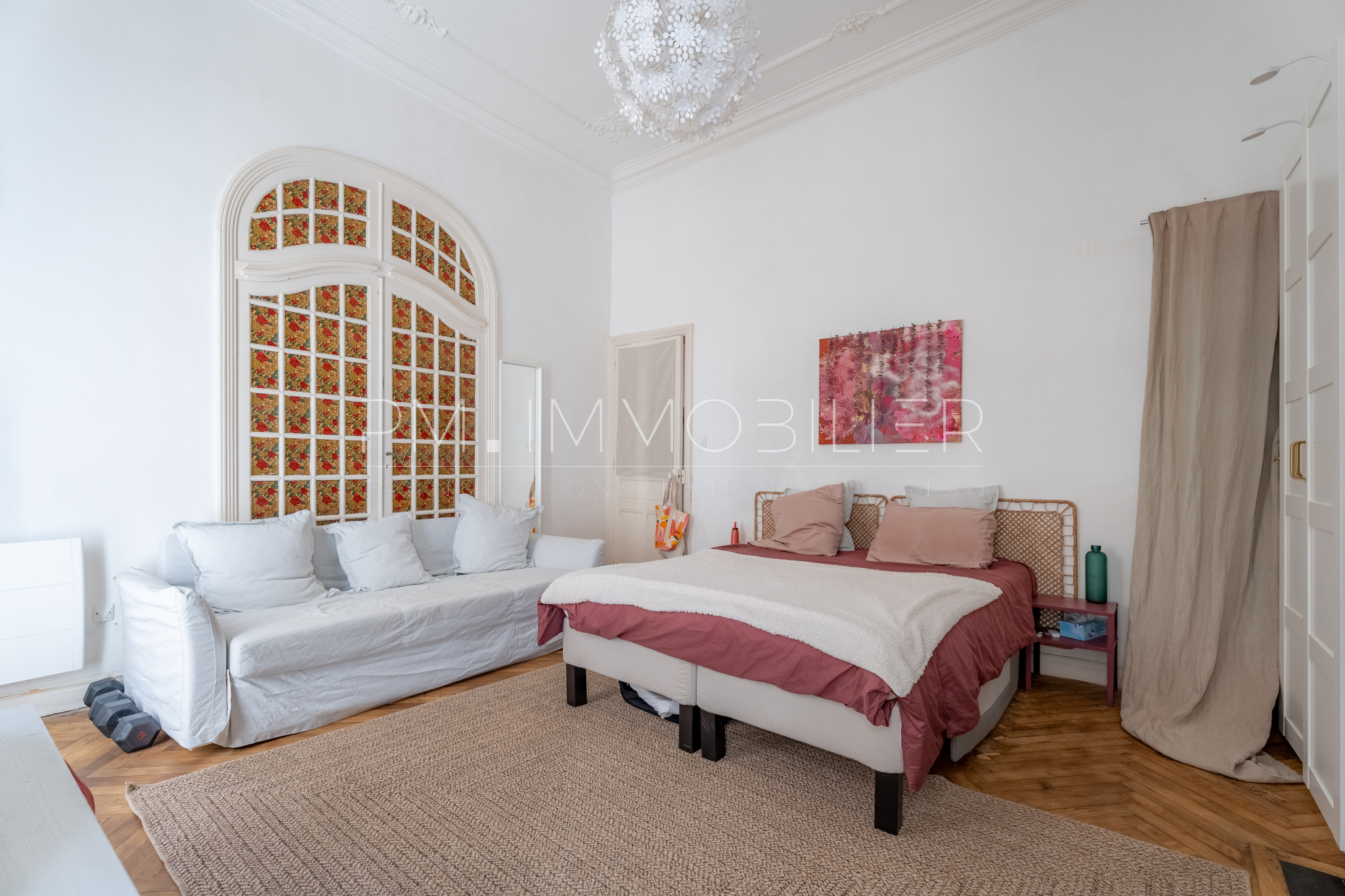 L’appartement a su préserver tout le charme de l’ancien avec des prestations d’époque soigneusement conservées : parquet en point de Hongrie en excellent état, tomettes authentiques, moulures raffinées et superbes portes vitrées esprit verrière structurant les espaces avec élégance tout en laissant circuler la lumière.