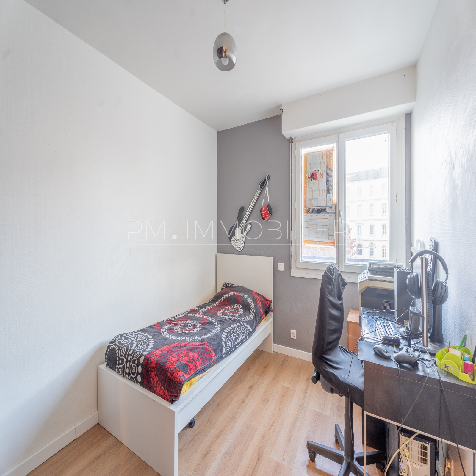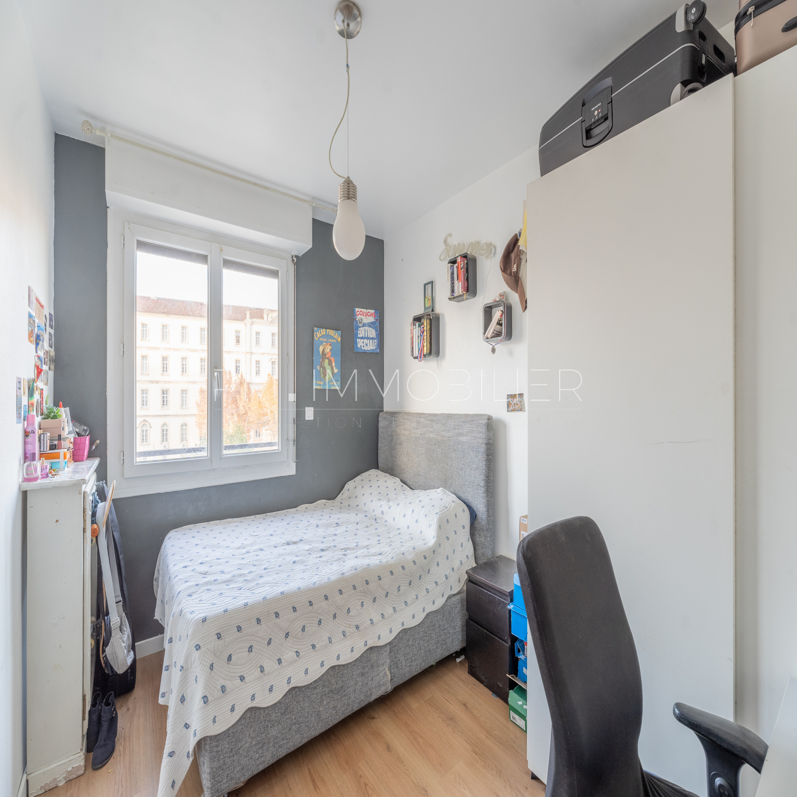 Un couloir dessert la partie nuit, qui abrite 4 chambres, toutes offrant une vue dégagée et lointaine sur le parc du lycée Saint-Charles, côté Est. L'appartement dispose également d'une salle de bains et de WC séparés.