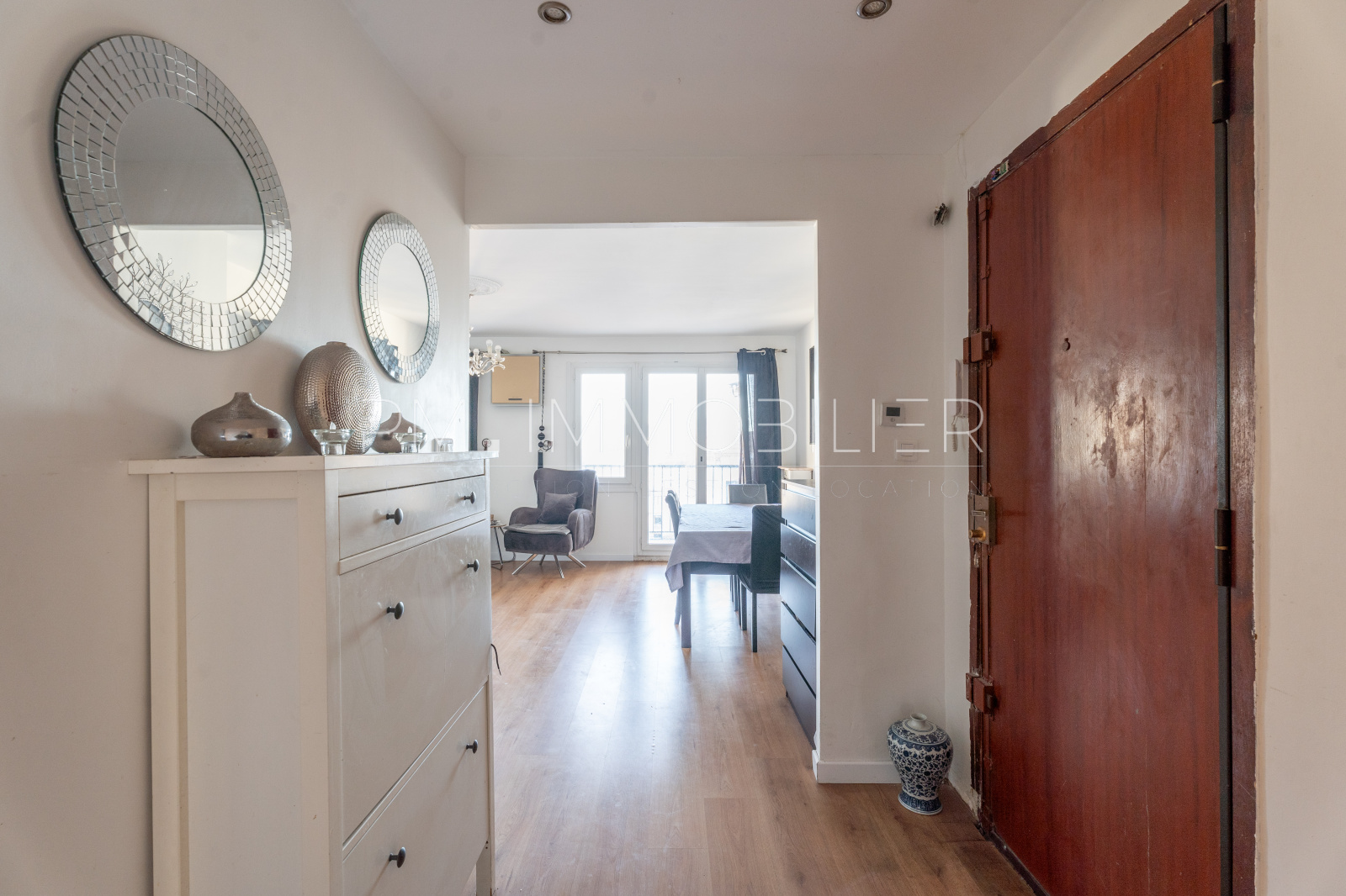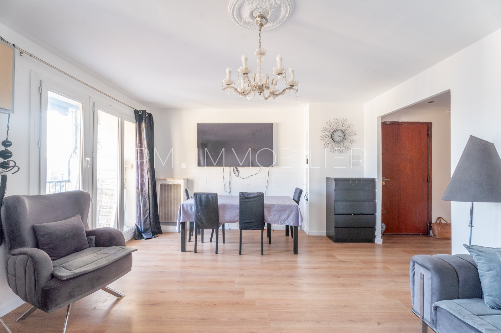 La porte d'entrée en bois, typique des années 60, s'ouvre sur un dégagement permettant d'accéder directement à la pièce principale de 25 m², très lumineuse, qui bénéficie d'un balcon offrant une vue agréable et dégagée au Sud sur les toits. La cuisine, séparée, est aménagée et équipée. Quelques travaux permettront de personnaliser ce bien et d'en faire un coccon familial.
