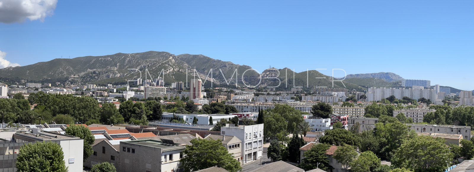 Architecture récente pour cet immeuble construit en 2013, idéalement située dans le quartier de la Capelette, qui accueille au 7ème étage sur 8 un appartement de type 3 de 57,50m2 carrez qui bénéficie d’une exposition Est et offre une vue entièrement dégagée sur les collines.