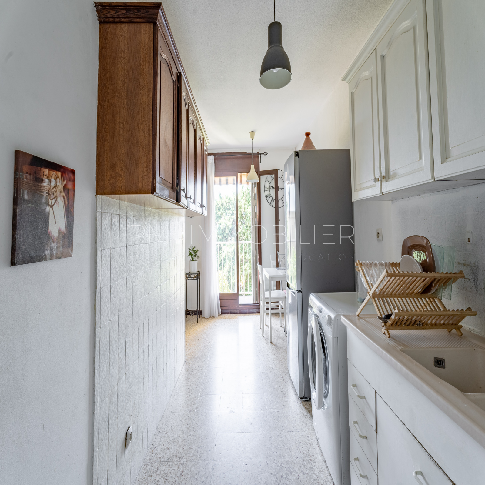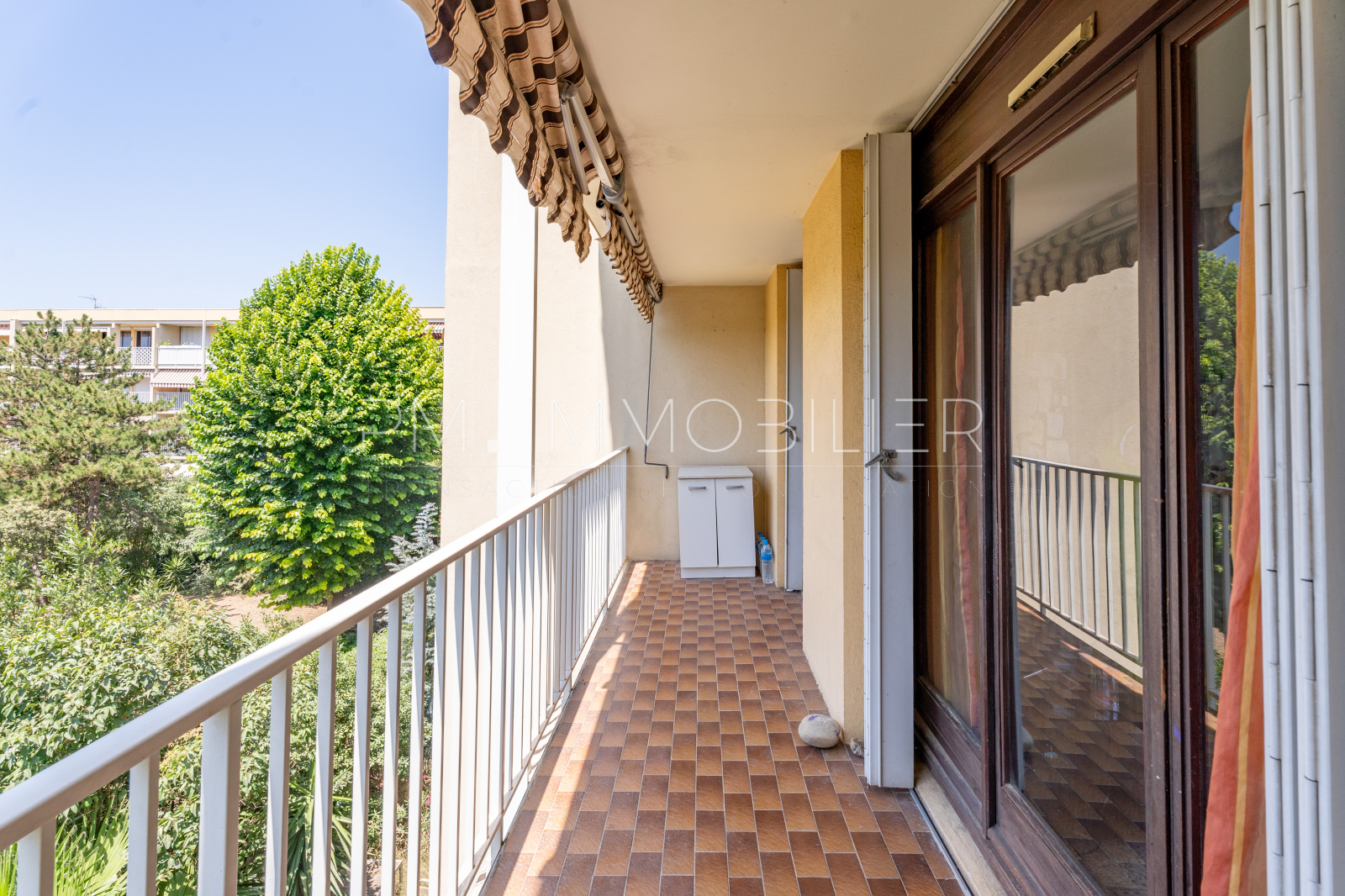 L'appartement est très lumineux. La pièce de vie dispose de deux grandes portes-fenêtres qui s'ouvrent à l'ouest sur un beau balcon de 7,44 m², donnant sur la verdure et apportant une belle lumière naturelle dans le séjour. Ce balcon dispose également d'un grand cellier.