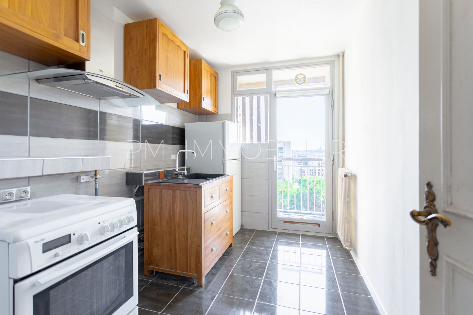 Composé d'une entrée avec rangements desservant une cuisine séparée aménagée avec loggia de 3 m2 et un séjour lumineux exposé plein sud sans vis-à-vis avec vue mer donnant sur un balcon de 5 m2.