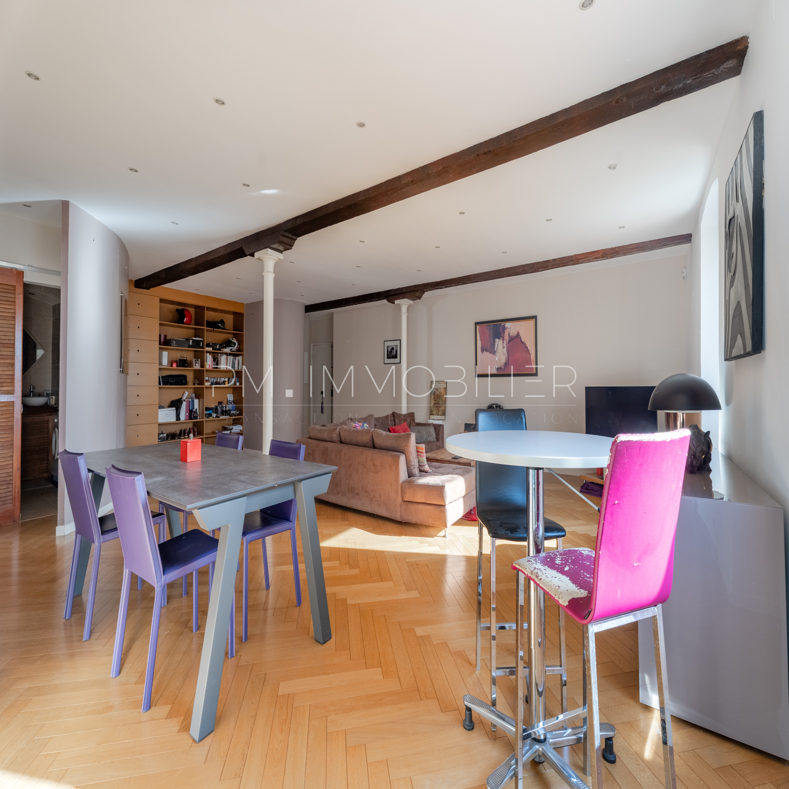 Architecture d’un ancien moulin entièrement rénové, situé dans une impasse au calme au cœur du quartier Chutes-Lavie, cet appartement développe 107 m² et offre un véritable esprit loft grâce à ses volumes exceptionnels, ses poutres apparentes et sa circulation fluide.