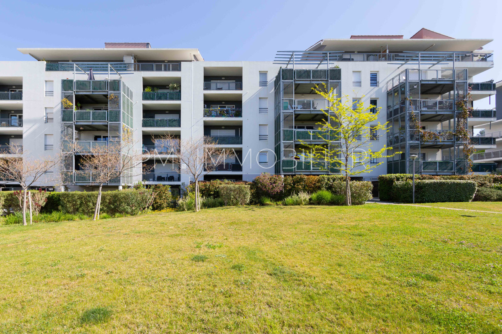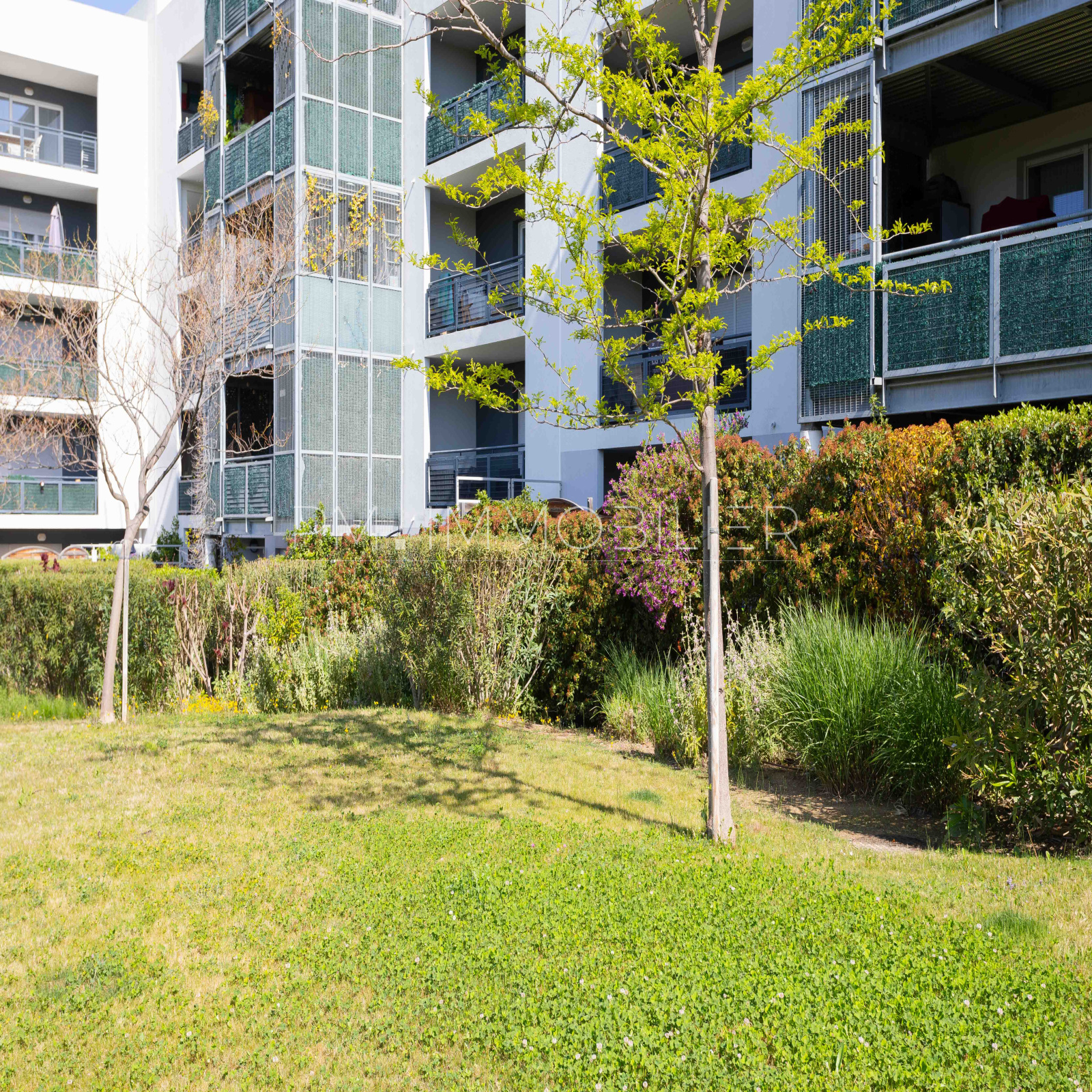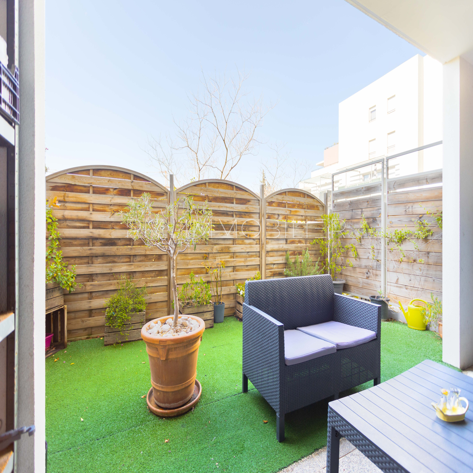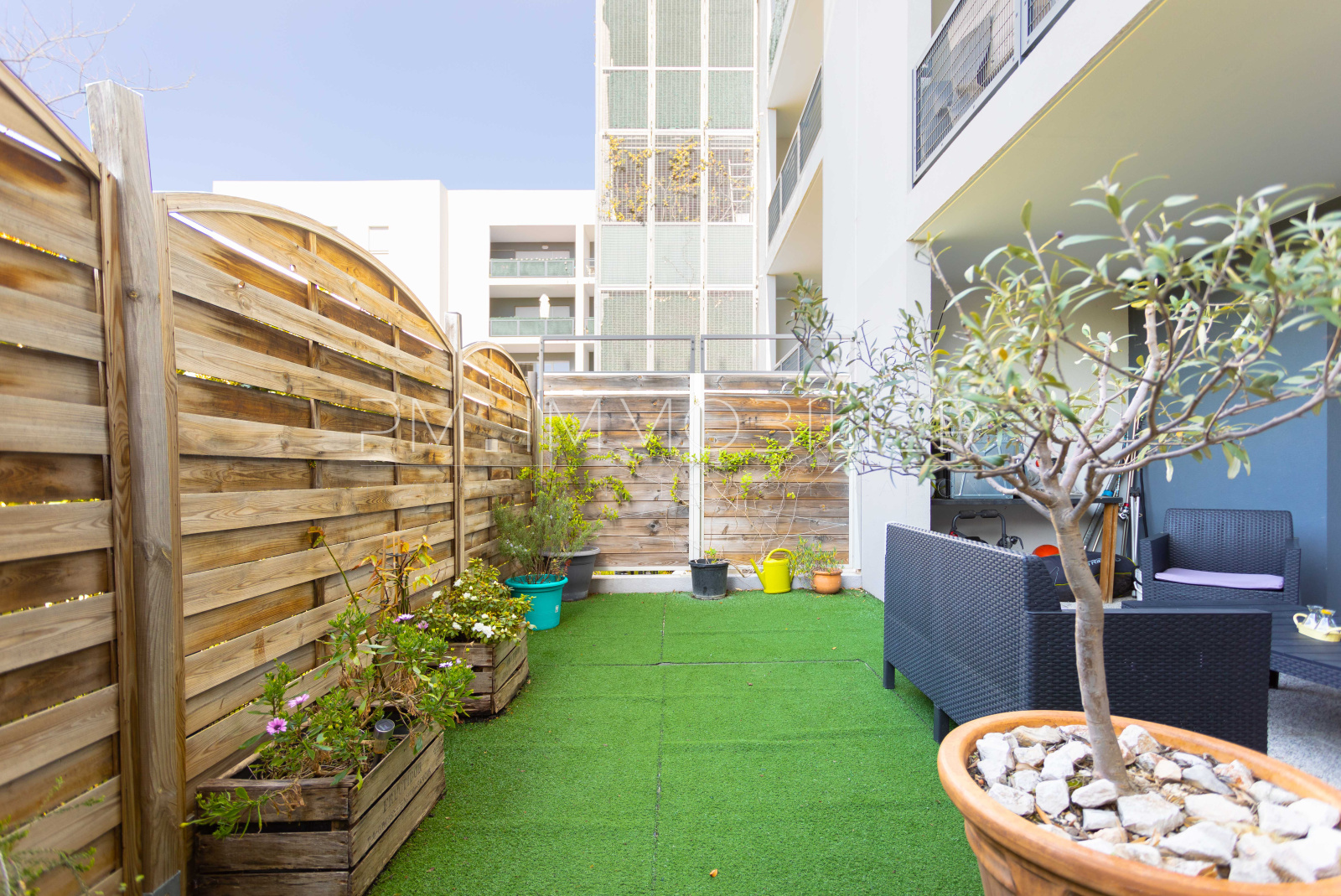 SOUS OFFRE - C'est sur les Hauts de Sainte Marthe que nous vous proposons dans une résidence recente ce beau rez-de-jardin. Le lieu dégage une douce atmosphère. L'entrée dessert logiquement de part et d'autre, les espaces nuit et jour. Plein Sud, le salon et la cuisine americaine donnent directement accès à la terrasse de 30m². Le couloir conduit ensuite à un dégagement qui dessert les deux chambres et la salle de bain familiale.