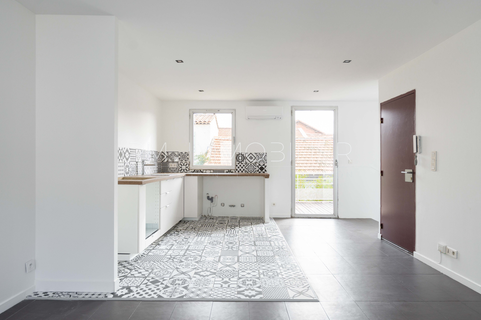 L'ouverture se fait directement sur la pièce de vie se composant d'une parrtie salon ainsi que d'une cuisine aménagée donnant sur une terrasse de 17m2 exposée idéalement Sud/Est.