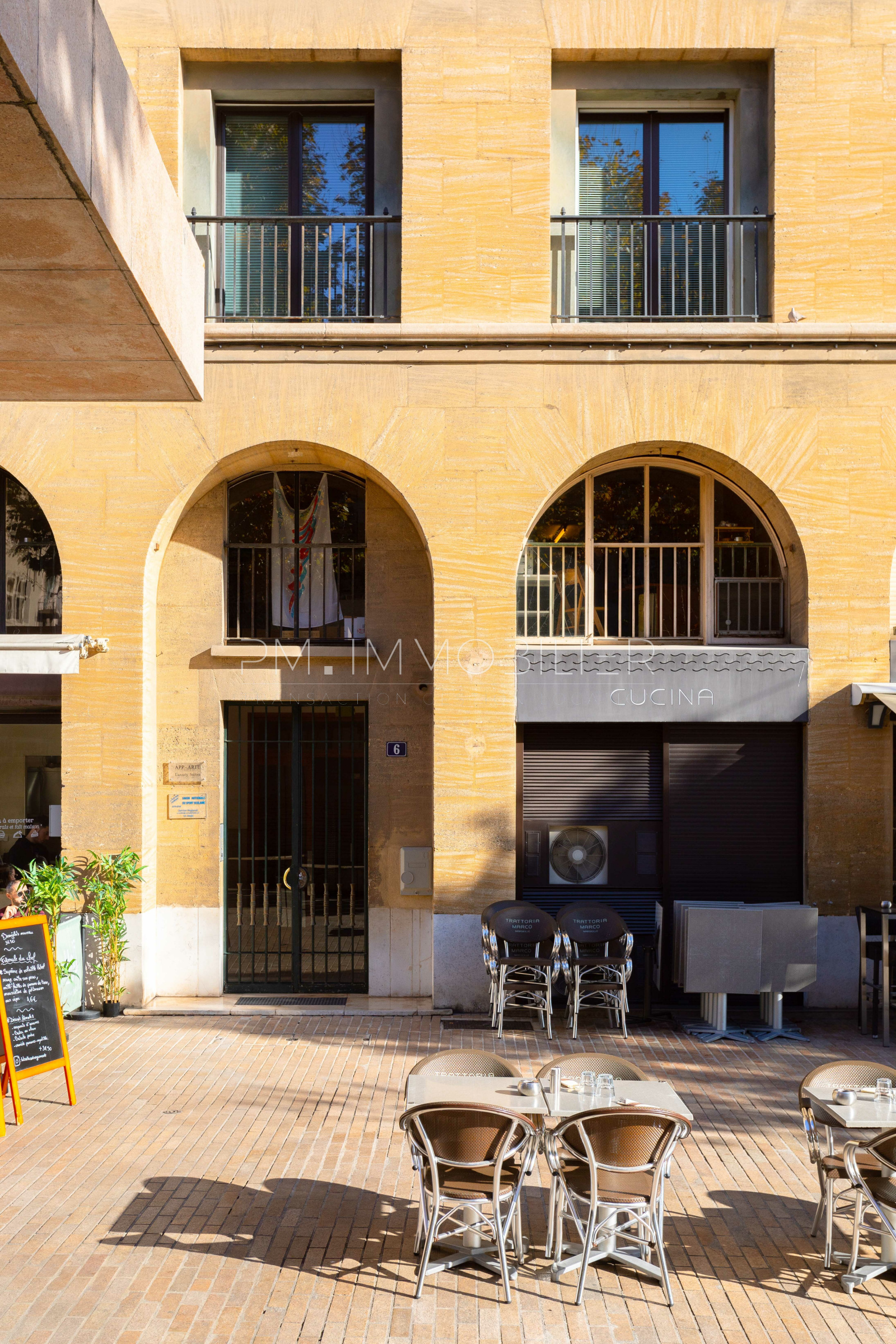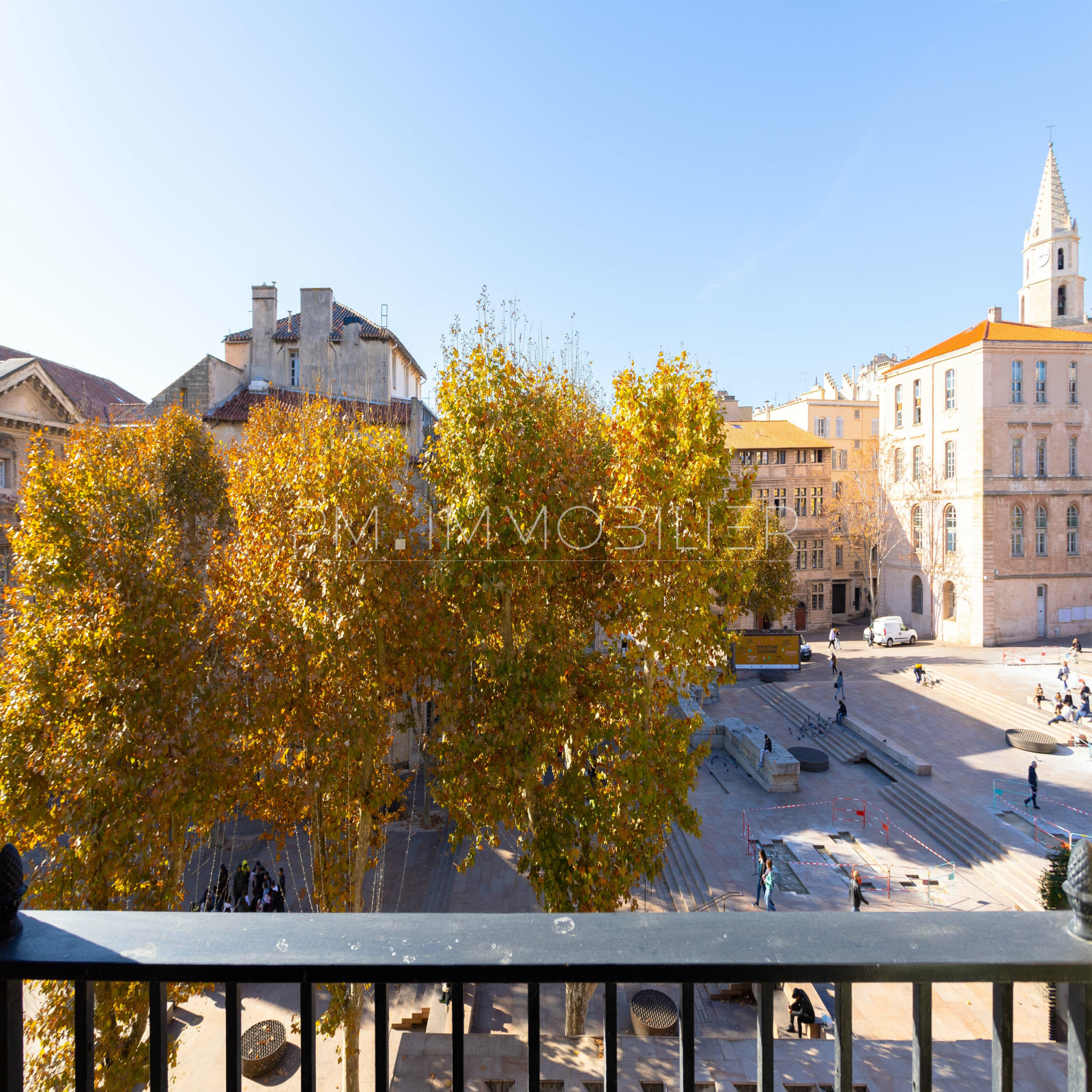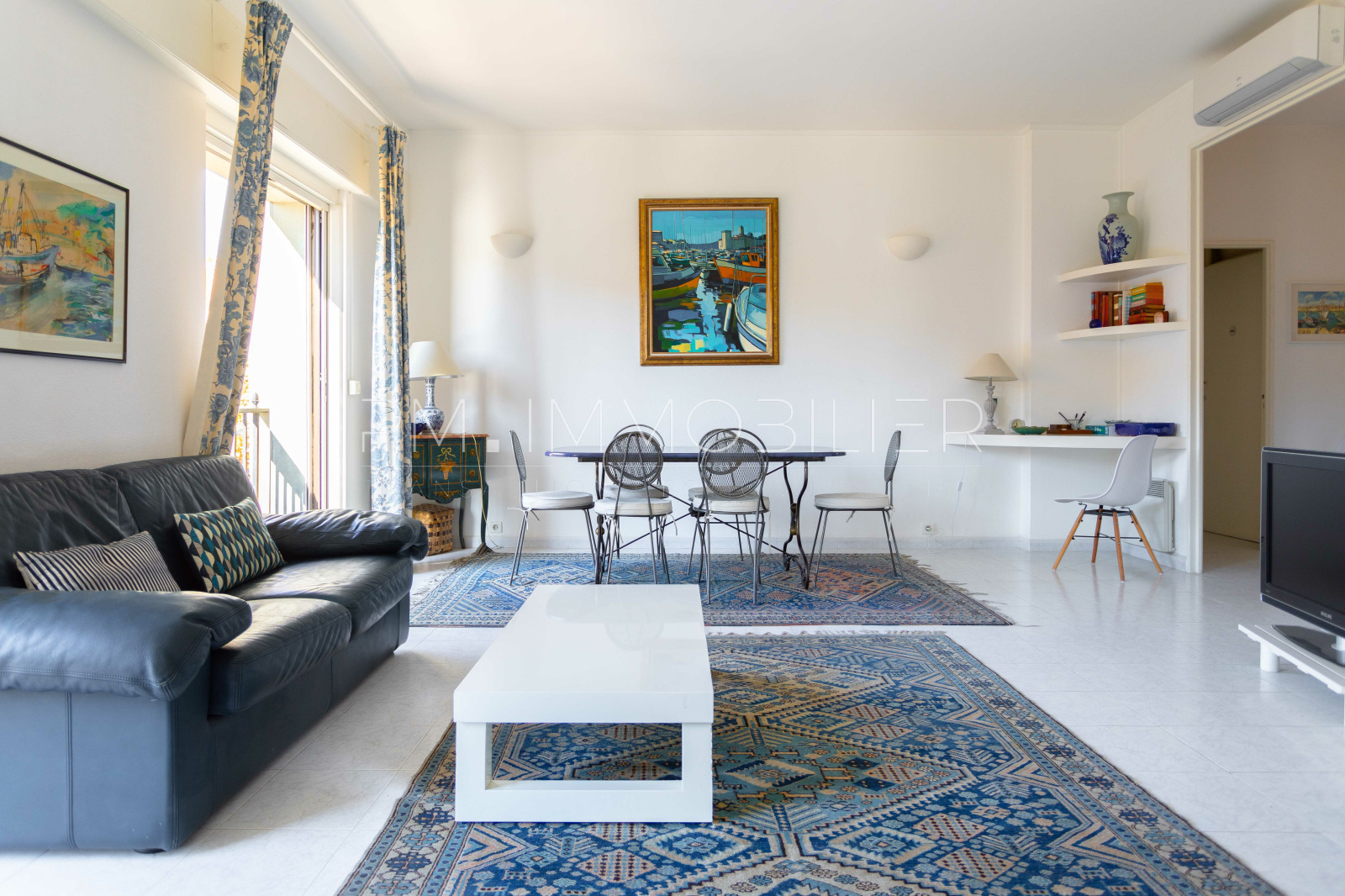 L'entrée s'ouvre le salon/salle à manger de 27 m2 laissant traverser la lumière par de grandes baies vitrées à galandage offrant une vue dégagée sur le Vieux-Port, la Mairie et l'Hôtel Dieu.