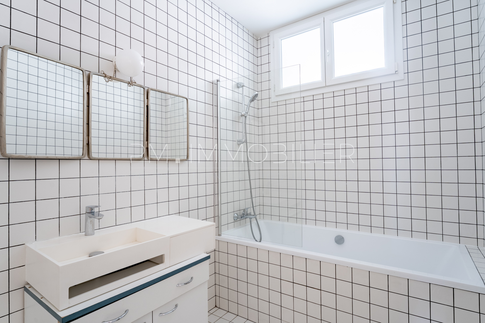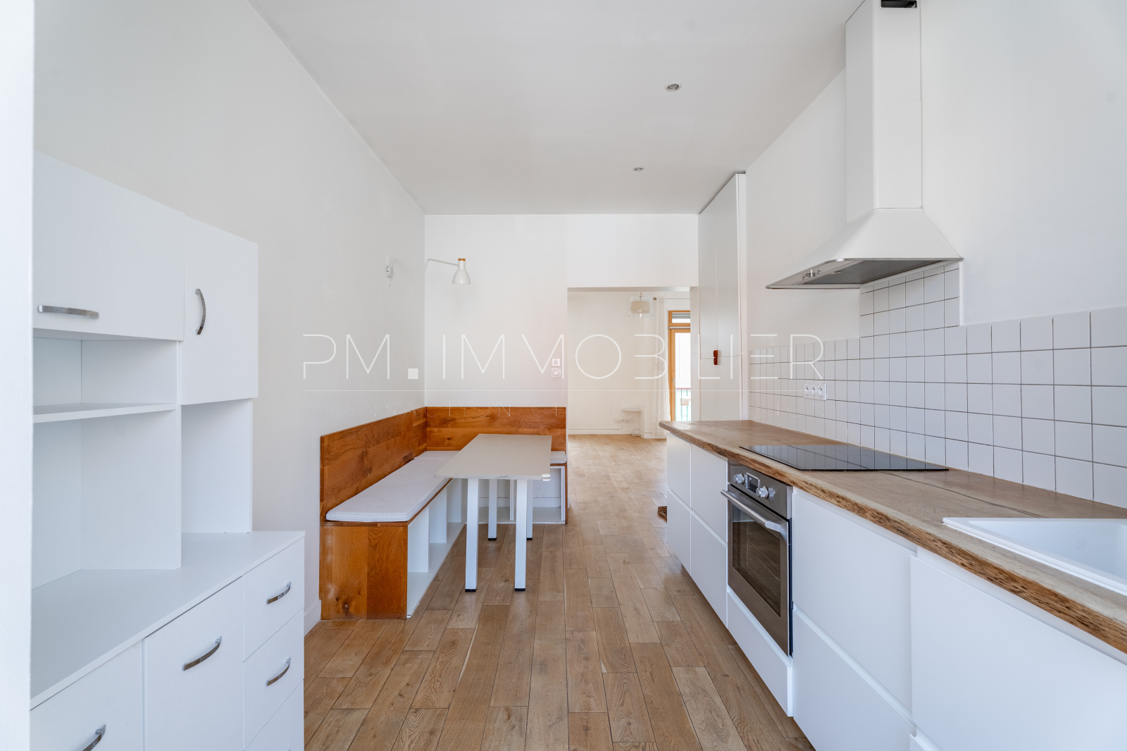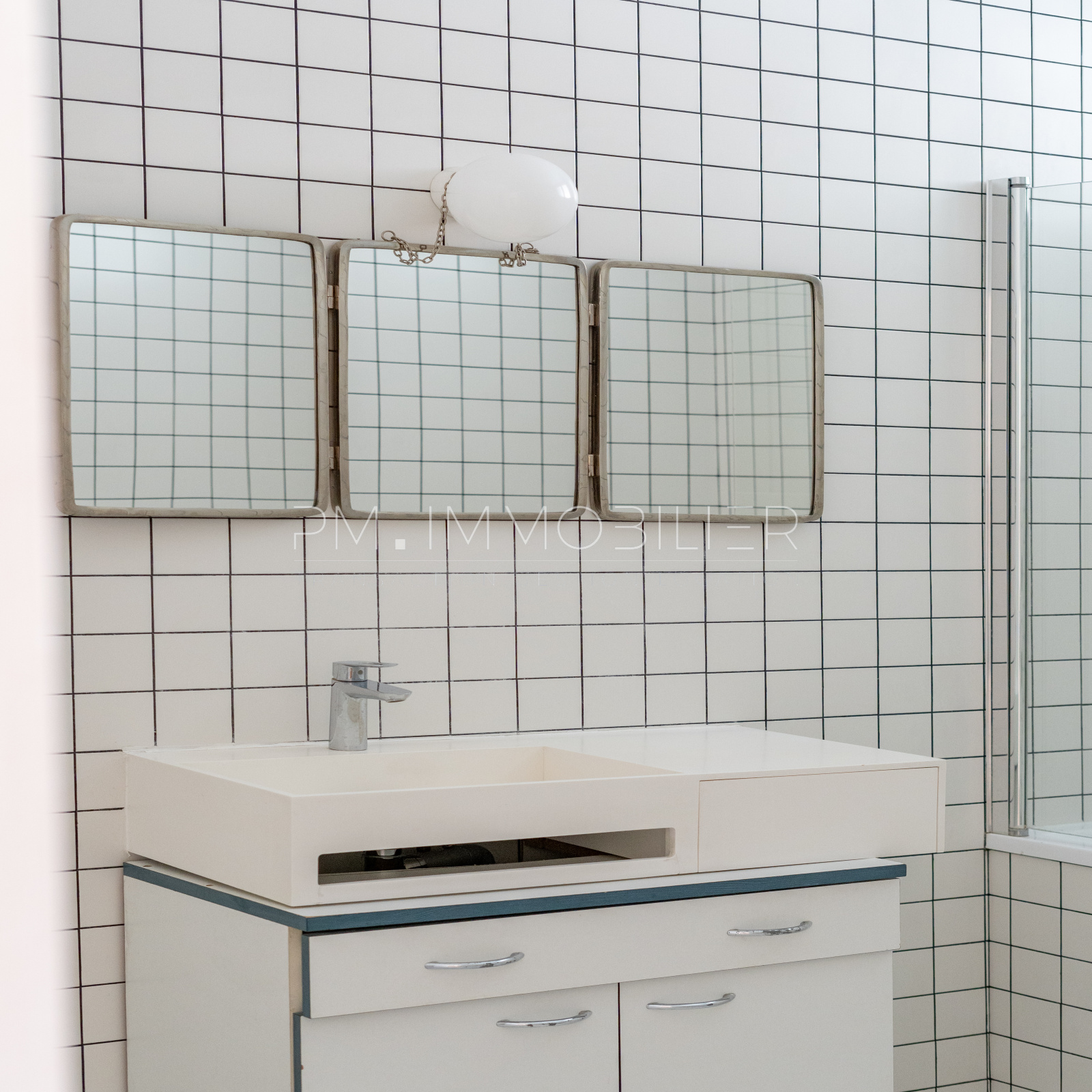 La cuisine, parfaitement équipée, offrant un espace repas lumineux et convivial,communiquant avec une loggia/buanderie. Les chambres disposent de rangements intégrés et d’un aménagement sur mesure, dans un esprit cabine, avec dressings intégrés, enitèrement climatisé.