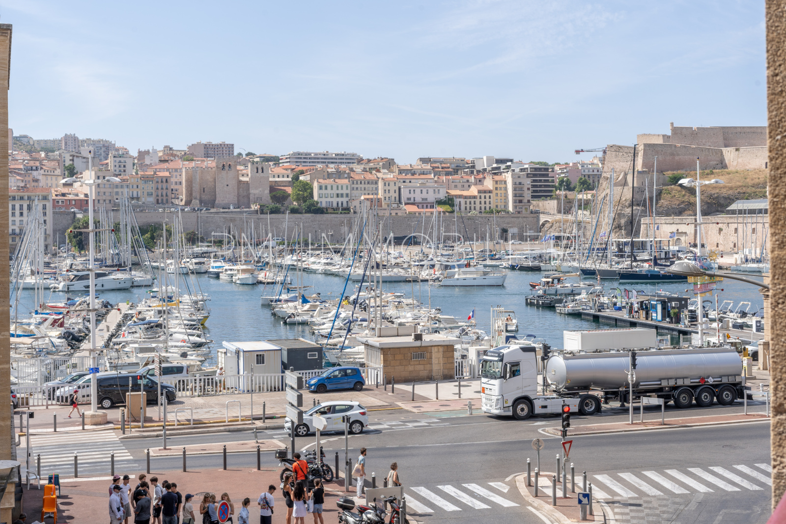 Initialement configuré en 4 pièces, le bien a été transformé en un spacieux 3 pièces baigné de lumière. Le séjour, aux volumes généreux, s’ouvre sur un balcon filant avec une vue imprenable sur les mâts, les coques et le va-et-vient du port, véritable invitation au voyage.