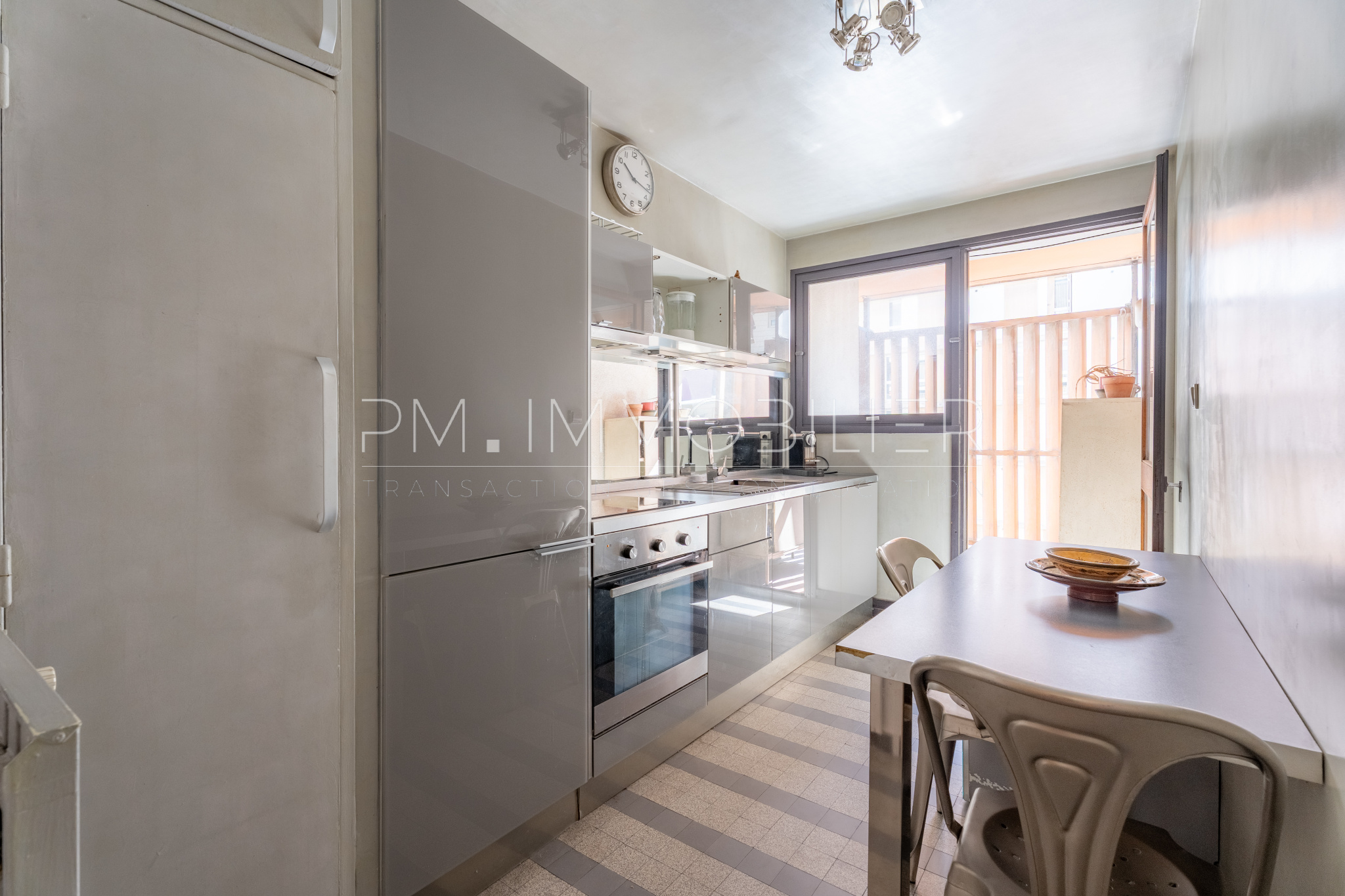 La cuisine, indépendante, moderne et bien équipée, complète cet espace de manière fonctionnelle.