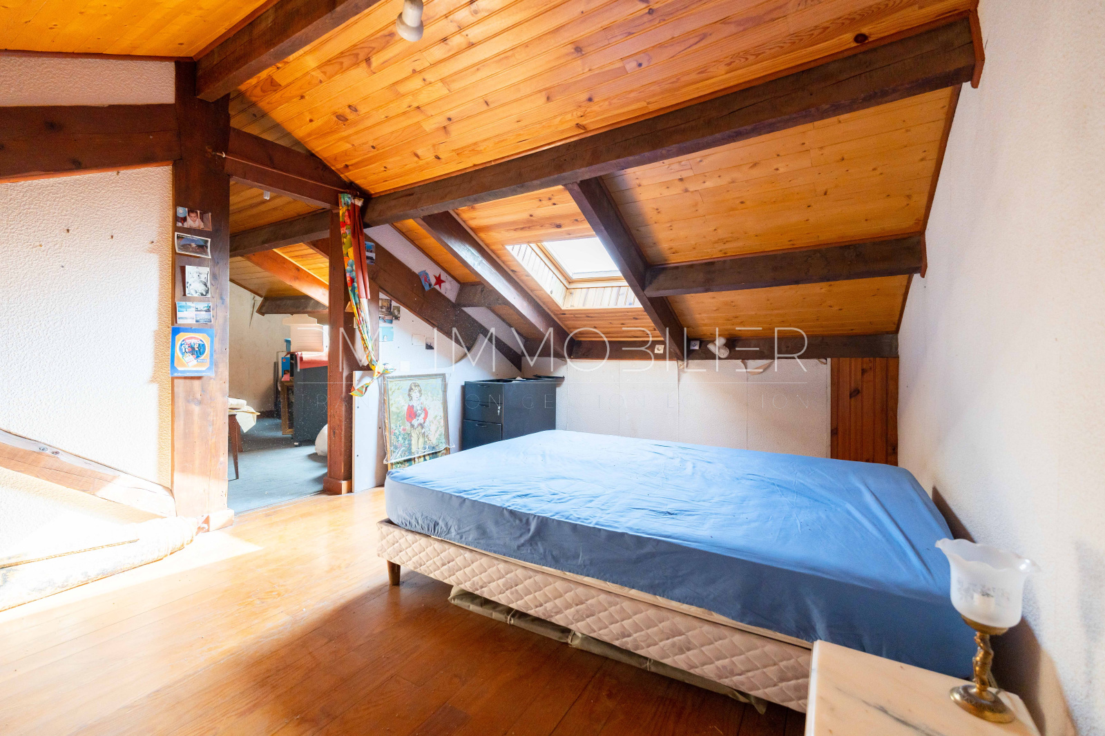 Le second niveau abrite un dégagement, une chambre mansardée ainsi qu'une salle d'eau.