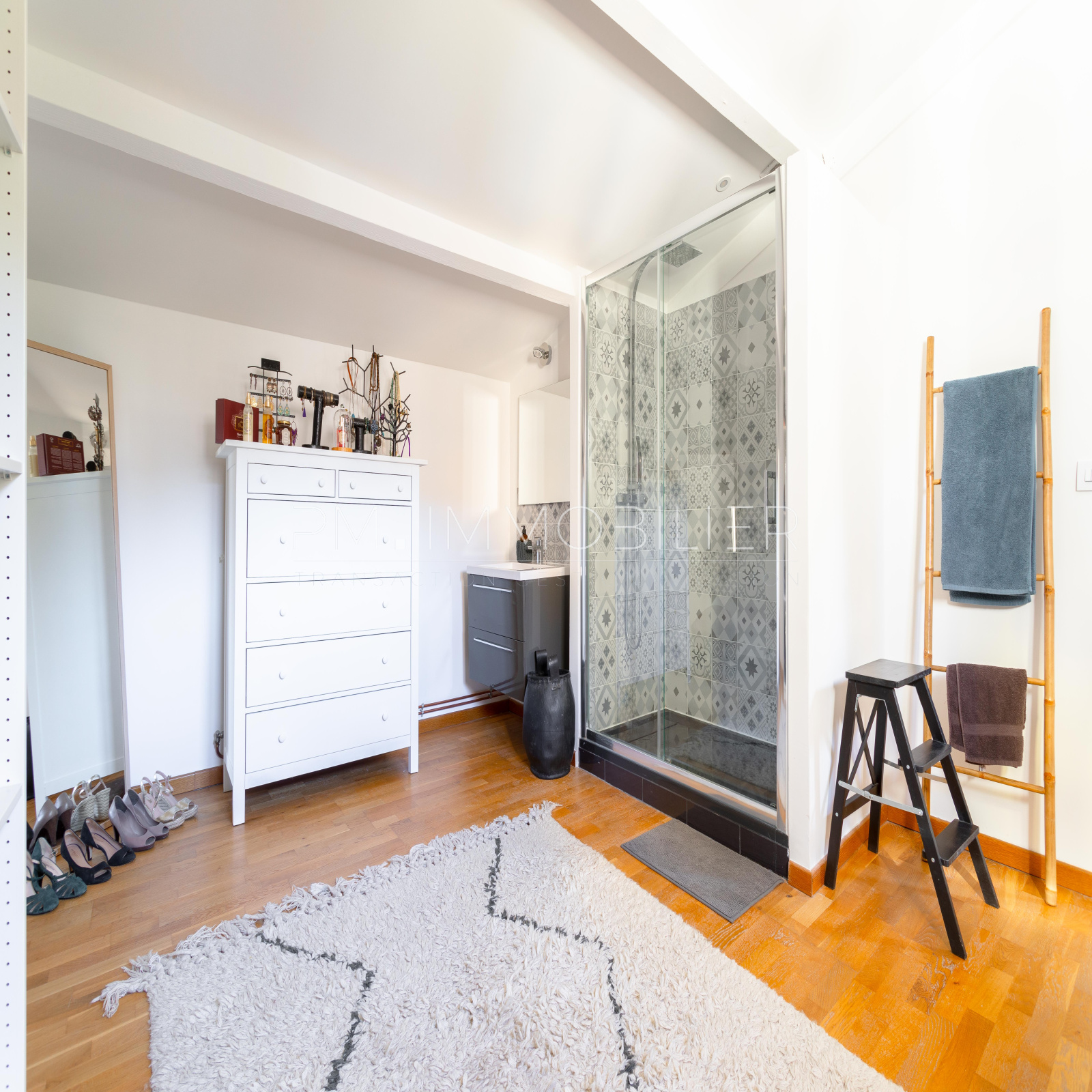 Au dernier étage la généreuse suite parentale se pare d'un dressing et d'une salle d'eau, le tout sur un plateau de 35m².