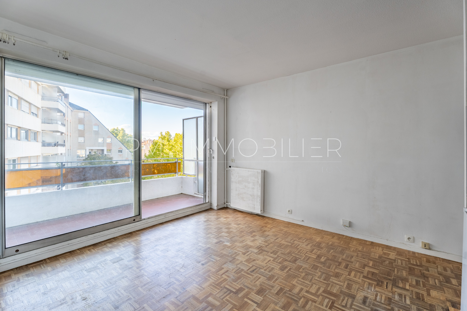 L’espace de vie, parqueté, comprend une kitchenette à aménager selon vos envies ainsi qu’une salle de bain avec baignoire. L’appartement nécessite quelques travaux de rafraîchissement, mais son potentiel et sa clarté en font une belle opportunité pour un premier achat ou un investissement locatif.