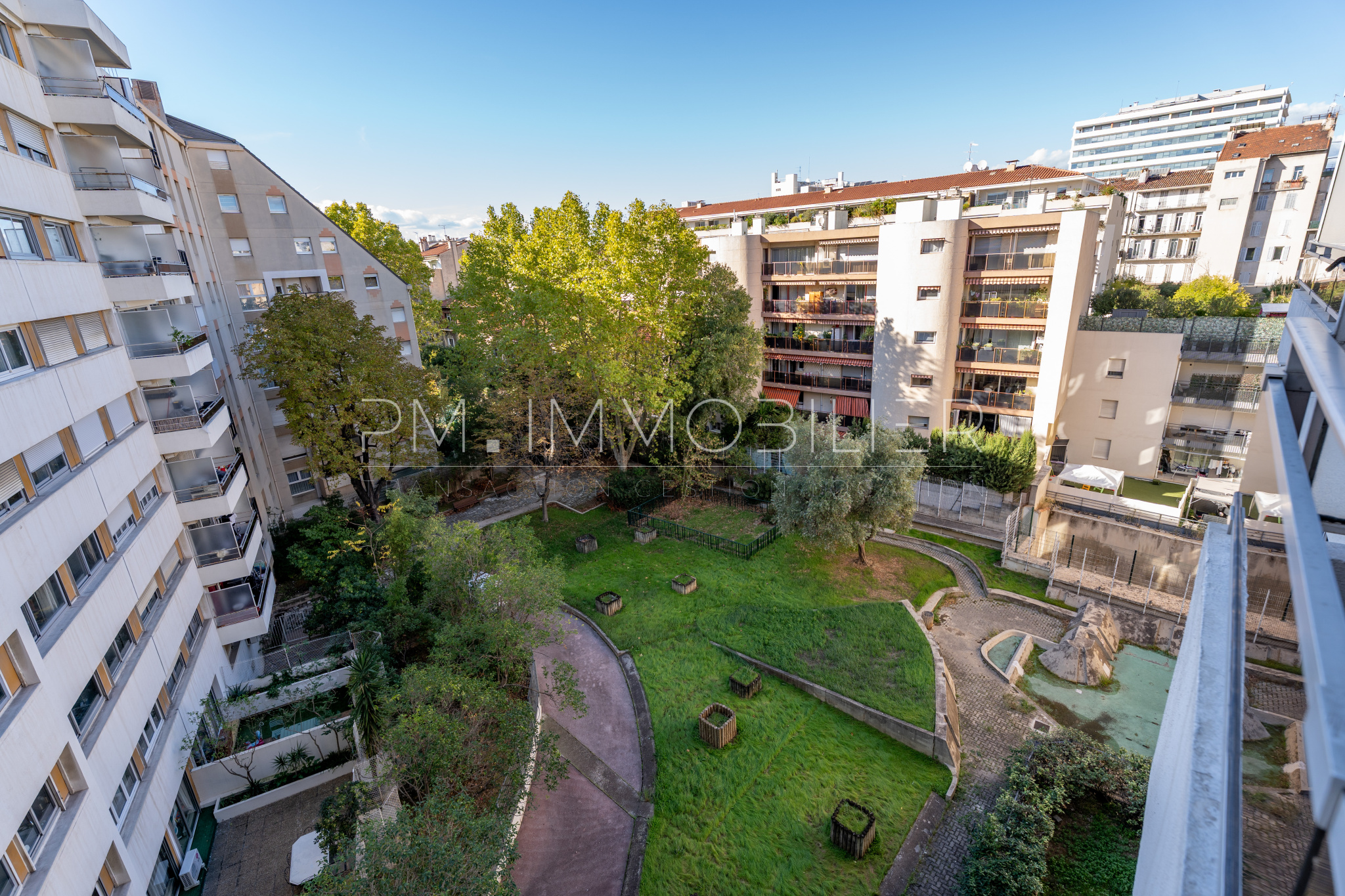 La copropriété dispose d’un jardin intérieur arboré, idéal pour profiter d’un cadre serein en plein cœur de la ville.