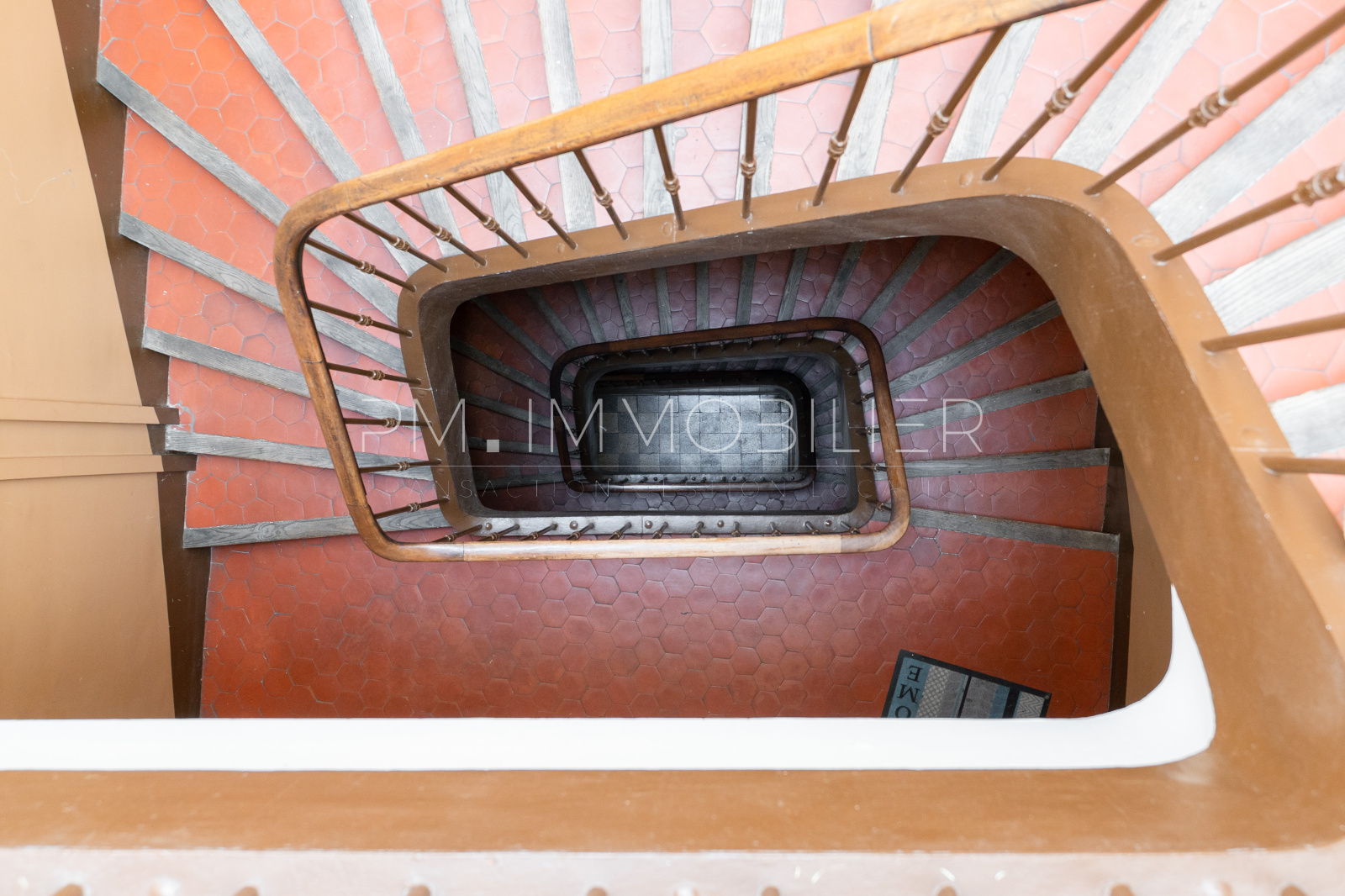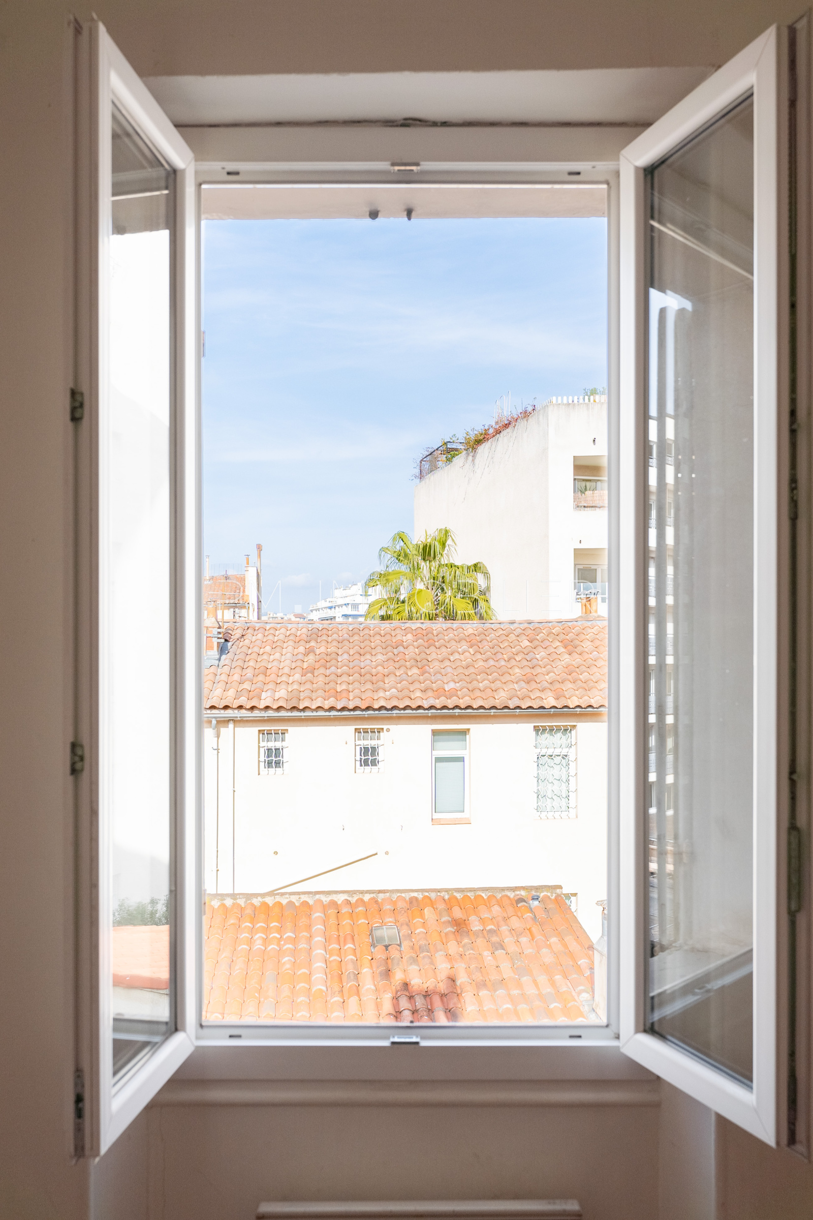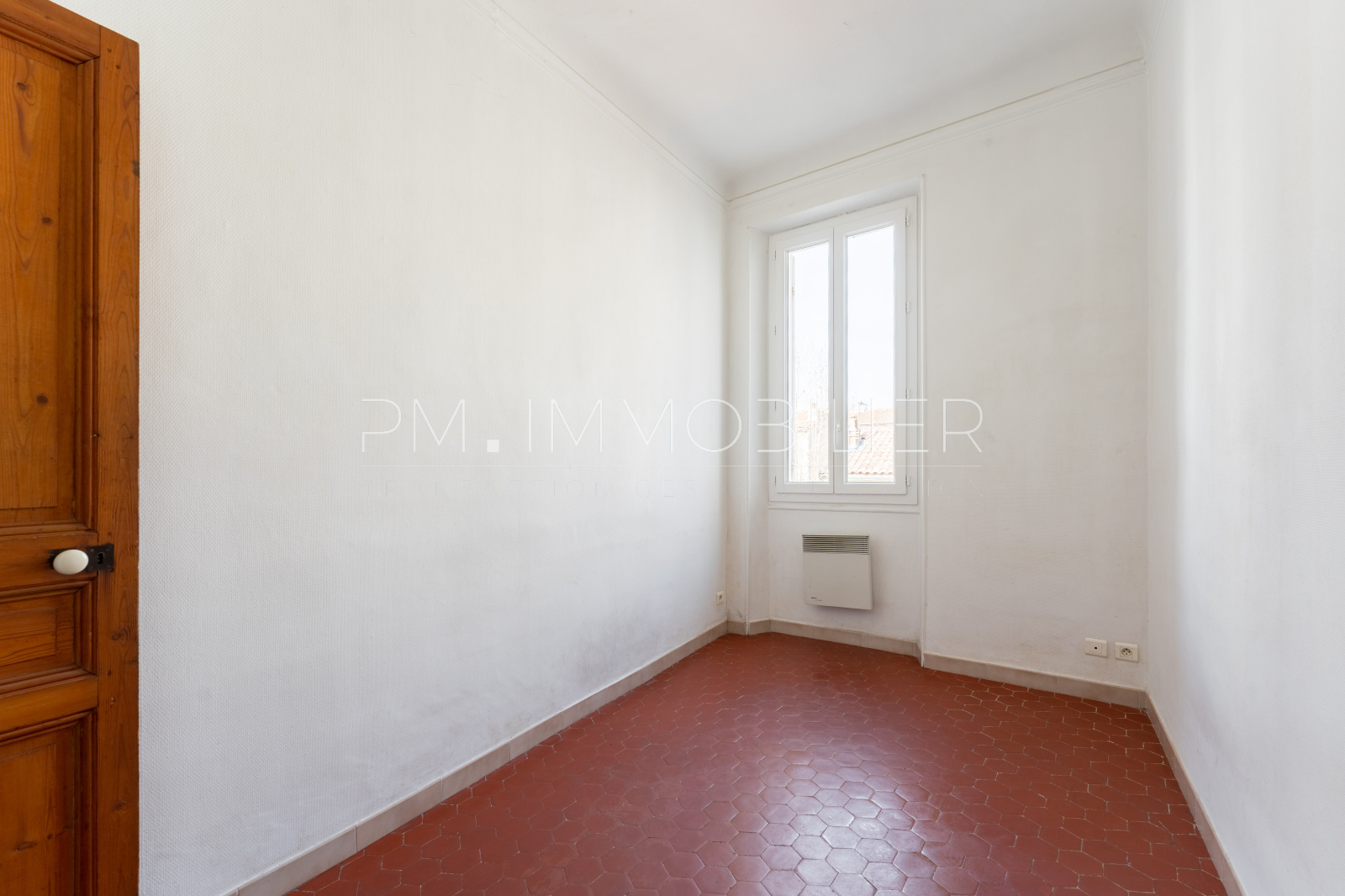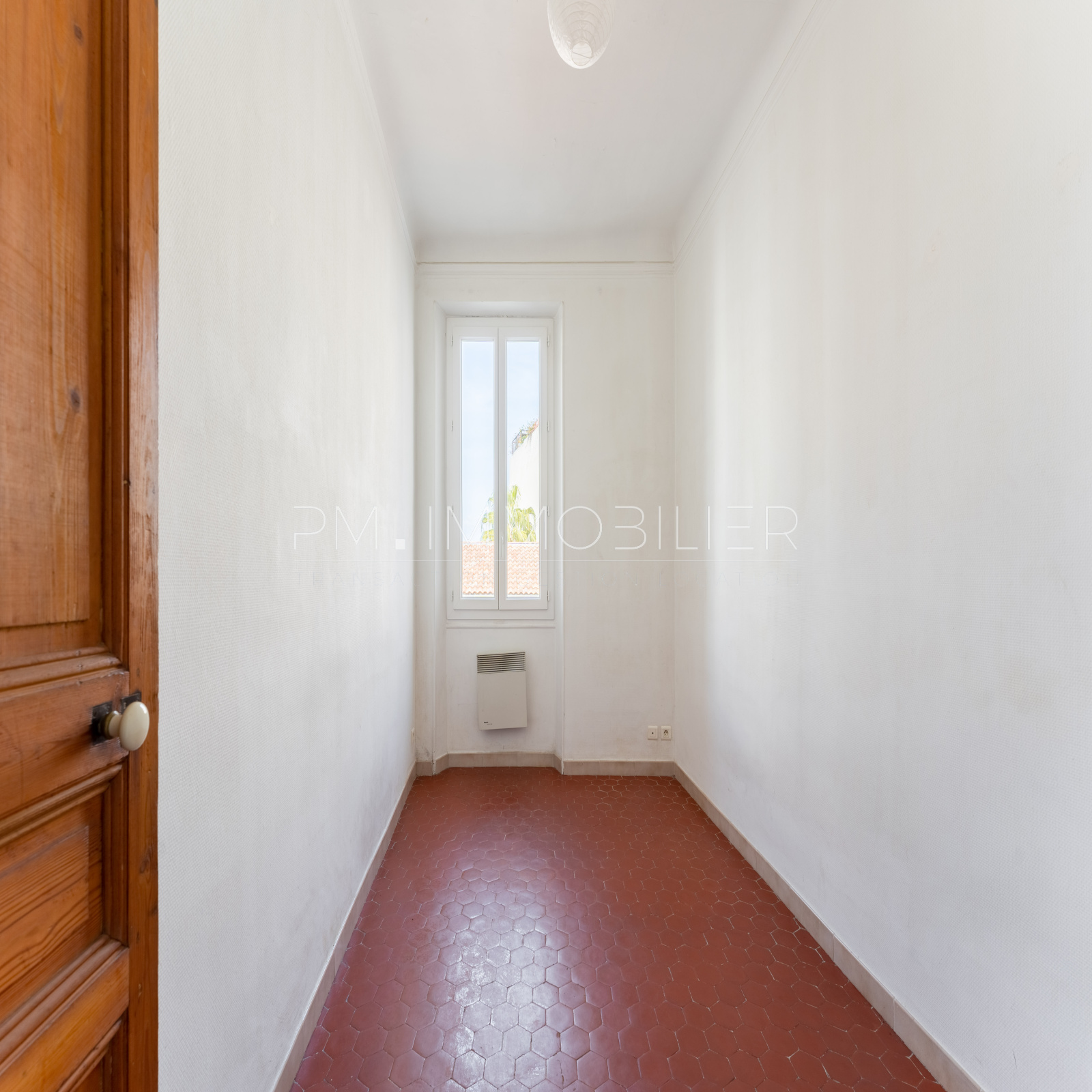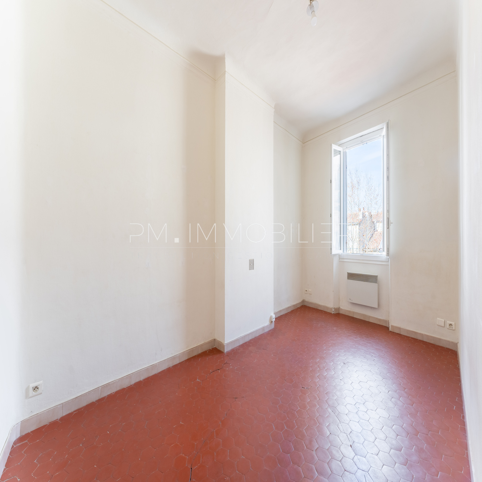 Au troisième et dernier étage d'un immeuble au calme, bien entretenu, l'appartement se compose d'une entrée avec rangements distribuant deux belles pièces revêtues de tomettes, puis une cuisine séparée et une salle de bains spacieuse.