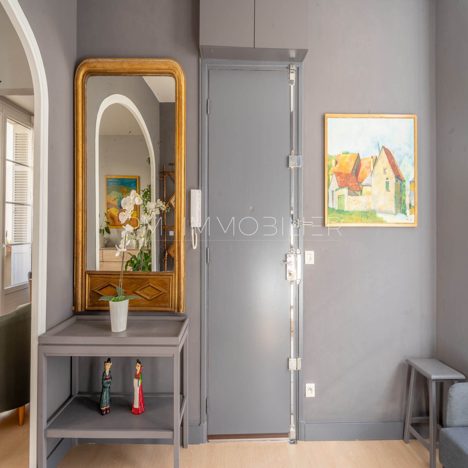 Entièrement rénové avec goût par sa propriétaire, cet appartement allie le charme de l'ancien rétro et le confort moderne (porte sécurisée, interphone et ascenseur). Ce petit immeuble, de seulement 10 appartements, est excessivement ben entretenu.