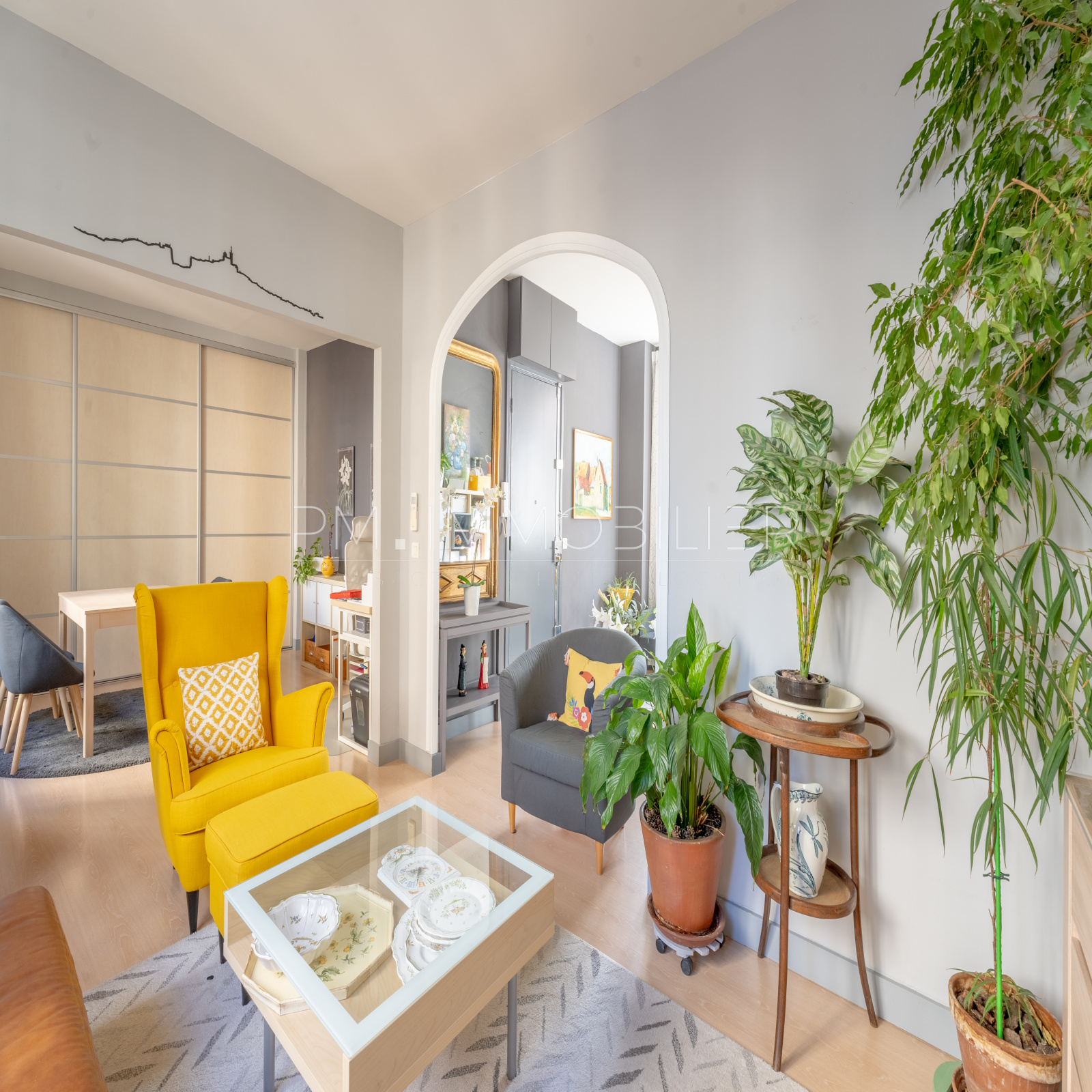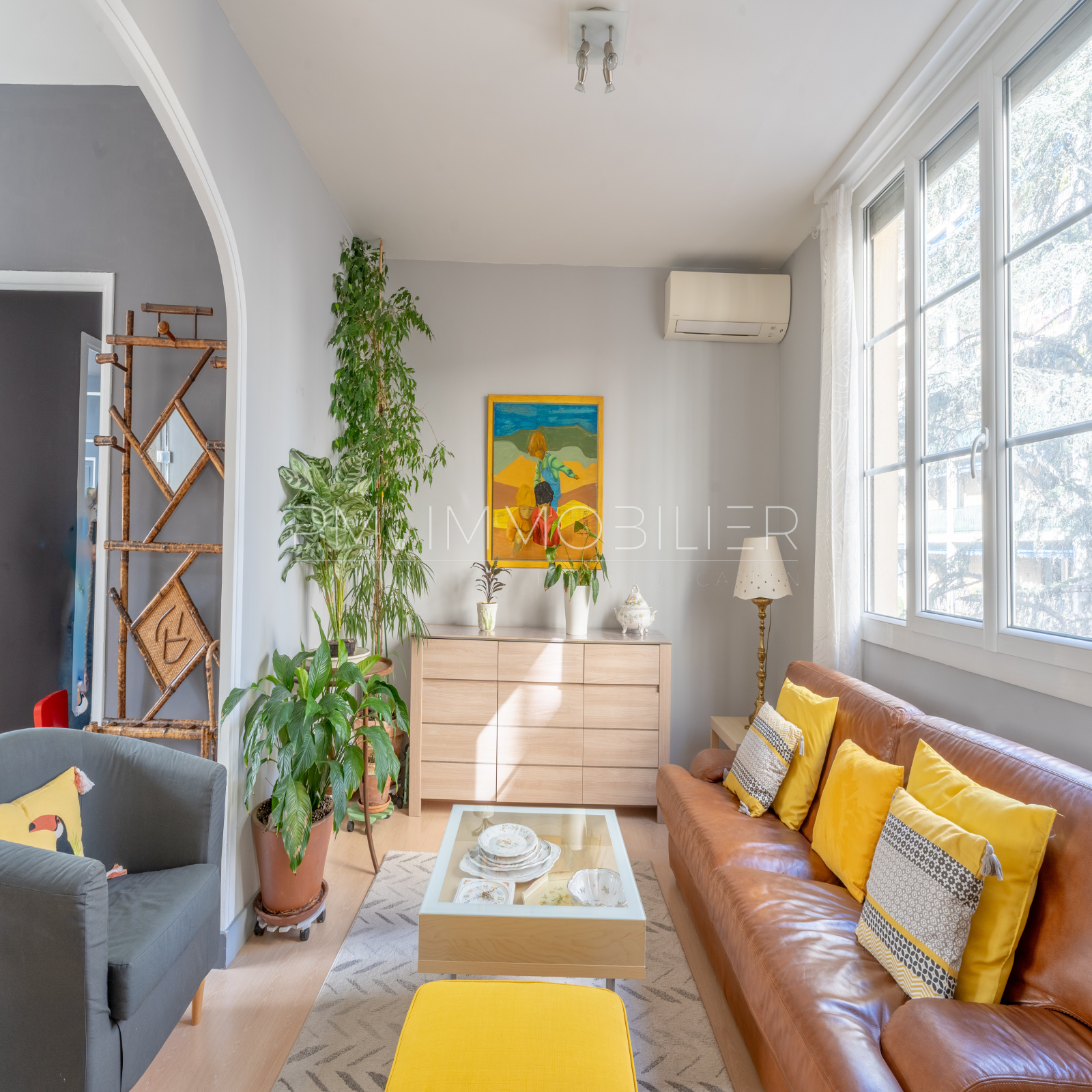 Repensé il y a quelques années, l'appartement est traversant, orienté sud/est, côté jardin, et nord/ouest, côté rue. Il dégage une ambiance chaleureuse. La propriétaire a choisi le parti pris d'un faire un grand type 2.