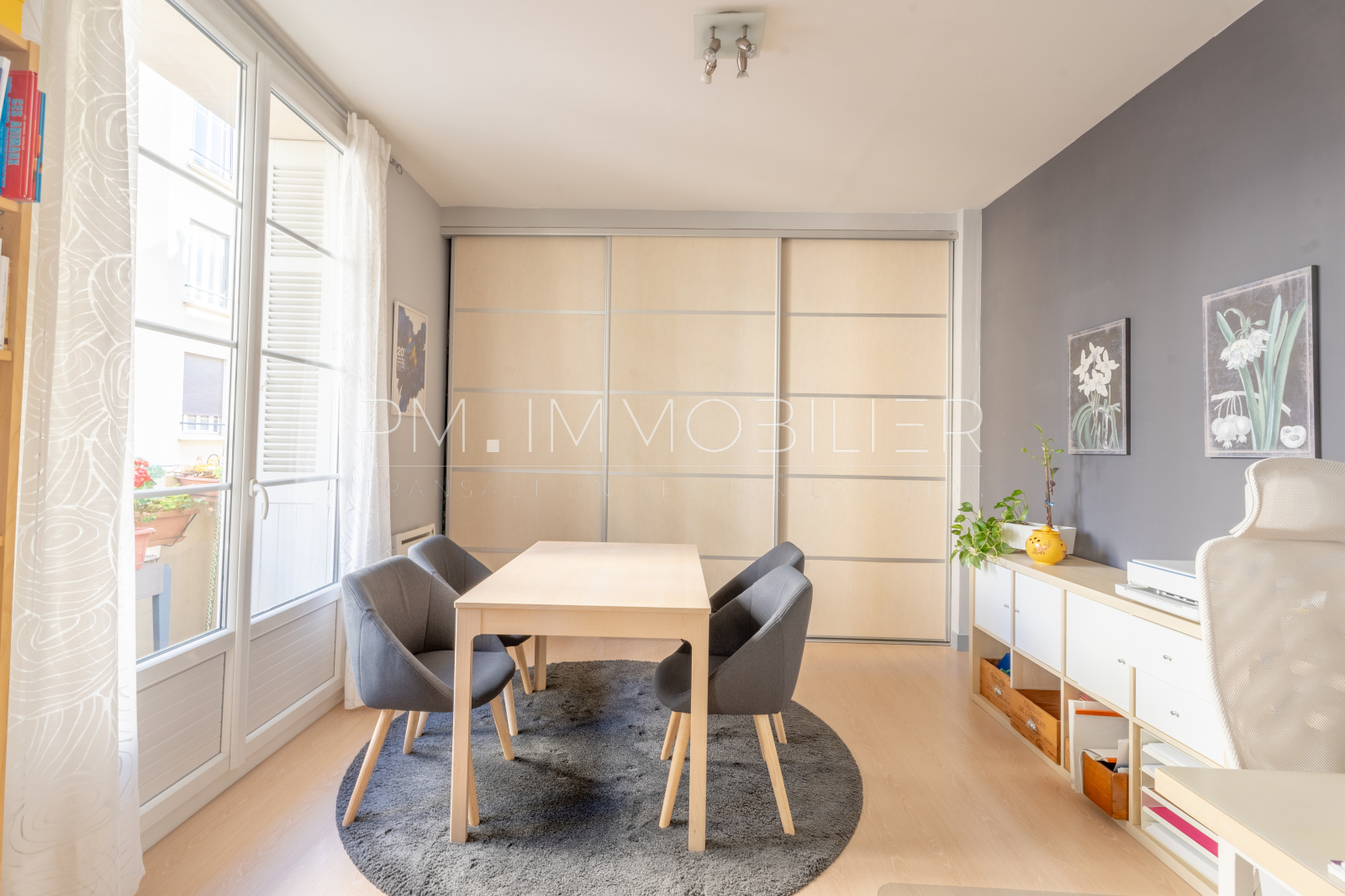 Le hall d'entrée ouvre également sur un couloir qui dessert les autres pièces de l'appartement, une salle d'eau, des wc et une cuisine donnant côté jardin ainsi qu'une chambre avec balcon donnant côté rue.