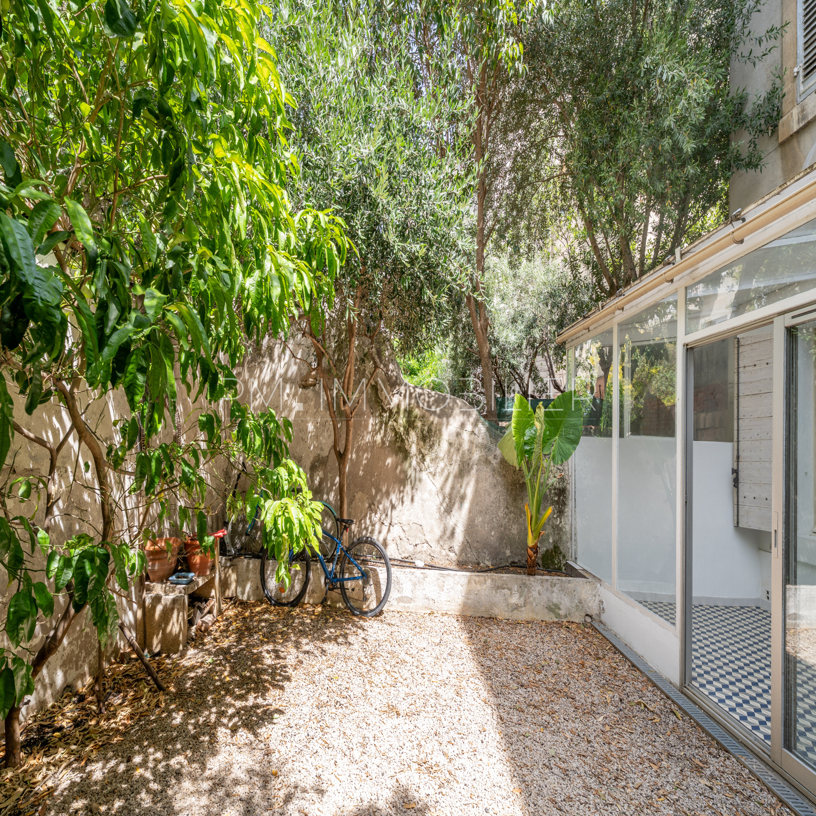 Volumes anciens, verrière lumineuse et écrin de verdure composent un cadre de vie rare dans l’un des quartiers les plus prisés de Marseille.
