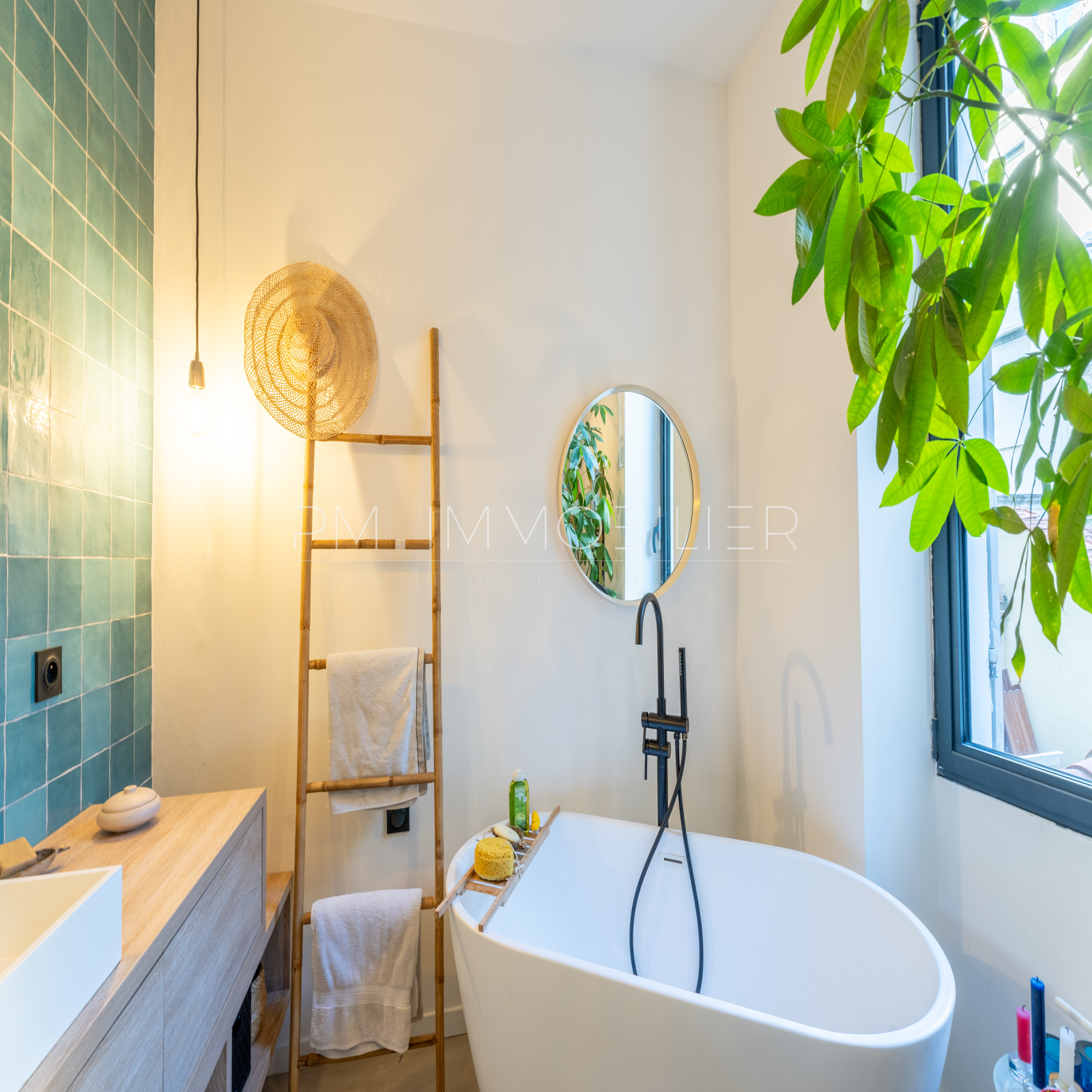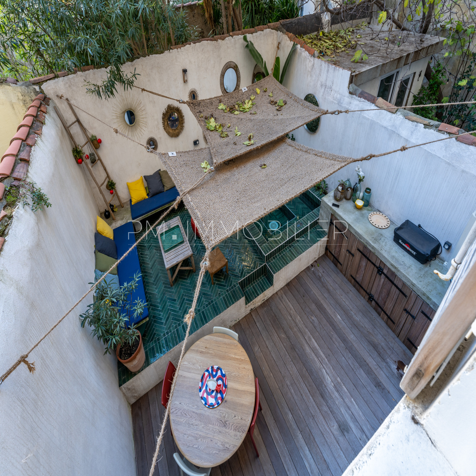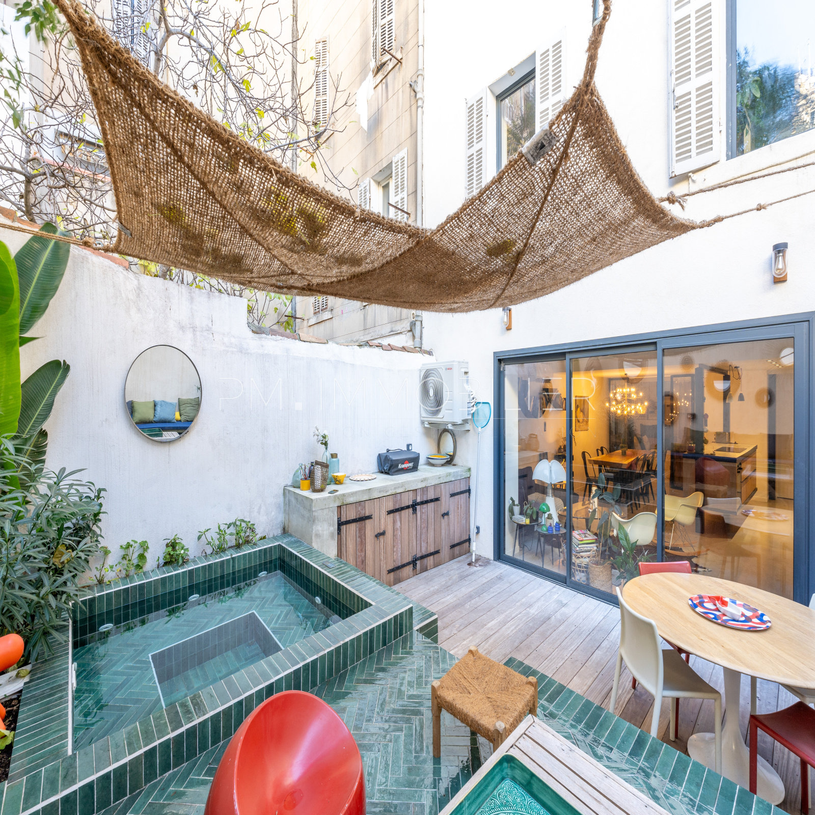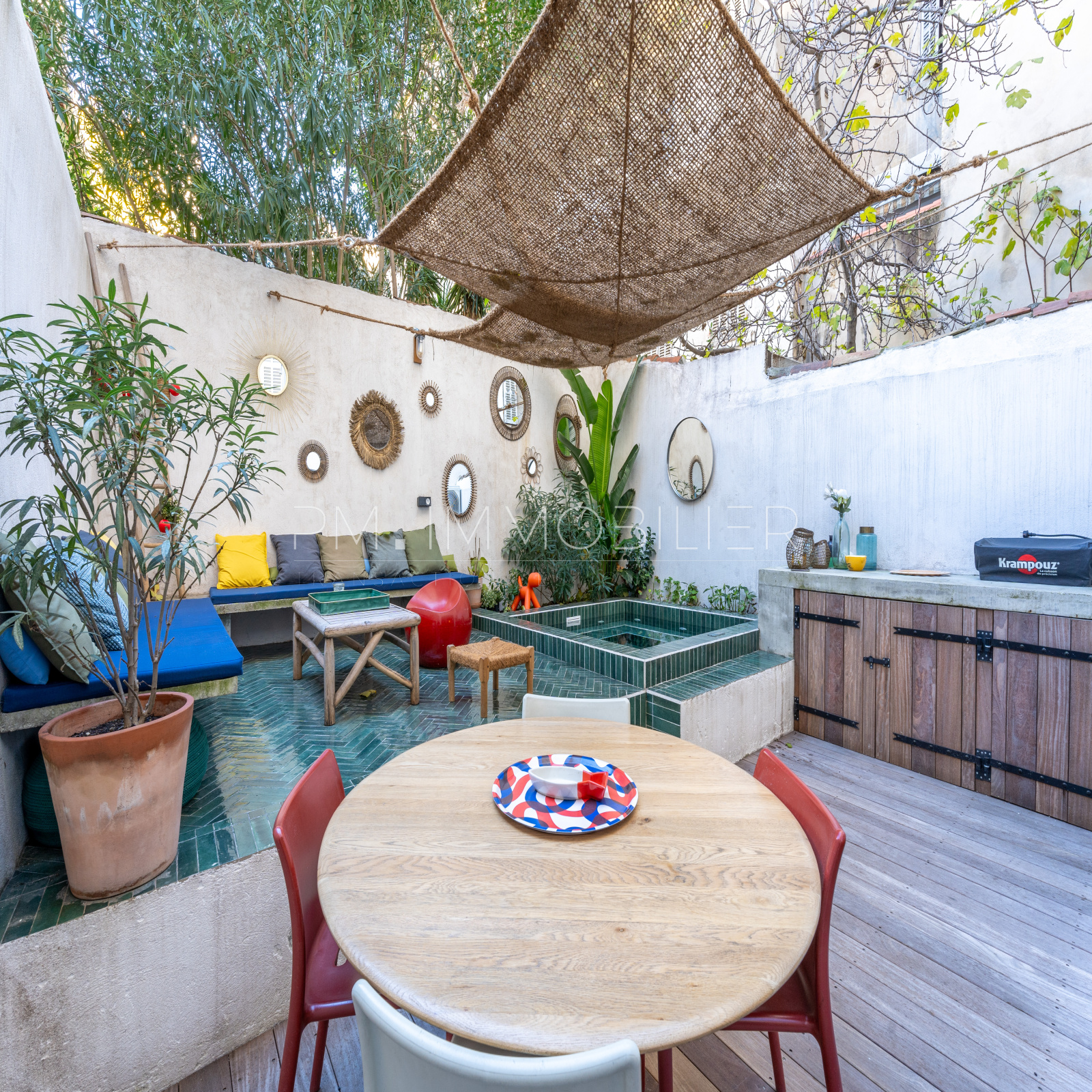 Architecture du 19ème siècle pour ce petit immeuble au coeur du Camas à proximité du bd Eugène Pierre, qui accueille, en rez-de-jardin, un appartement sur deux niveaux de 87,03m2 carrez, aux allures d'une petite maison, avec son bel extérieur de 34m2 en zelliges marocains avec jaccuzzi.