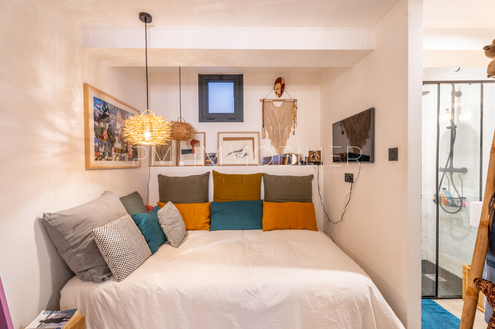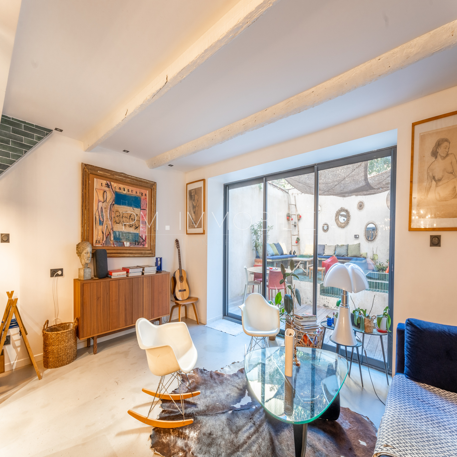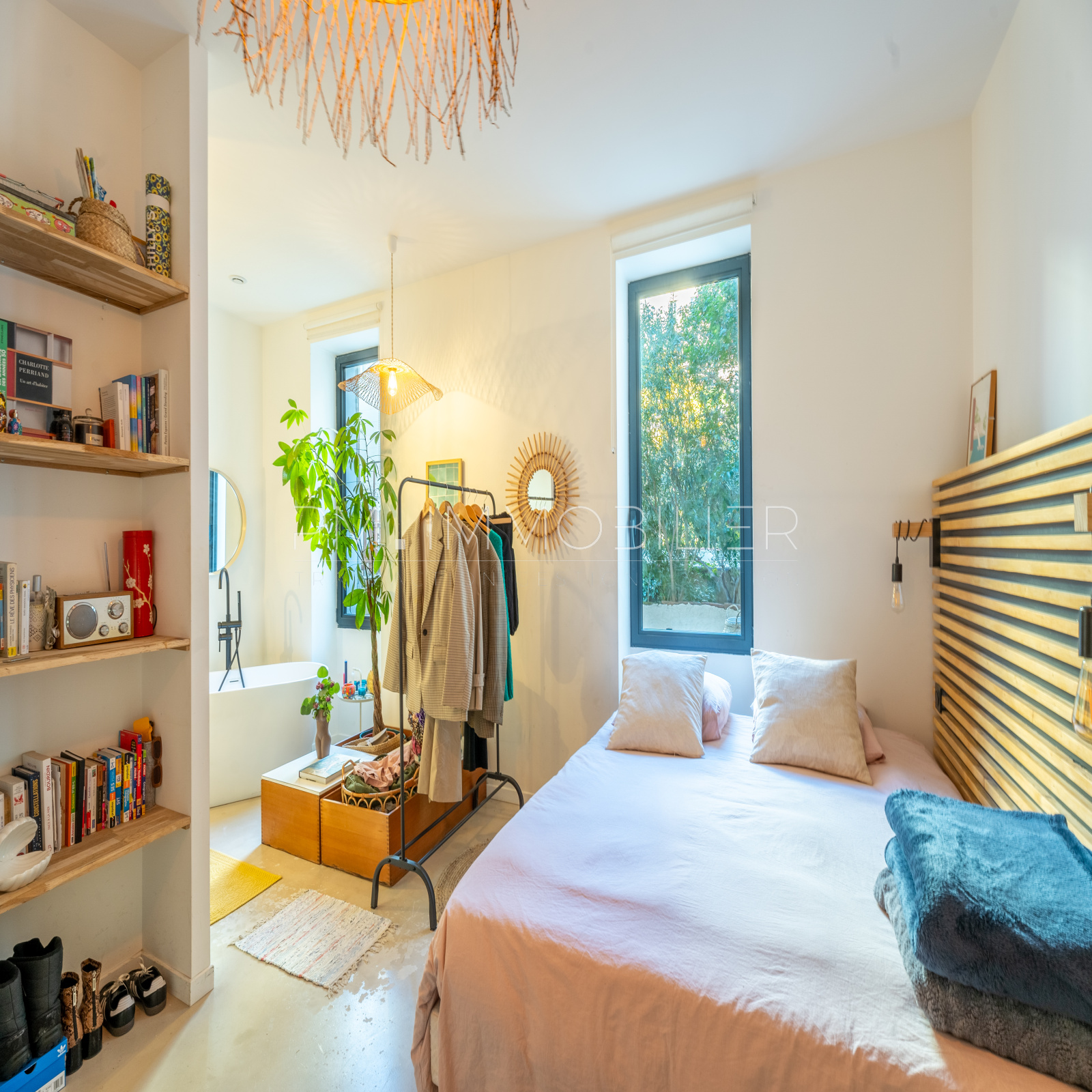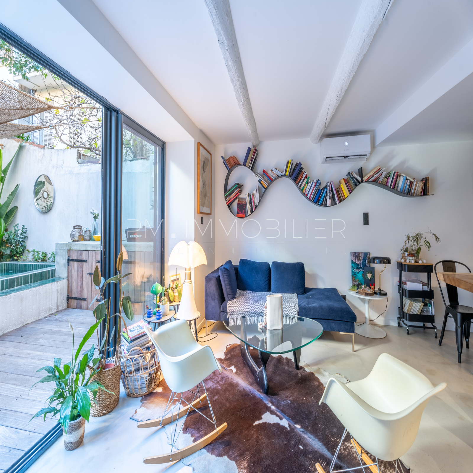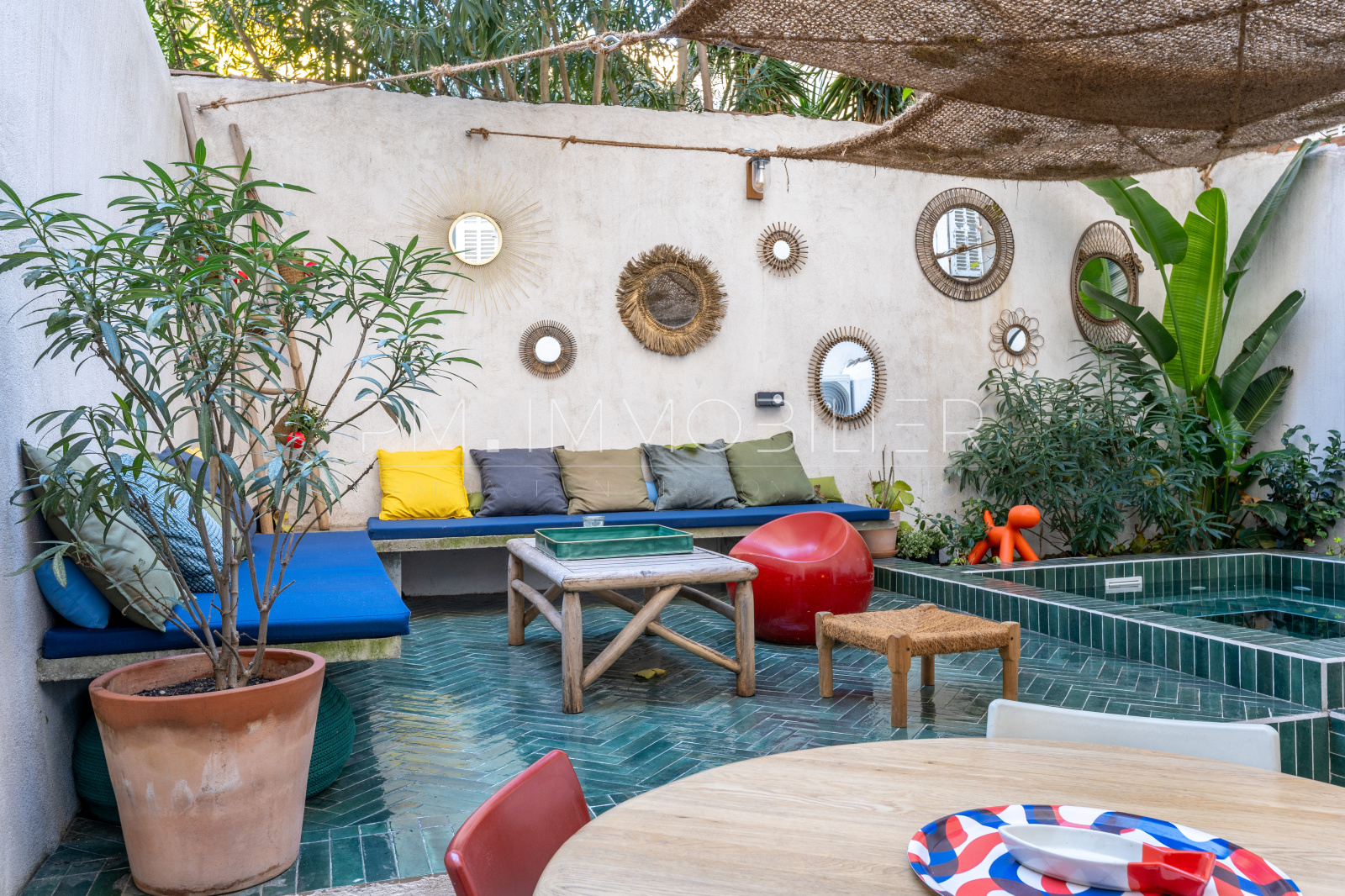 Architecture du 19ème siècle pour ce petit immeuble au coeur du Camas à proximité du bd Eugène Pierre, qui accueille, en rez-de-jardin, un appartement sur deux niveaux de 87,03m2 carrez, aux allures d'une petite maison, avec son bel extérieur de 34m2 en zelliges marocains avec jaccuzzi.