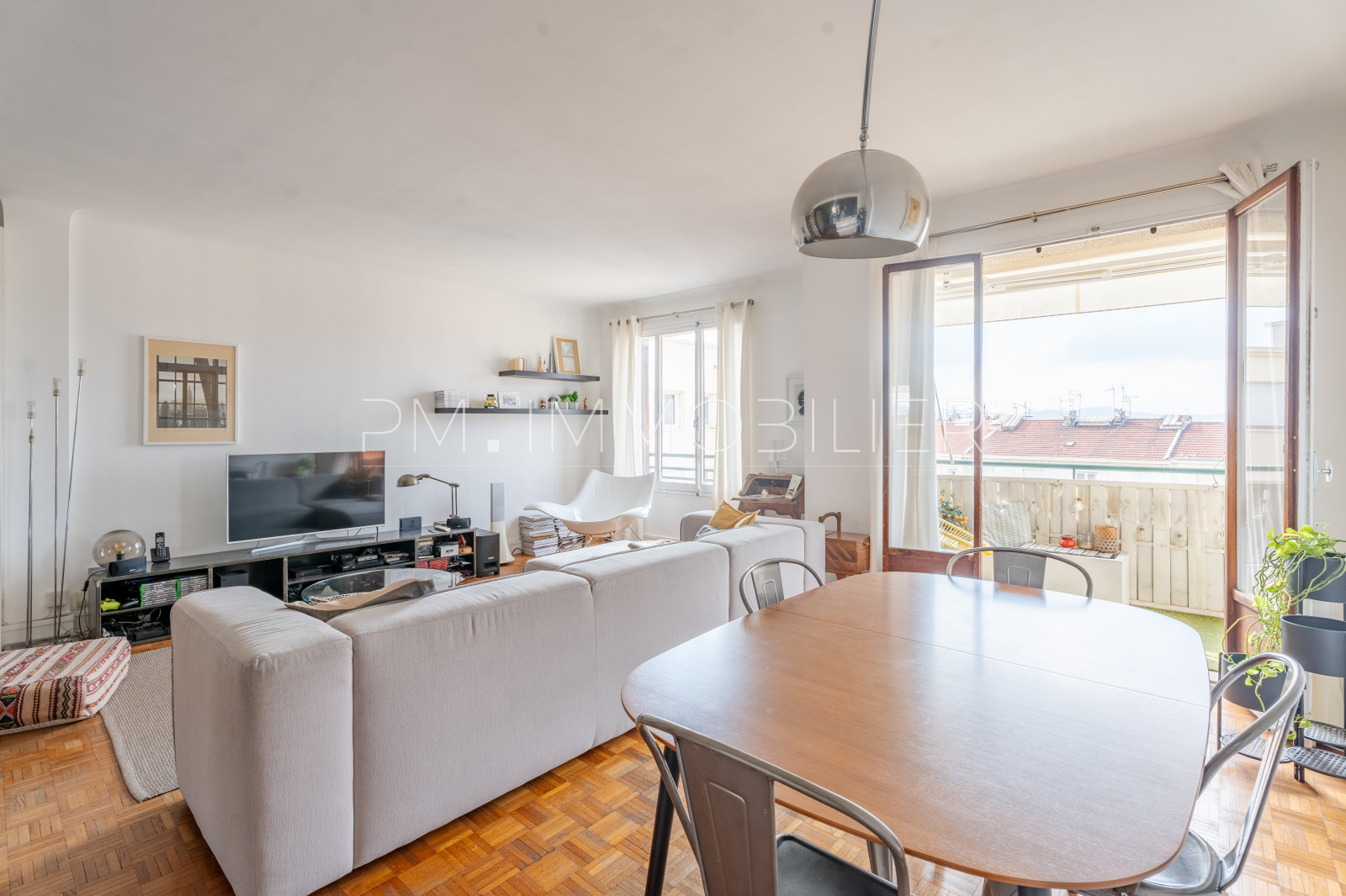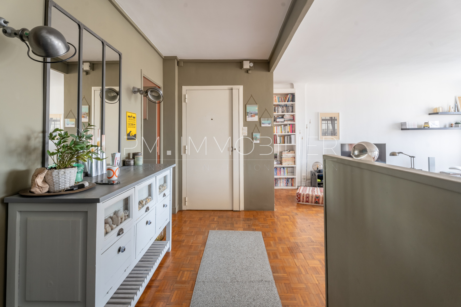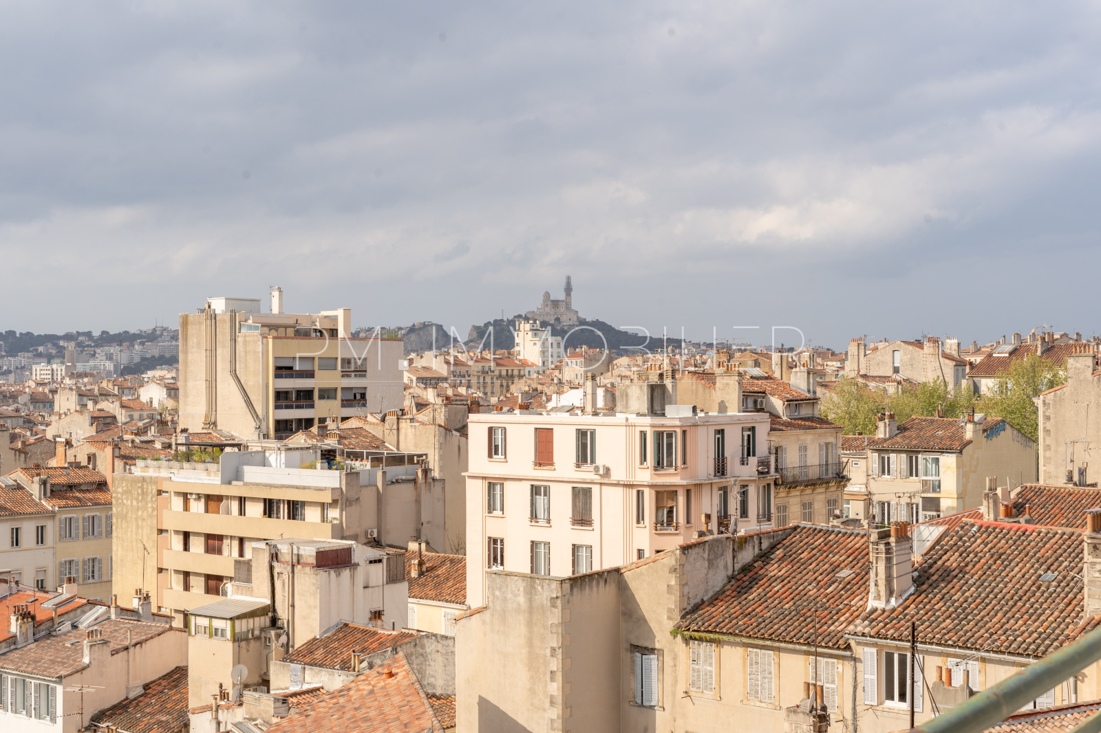 Architecture des années 60 pour cet immeuble avec ascenseur situé au cœur du quartier du Camas qui accueille au 6ème étage sur huit, un appartement traversant de 105 m² qui offre une vue imprenable sur les collines et la ville, avec en toile de fond la célèbre Notre-Dame de la Garde.