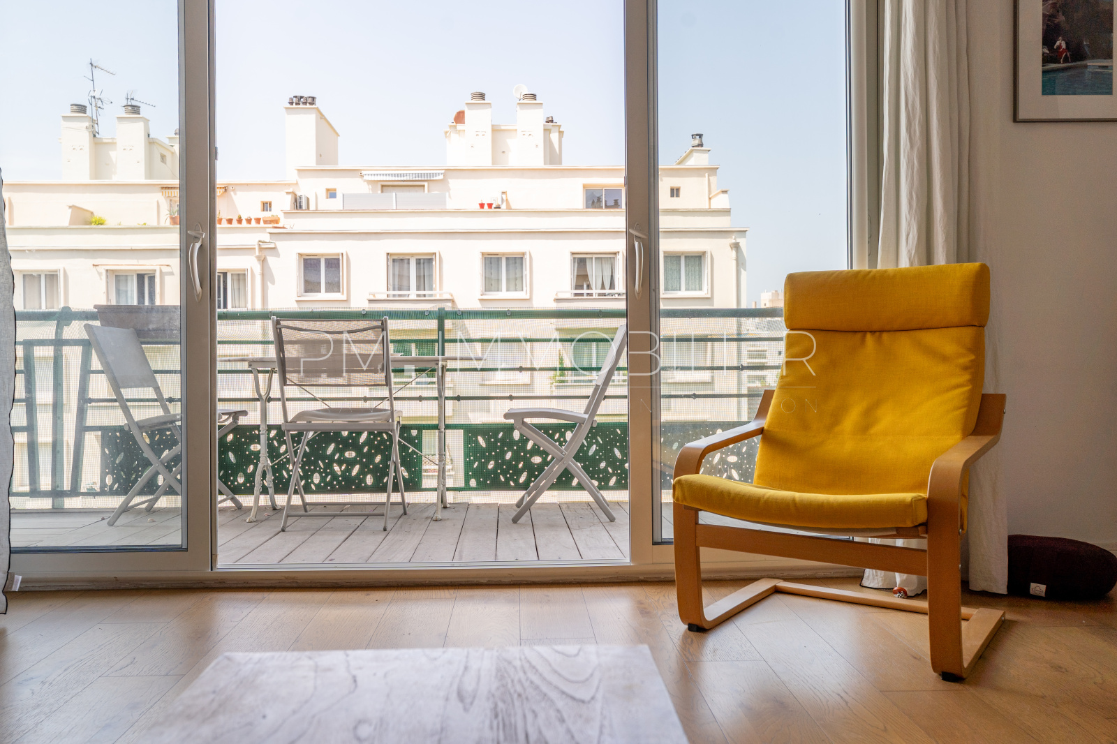 Dès l’entrée, on découvre une vaste pièce de vie de 30 m² ouverte sur une terrasse filante de 17 m², idéale pour prolonger l’intérieur vers l’extérieur. L’exposition traversante, les larges baies vitrées et la vue dégagée sur la ville et la verdure créent une ambiance douce, aérée, chaleureuse.