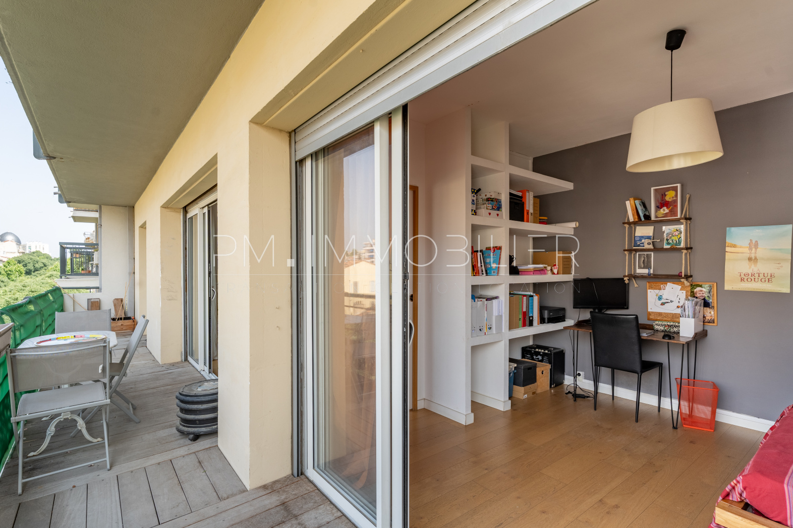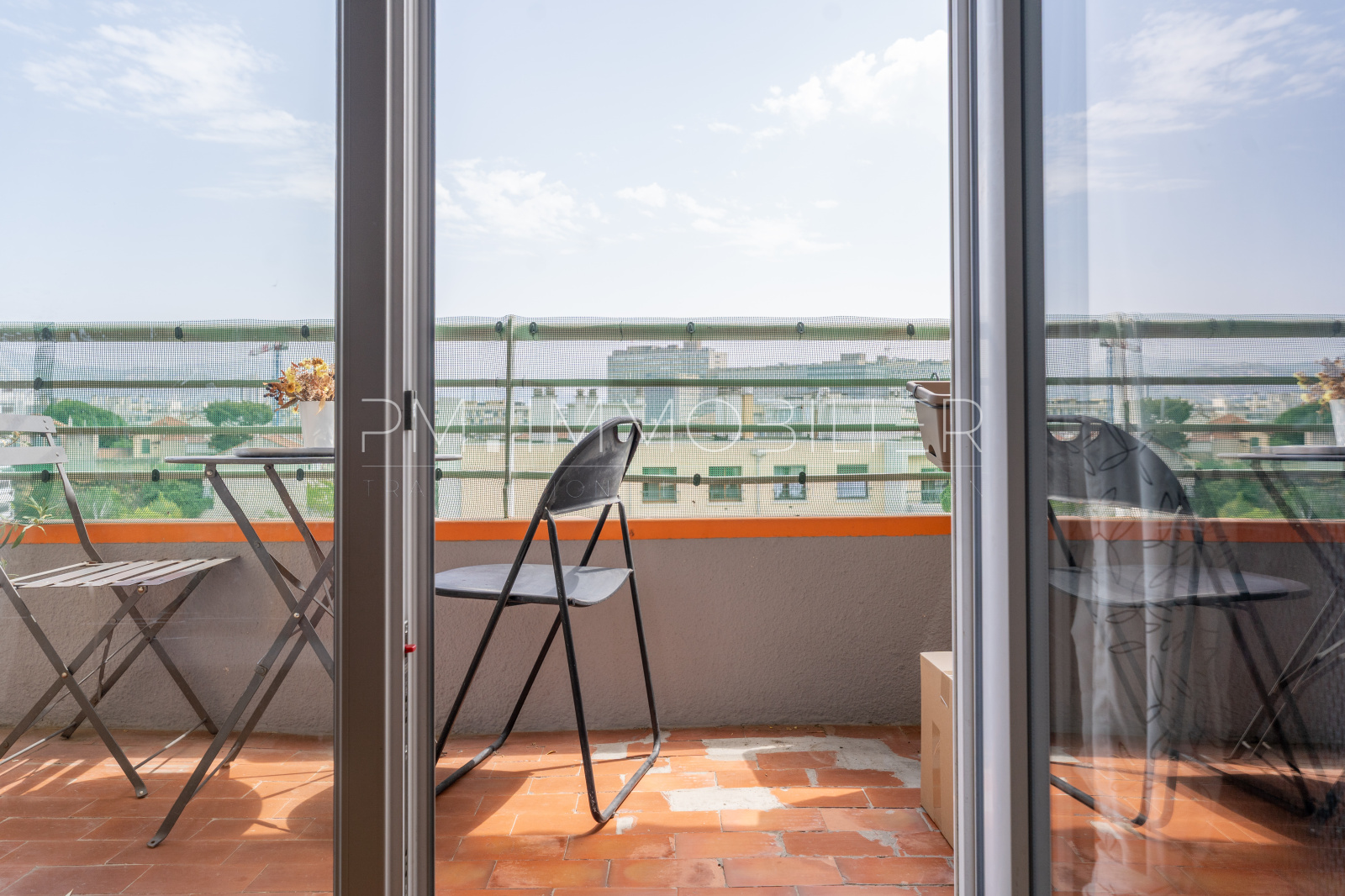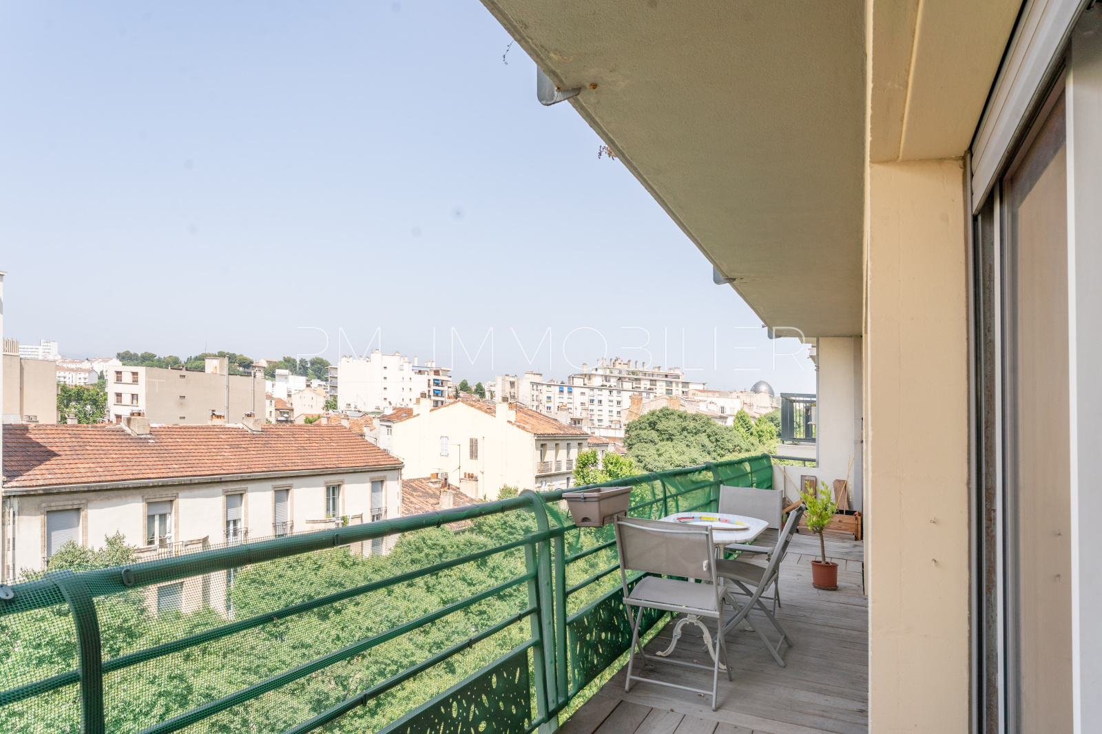 Architecture des années 70 pour cette résidence bien entretenue située dans le haut du boulevard Chave, qui accueille au 7ᵉ étage "Le Grand Balcon", un appartement traversant baigné de lumière.