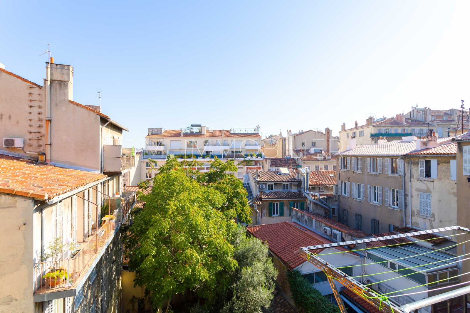 Un petit balcon sans vis-à-vis s'ouvre sur les toits de la ville.