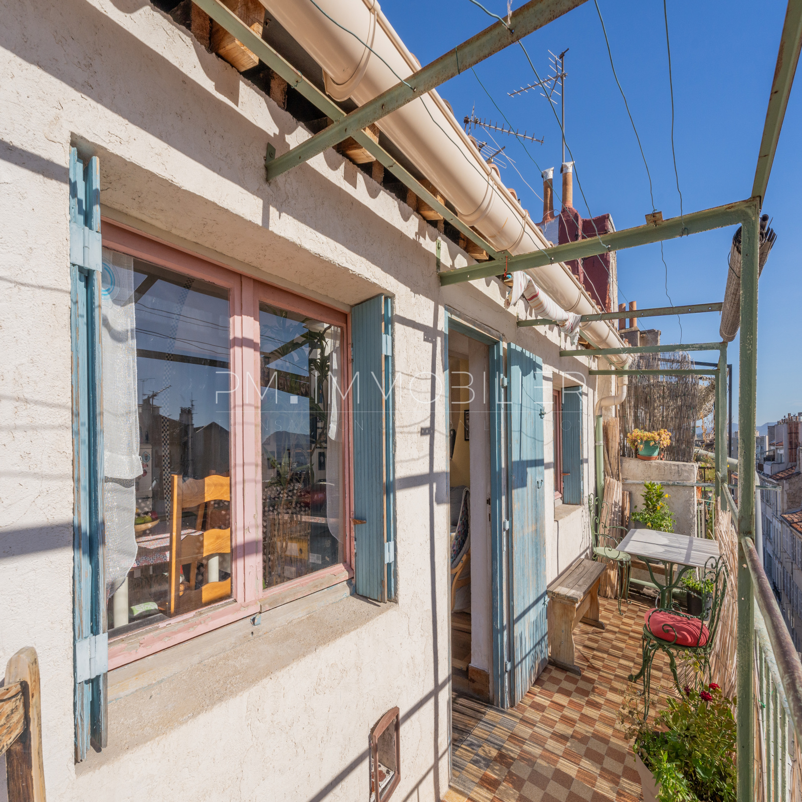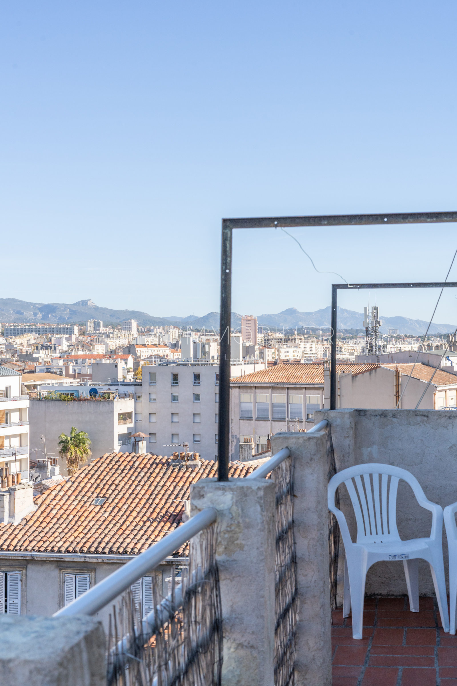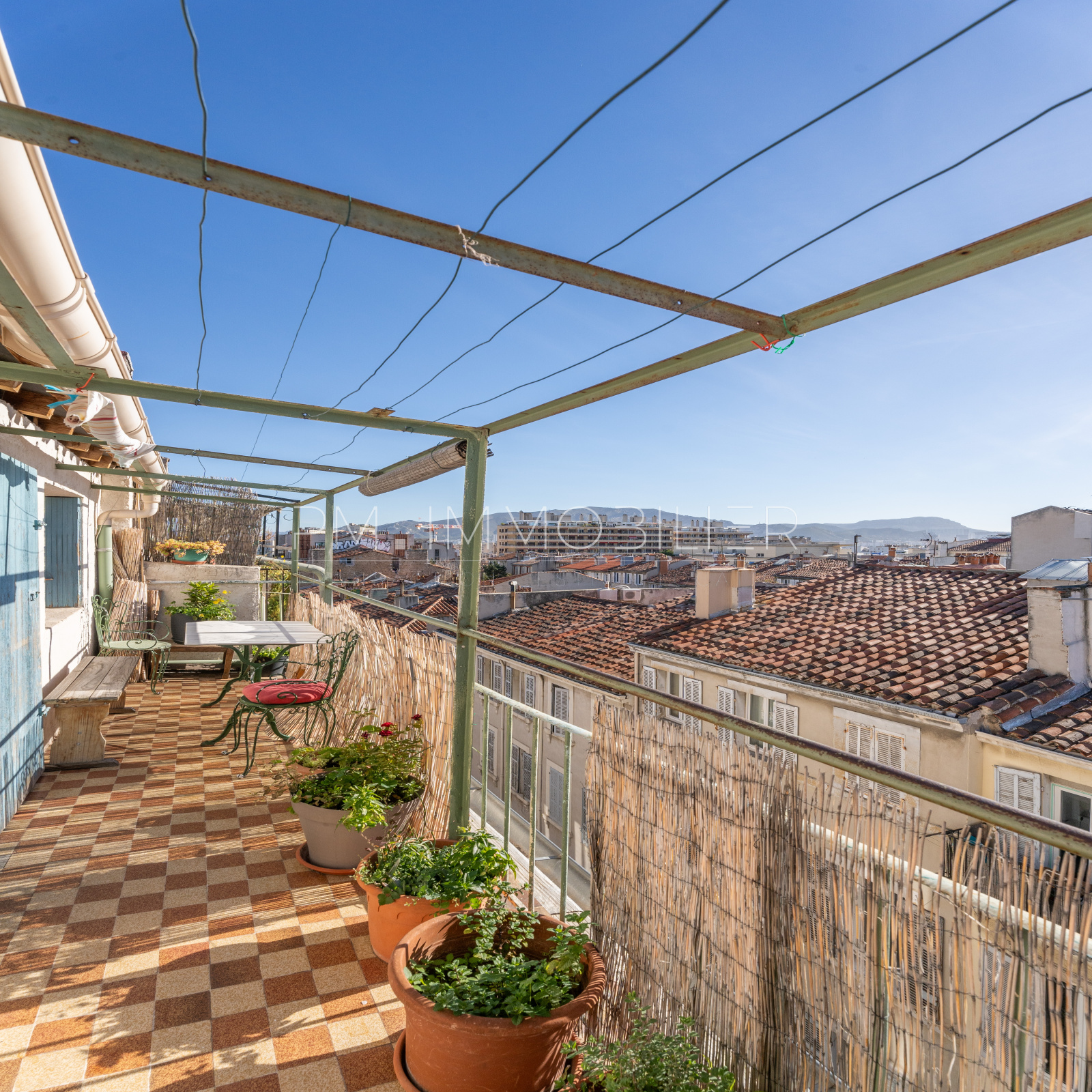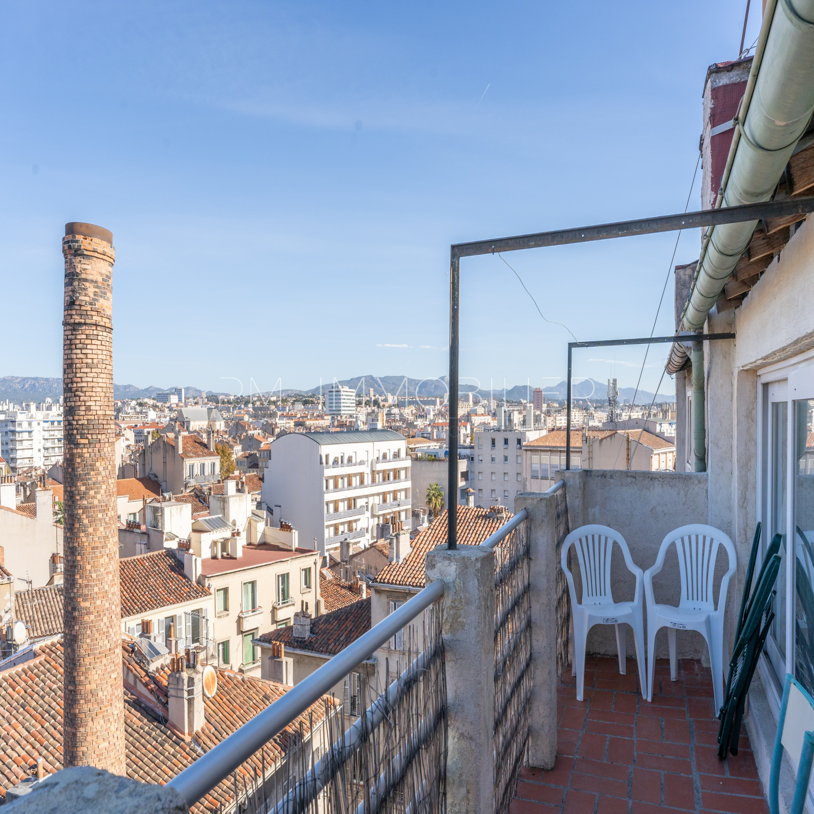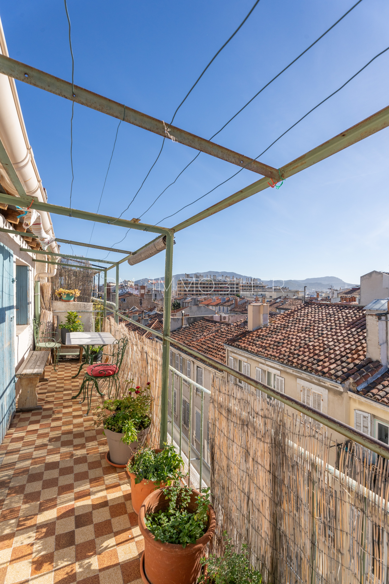 Architecture de la fin du XIXème, cet immeuble marseillais, situé dans une rue du 5e arrondissement au coeur du quartier de Notre Dame du Mont, abrite, en son 5ème et dernier étage, un bel appartement de 54 m2 habitables offrant depuis ses deux balcons de 16m2 au total, une vue exceptionnelle sur les toits et sur un des monuments les plus emblématiques de Marseille, Notre dame de La Garde.