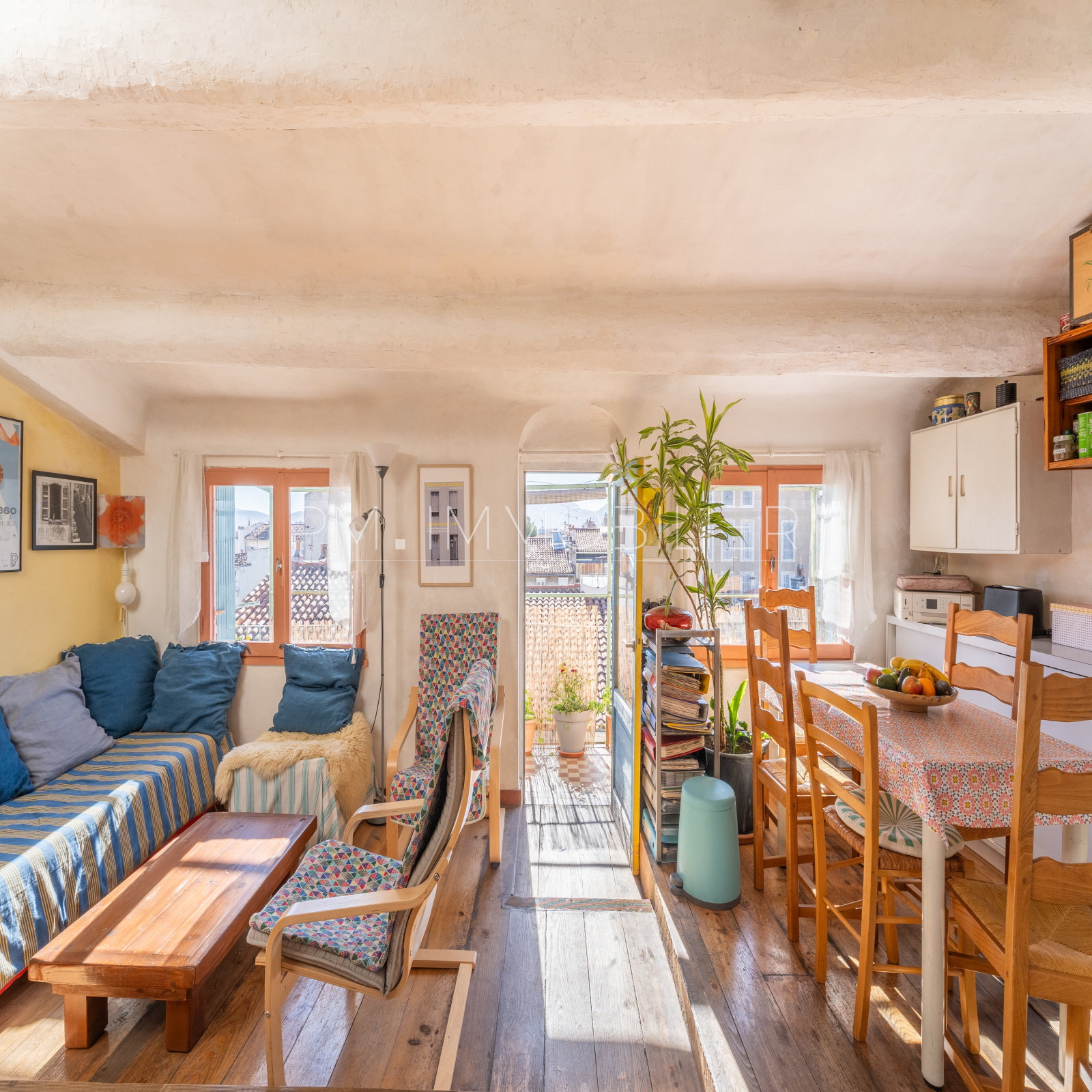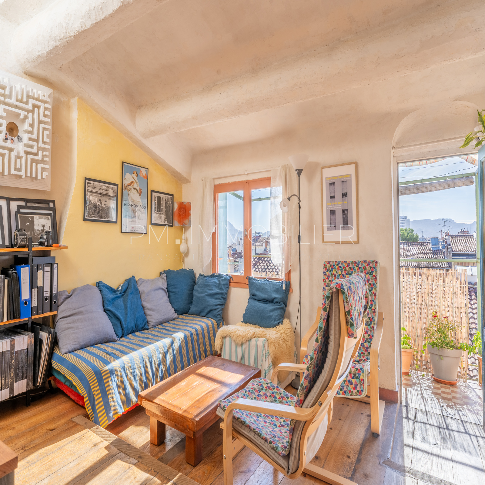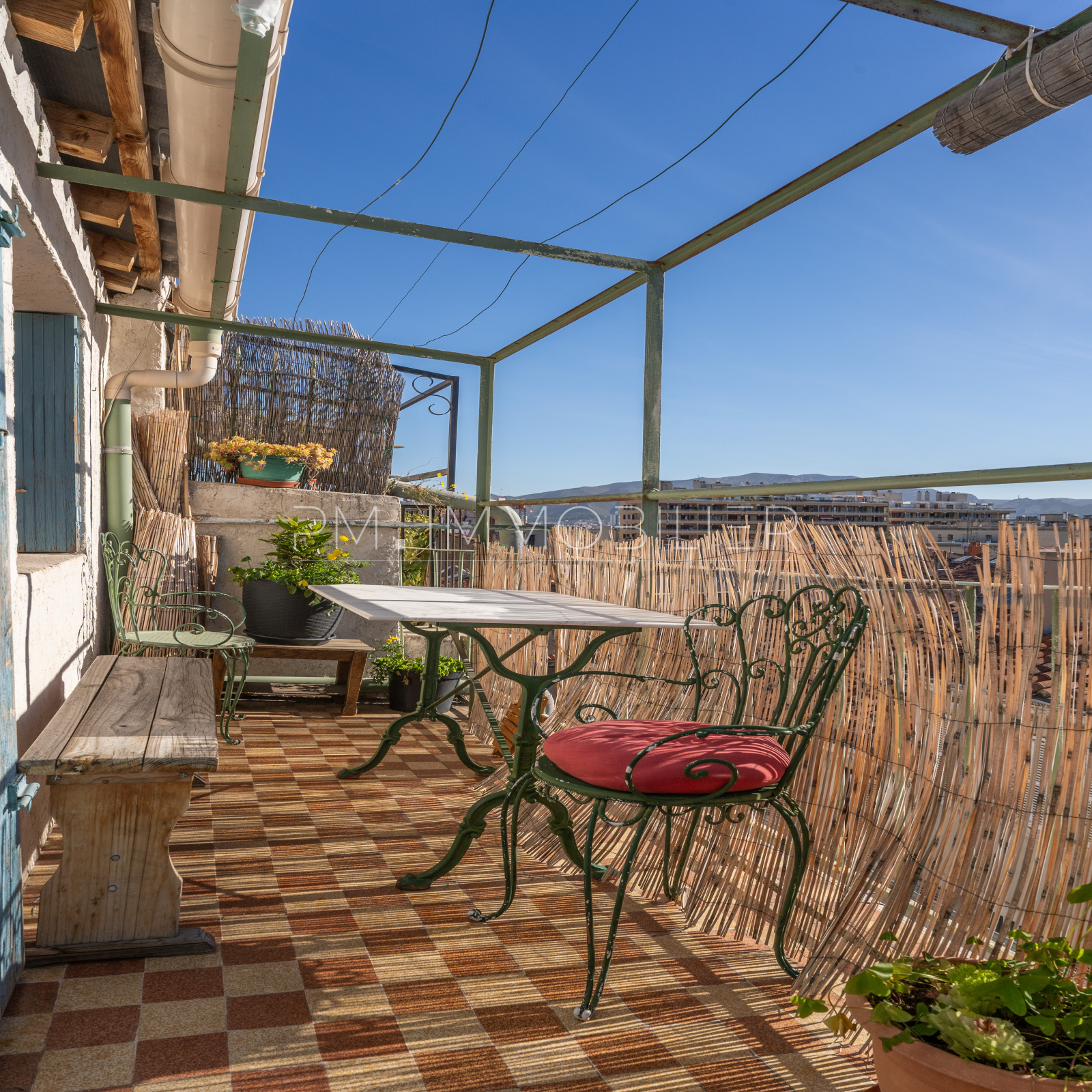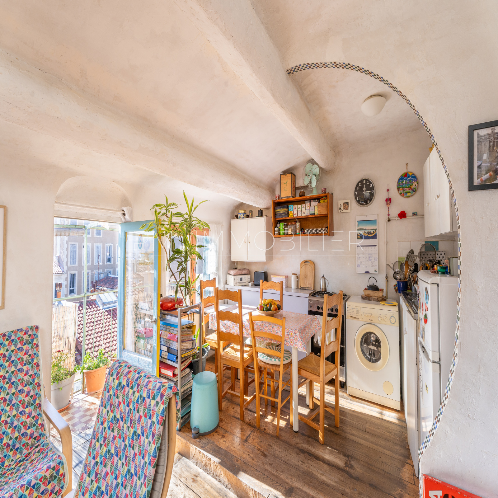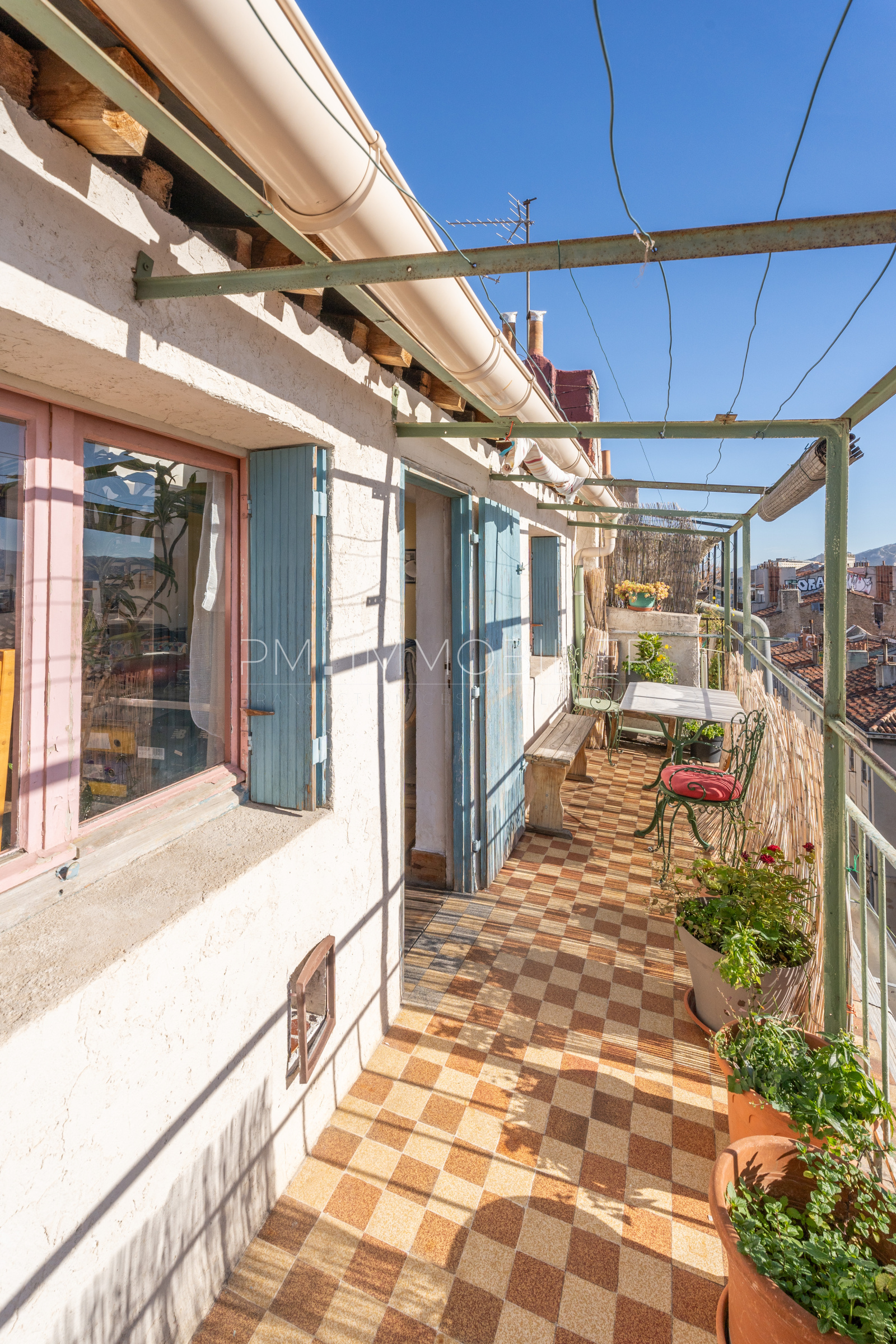 Architecture de la fin du XIXème, cet immeuble marseillais, situé dans une rue du 5e arrondissement au coeur du quartier de Notre Dame du Mont, abrite, en son 5ème et dernier étage, un bel appartement de 54 m2 habitables offrant depuis ses deux balcons de 16m2 au total, une vue exceptionnelle sur les toits et sur un des monuments les plus emblématiques de Marseille, Notre dame de La Garde.