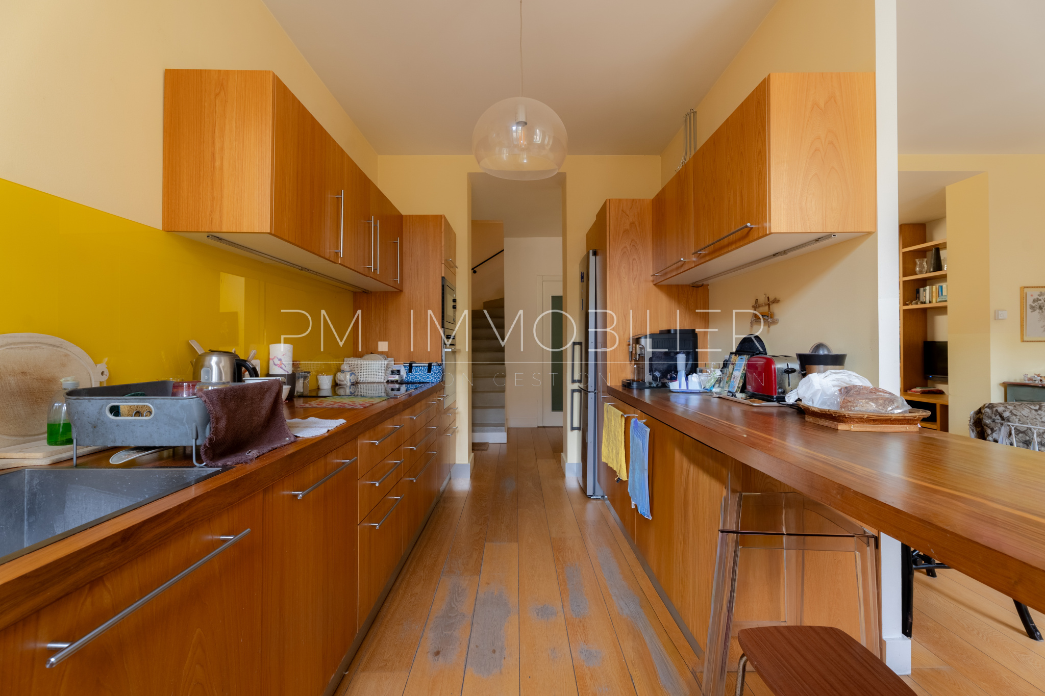 Les espaces de vie, lumineux et chaleureux, s’articulent autour d’un salon et d’une salle à manger ouverts, prolongés par une cuisine fonctionnelle. Les rangements sur mesure, les matériaux de qualité et la hauteur sous plafond participent à une atmosphère élégante et intemporelle.