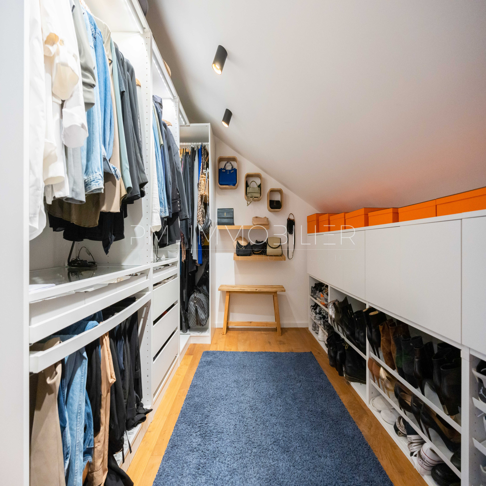 Un garage double avec charge électrique et de nombreux rangements complète ce bien fou.