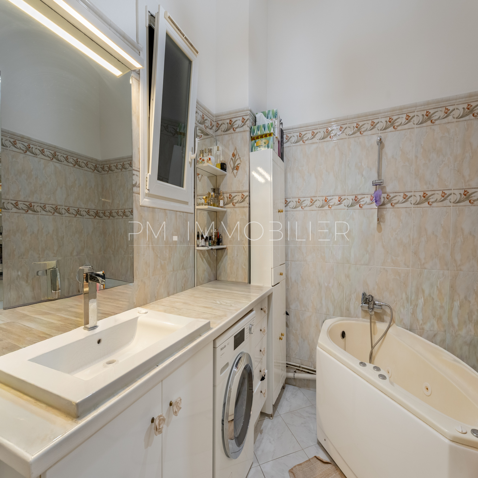 La salle de bain, équipée d’une baignoire balnéo, offre un beau potentiel : elle peut facilement être repensée pour accueillir une grande douche italienne ou une configuration plus moderne adaptée au mode de vie des futurs occupants.