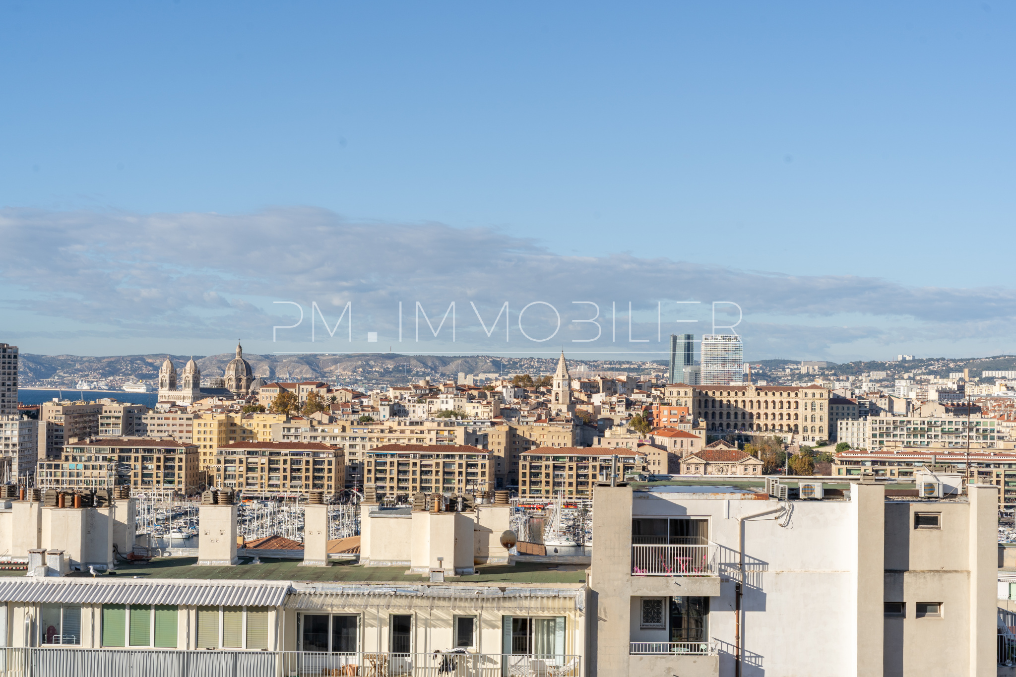 Atout rarissime : la résidence donne accès à un toit-terrasse offrant une vue panoramique exceptionnelle sur le Vieux-Port, les îles du Frioul et Notre-Dame de la Garde. Un décor spectaculaire, exclusivement réservé aux résidents.