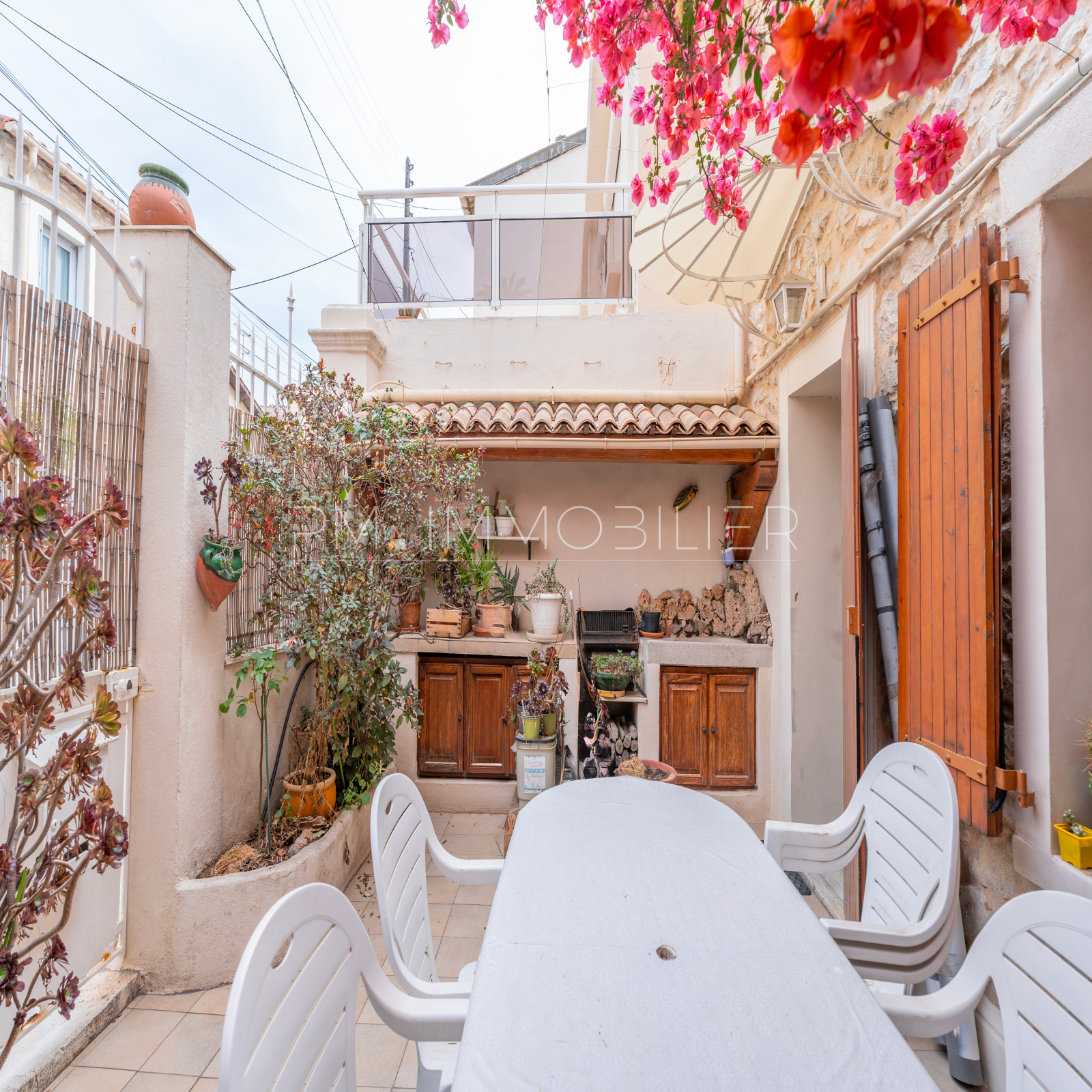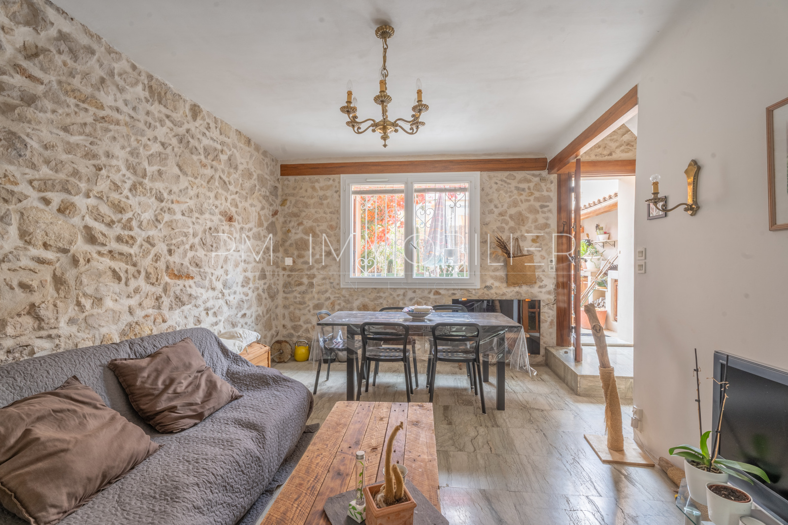 Entièrement habillée de pierres, cette maison saura vous séduire. L'entrée se fait par une petite cour à ciel ouvert donnant directement sur la rue.