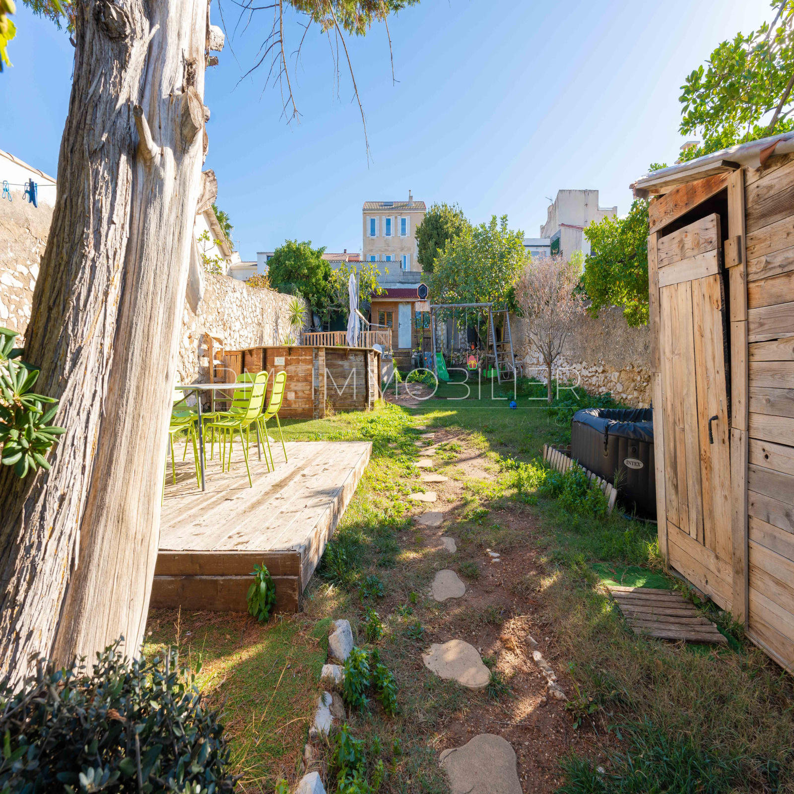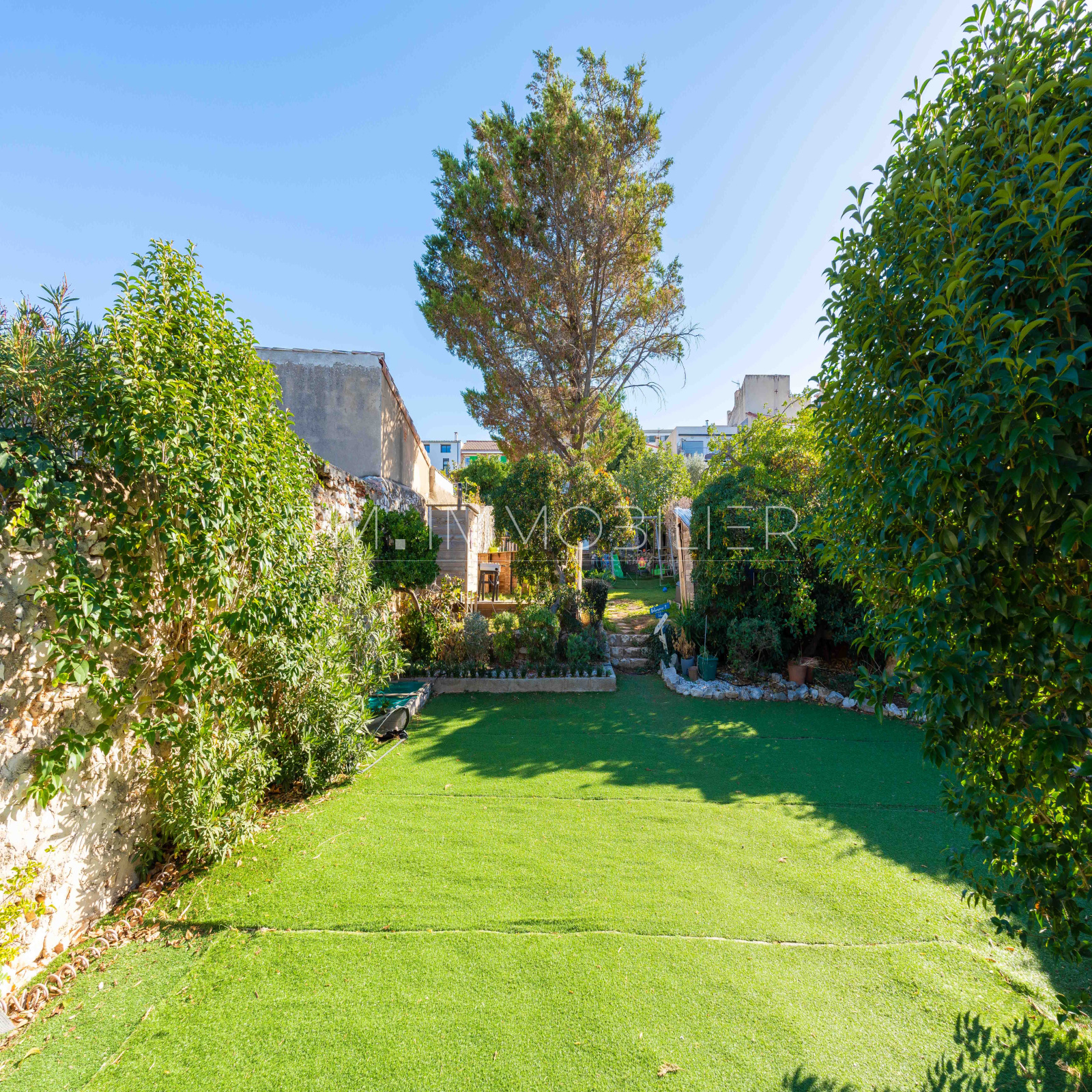 Au bout de se couloir, le jardin, exceptionnellement grand pour le secteur, offre plusieurs niveaux permettant d'imaginer différents espaces pour les beaux jours.