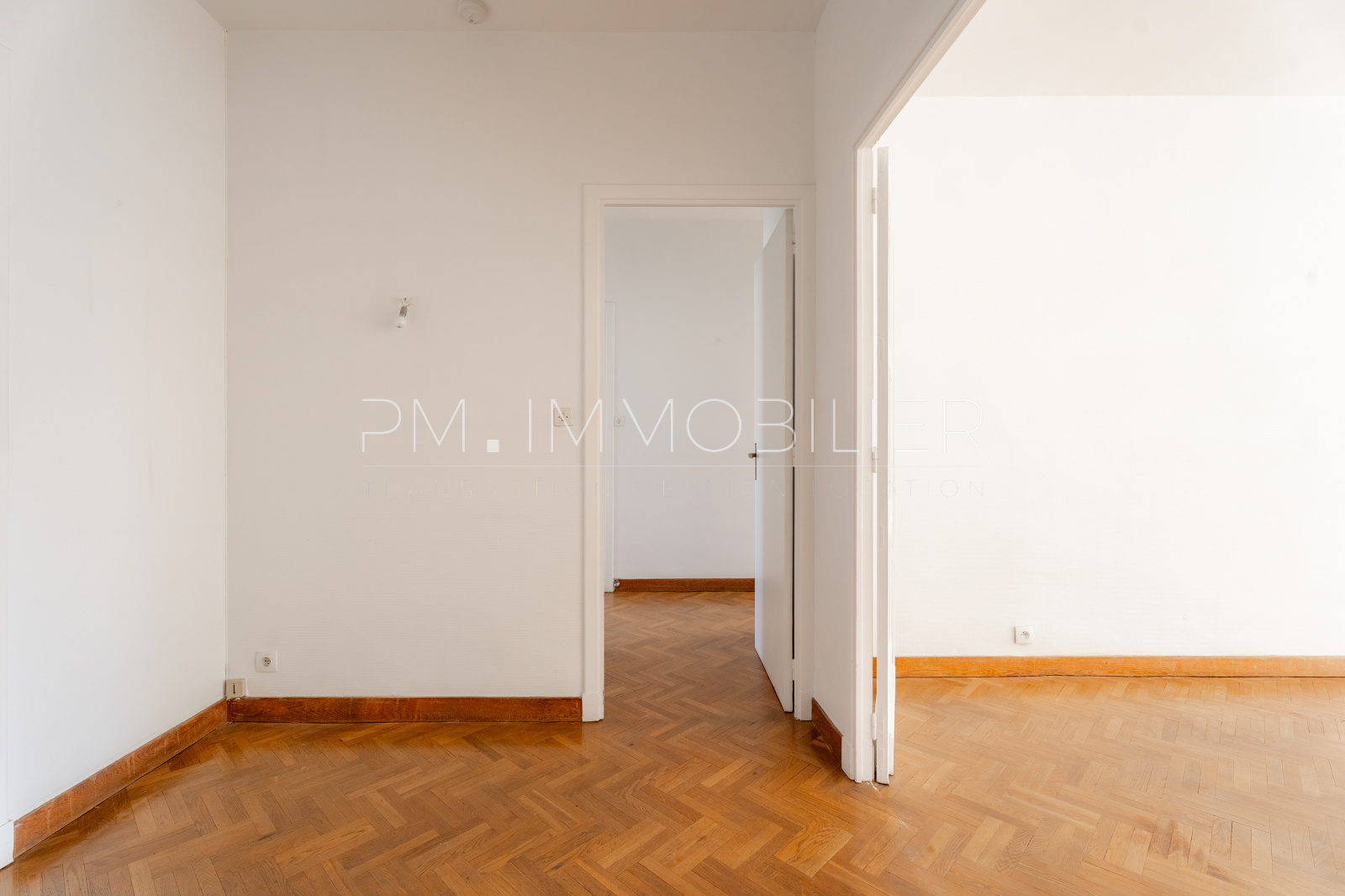 Traversant et baigné de lumière, l’appartement bénéficie d’une exposition idéale qui met en valeur son parquet d’origine et ses espaces généreux.