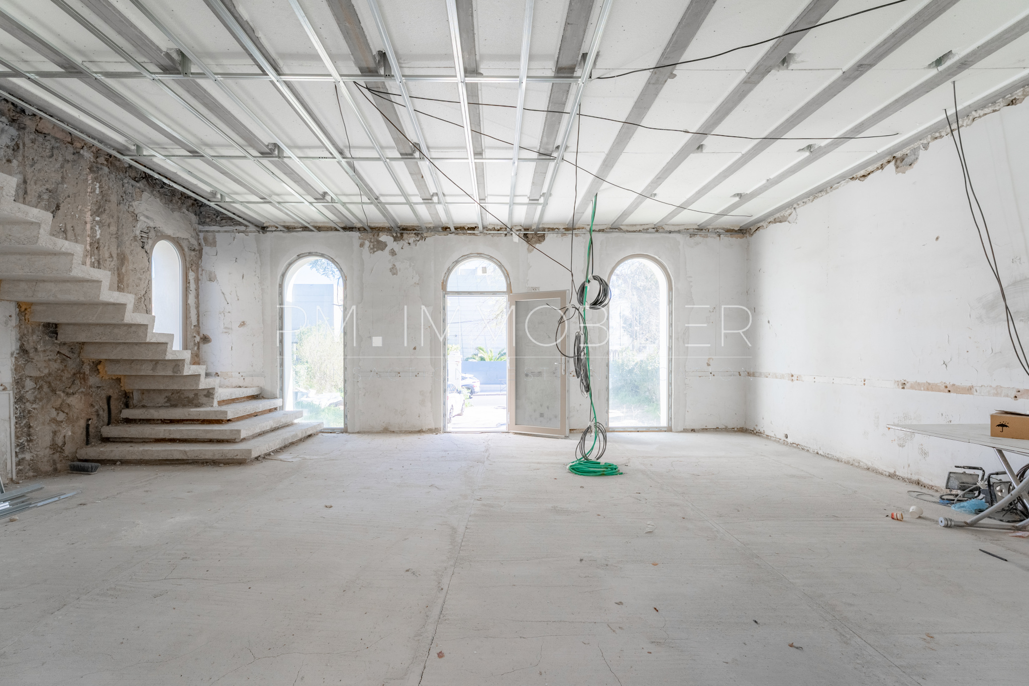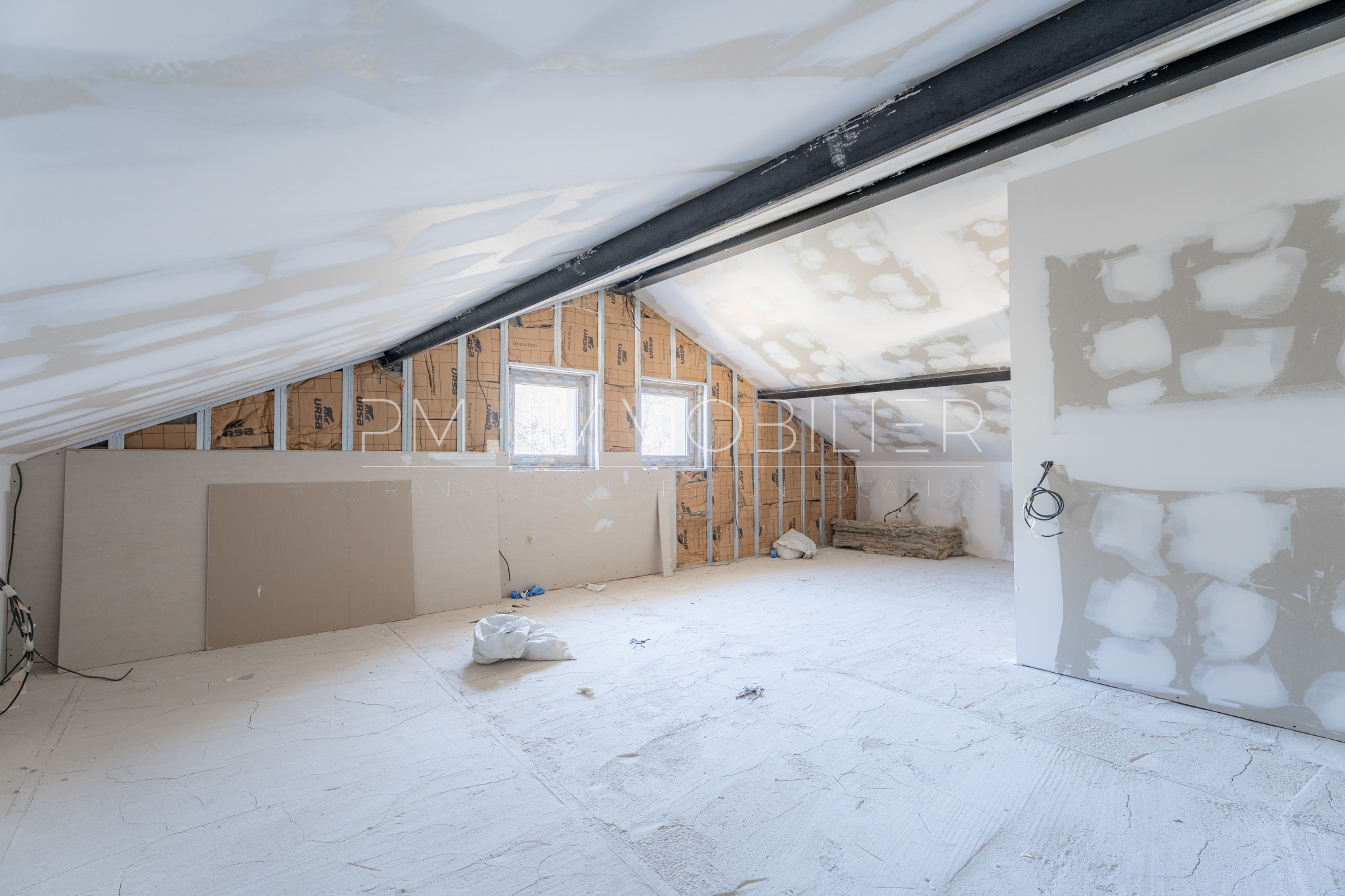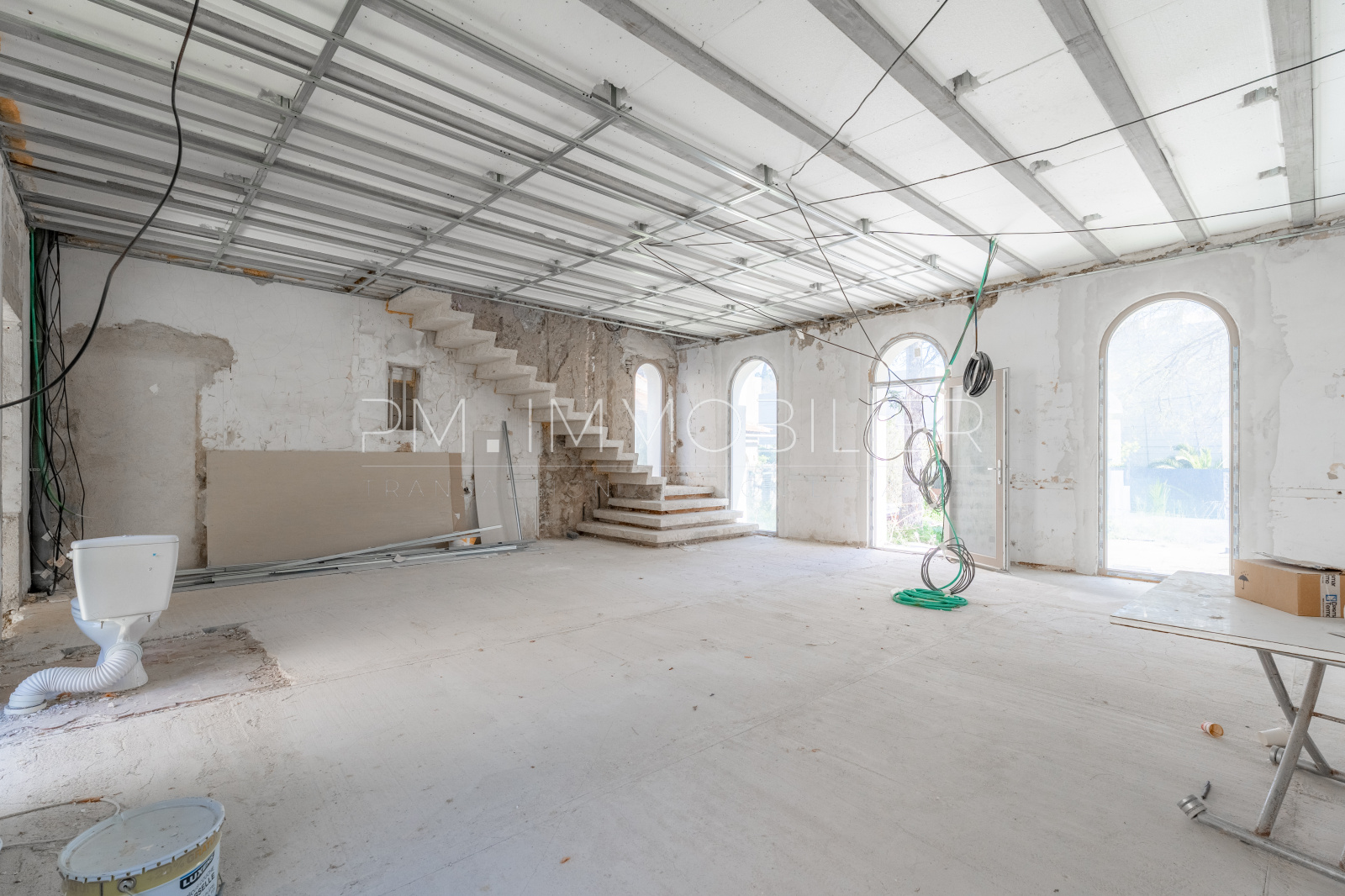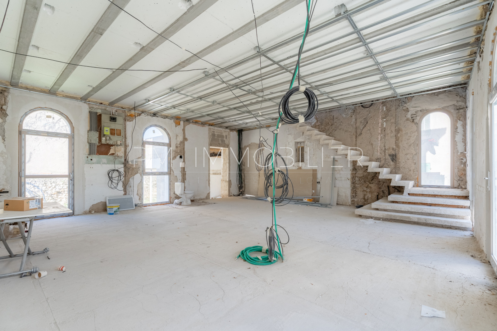 Derrière sa façade au charme patiné, cette bâtisse en cours de renaissance dévoile des volumes rares et une lumière omniprésente. Le rez-de-chaussée, entièrement décloisonné, laisse entrevoir une pièce de vie spectaculaire, baignée de soleil, ouverte sur le jardin.