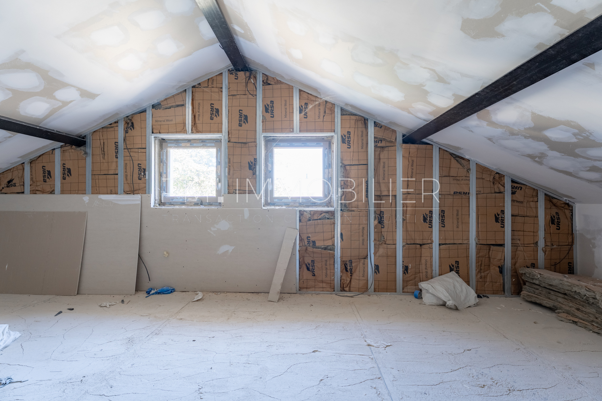 À l’étage, la configuration actuelle propose trois chambres, avec la possibilité d’en créer facilement quatre à cinq selon vos envies. Les espaces ont été pensés pour accueillir trois salles de bain, offrant un confort moderne dans un écrin ancien.
