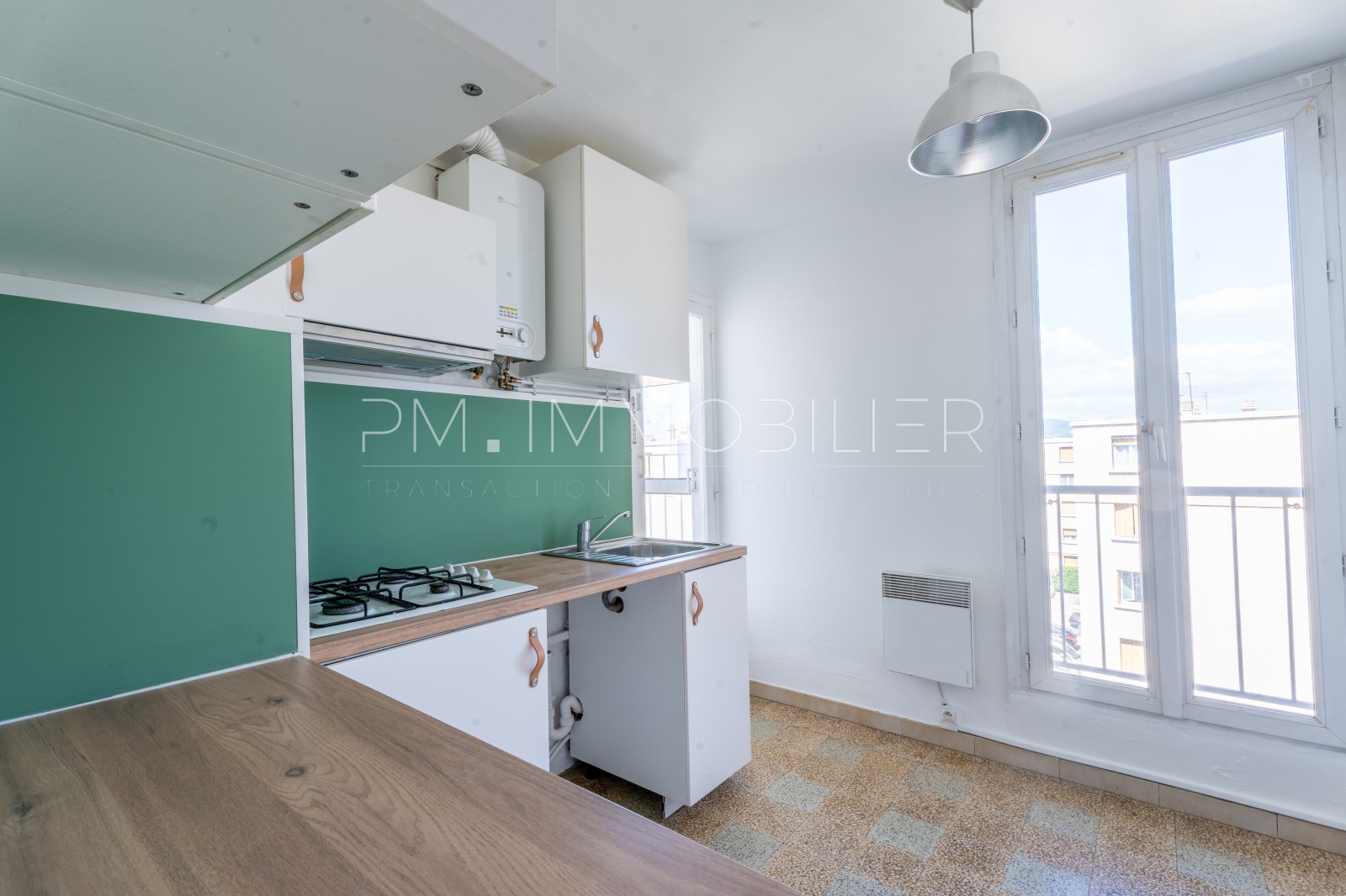 L'appartement propose une pièce de vie lumineuse et spacieuse, agrémentée de double vitrage et d'un carrelage à damiers des années 50. Cette pièce centrale ouvre sur une vue dominante et fuyante, apportant une sensation de sérénité et de calme. Une cuisine séparée, semi-équipée, peut être facilement aménagée à votre goût pour en faire un espace fonctionnel et agréable. La partie nuit avec une chambre de taille confortable, une salle d'eau moderne et des WC séparés, complète cet appartement intime et fonctionnel.