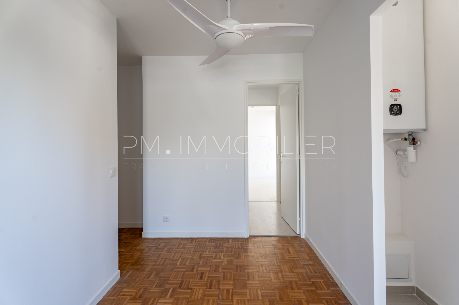 L’ensemble du logement a été entièrement rénové : électricité remise aux normes, menuiseries en double vitrage, climatisation réversible, chauffe-eau récent, sols et peintures neufs. L’appartement est traversant, lumineux, calme, et ne nécessite aucun travaux.