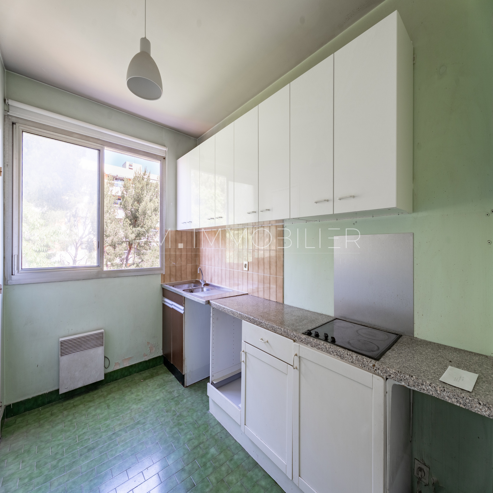 Architecture typique des années 70 pour cette résidence sécurisée et arborée, idéalement située au cœur du 9ᵉ arrondissement de Marseille, qui abrite ce type 4 de 100 m² au 4ᵉ étage avec ascenseur qui séduira par ses volumes généreux et sa clarté naturelle.