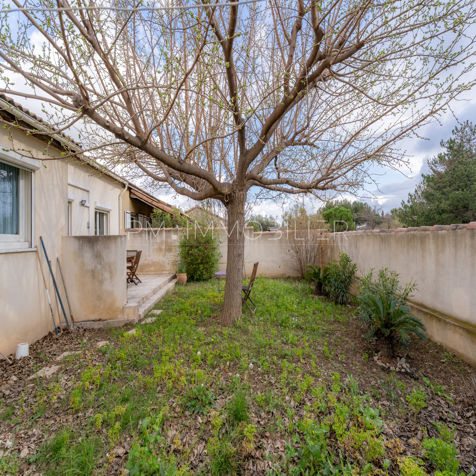 Architecture méditerranéenne et extérieur arboré pour cette maison en type 3 de 83m2 située dans un environnement résidentiel et calme de Vitrolles offrant un cadre de vie agréable, lumineux et tourné vers l'extérieur.