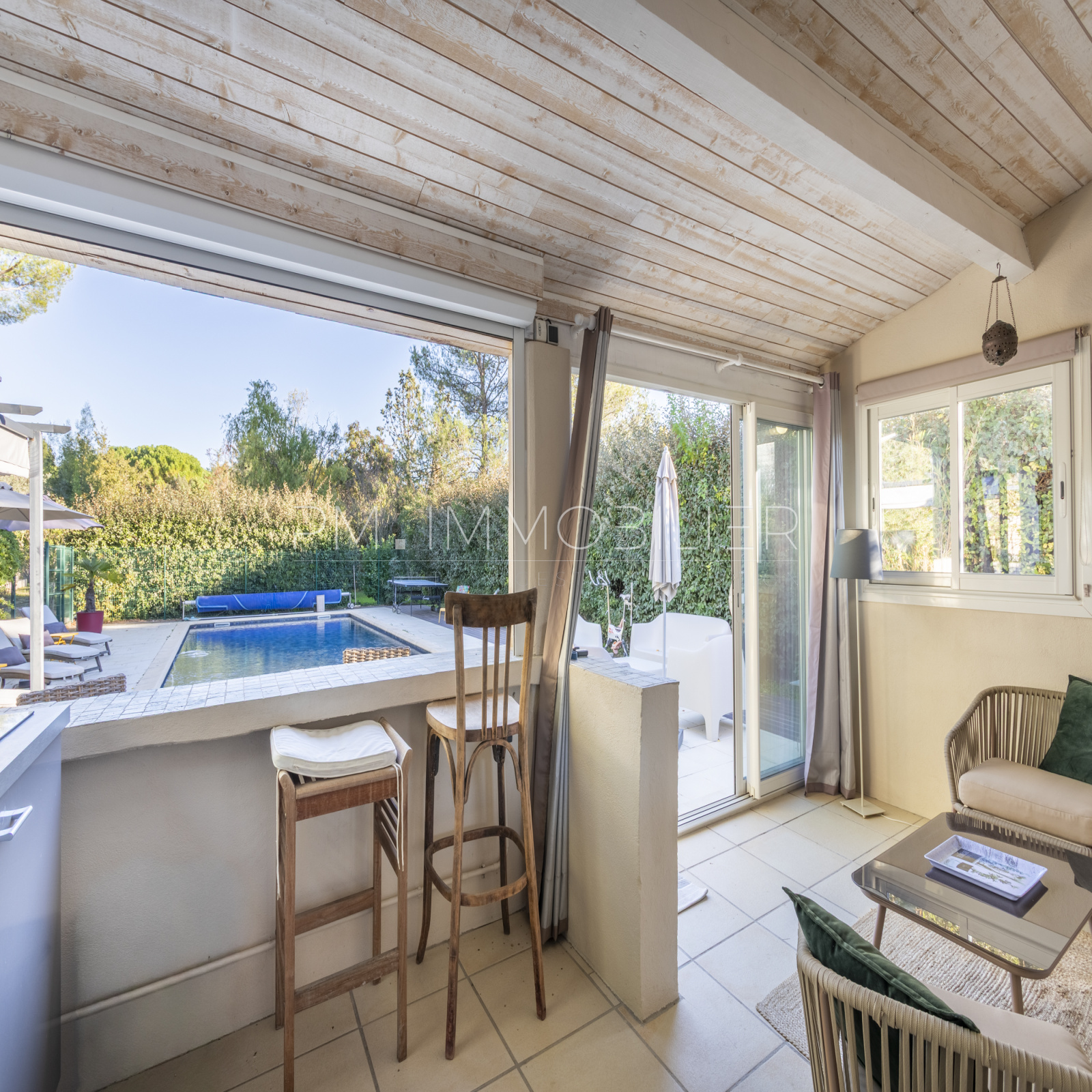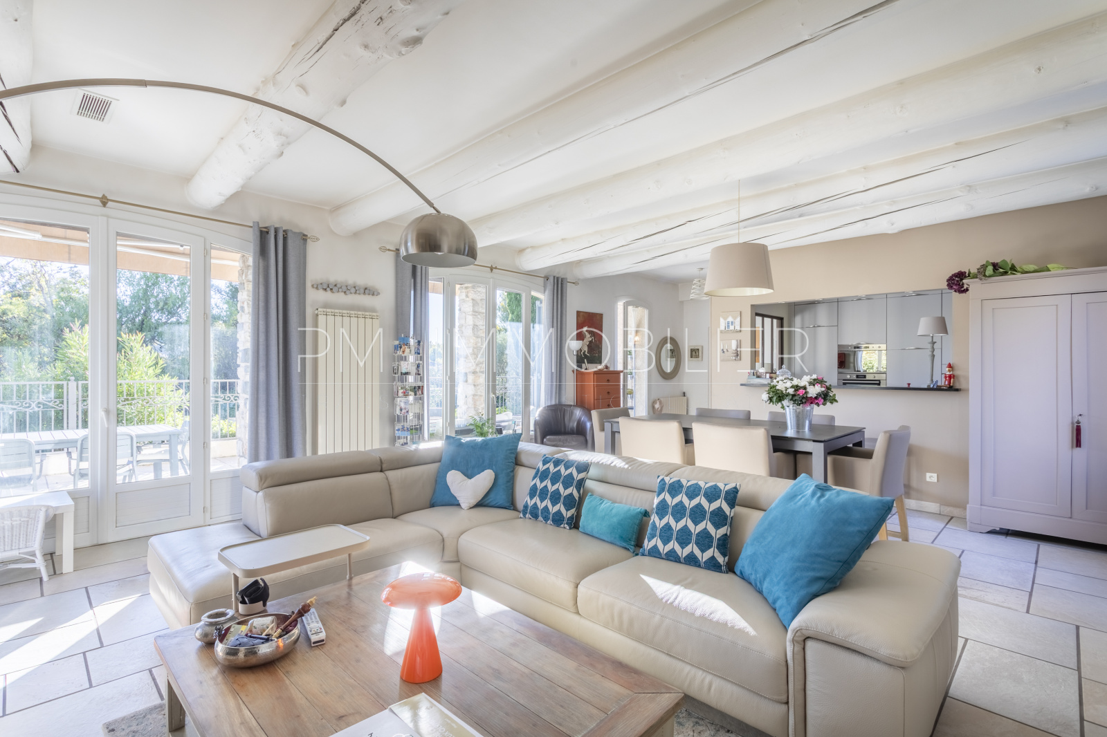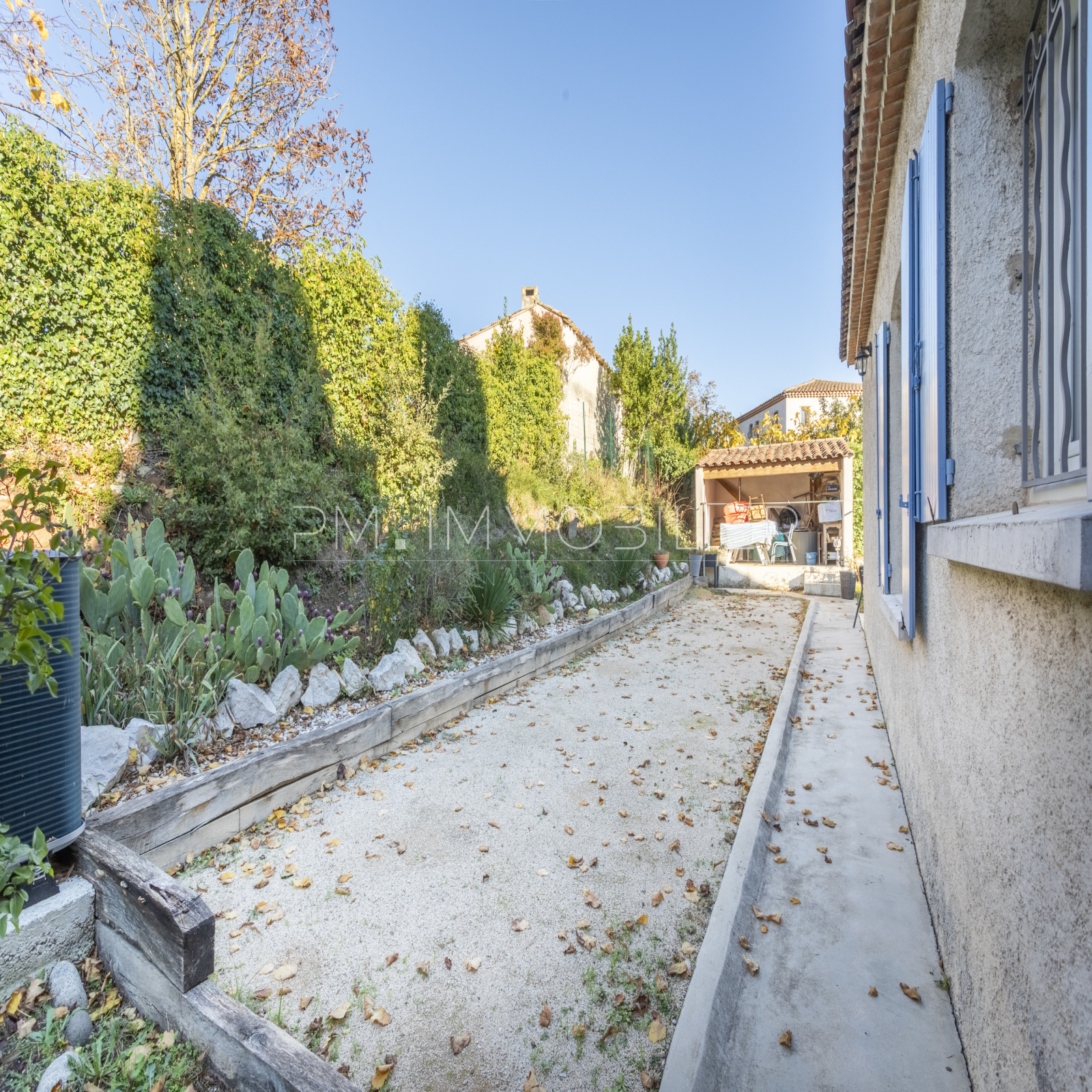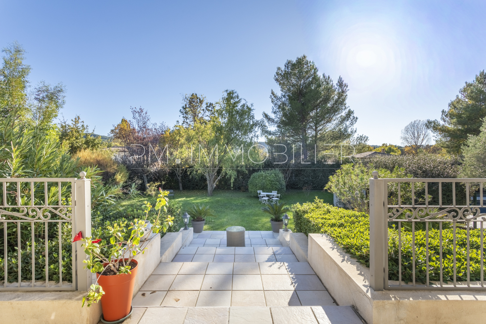 À l’extérieur, la propriété s’épanouit sur 2 200 m² de terrain paysager, clos et soigneusement entretenu : pelouse, massifs méditerranéens, oliviers, arbres d’ornement, zones ombragées et terrain de pétanque composent un ensemble harmonieux et apaisant.