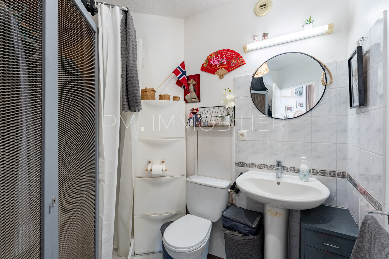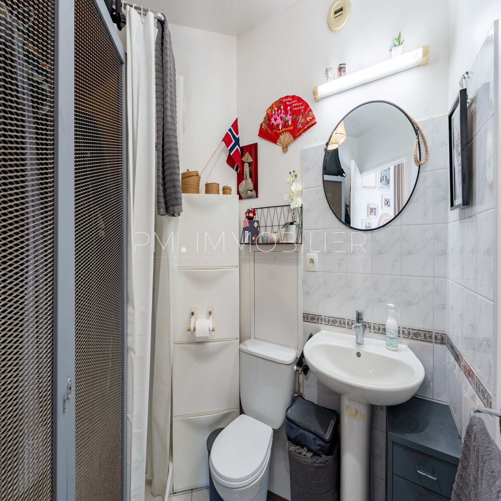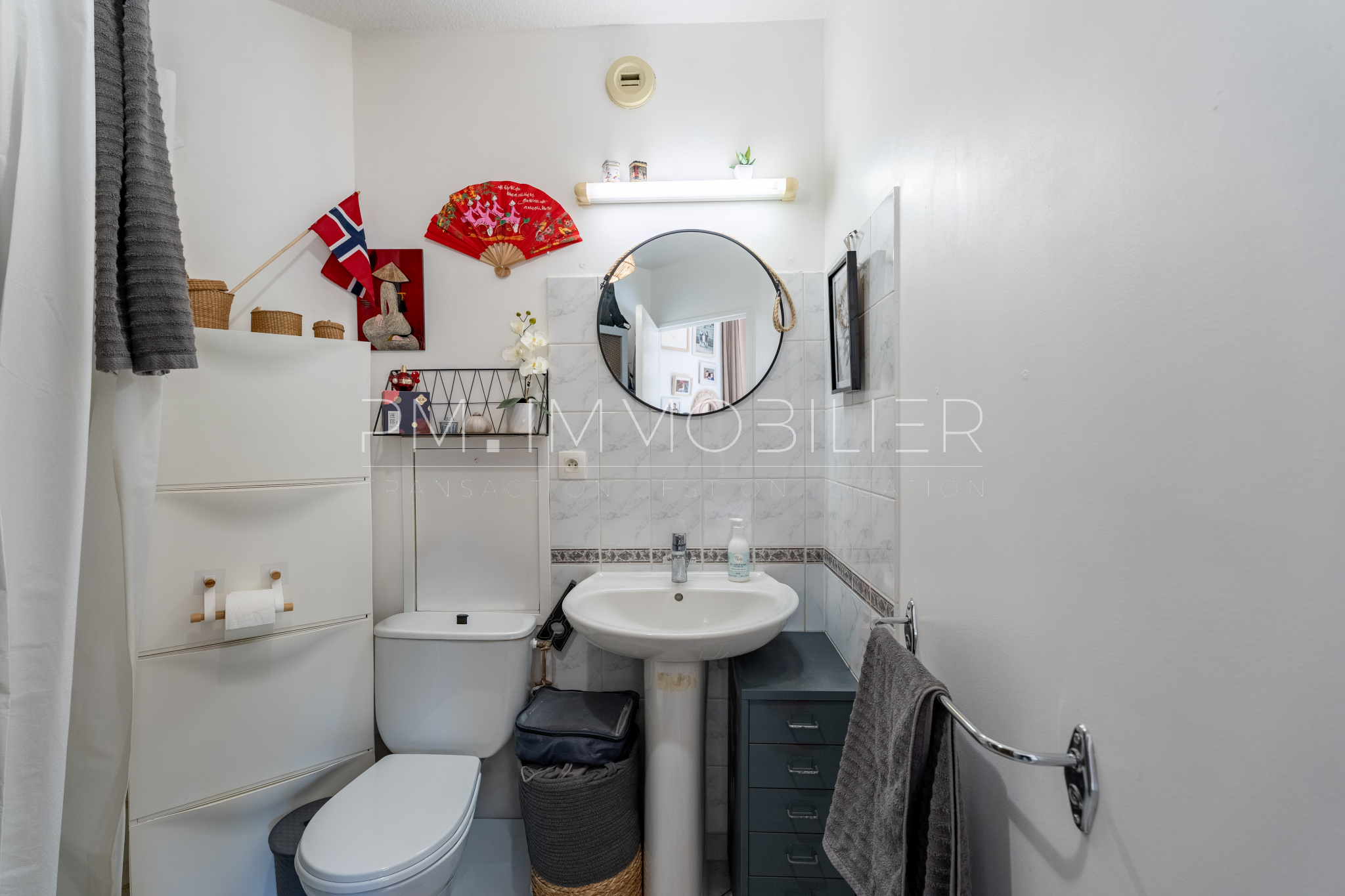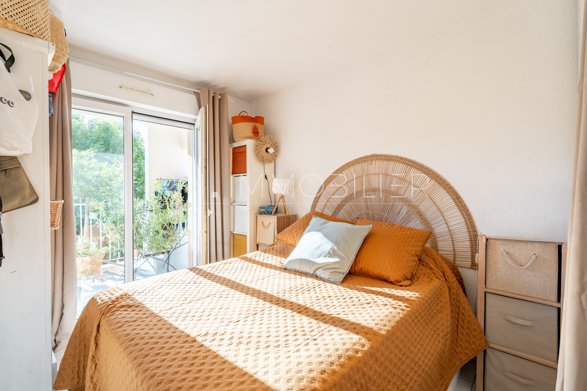 L’espace nuit comprend une chambre lumineuse donnant elle aussi sur le balcon, ainsi qu’une salle d’eau avec WC.