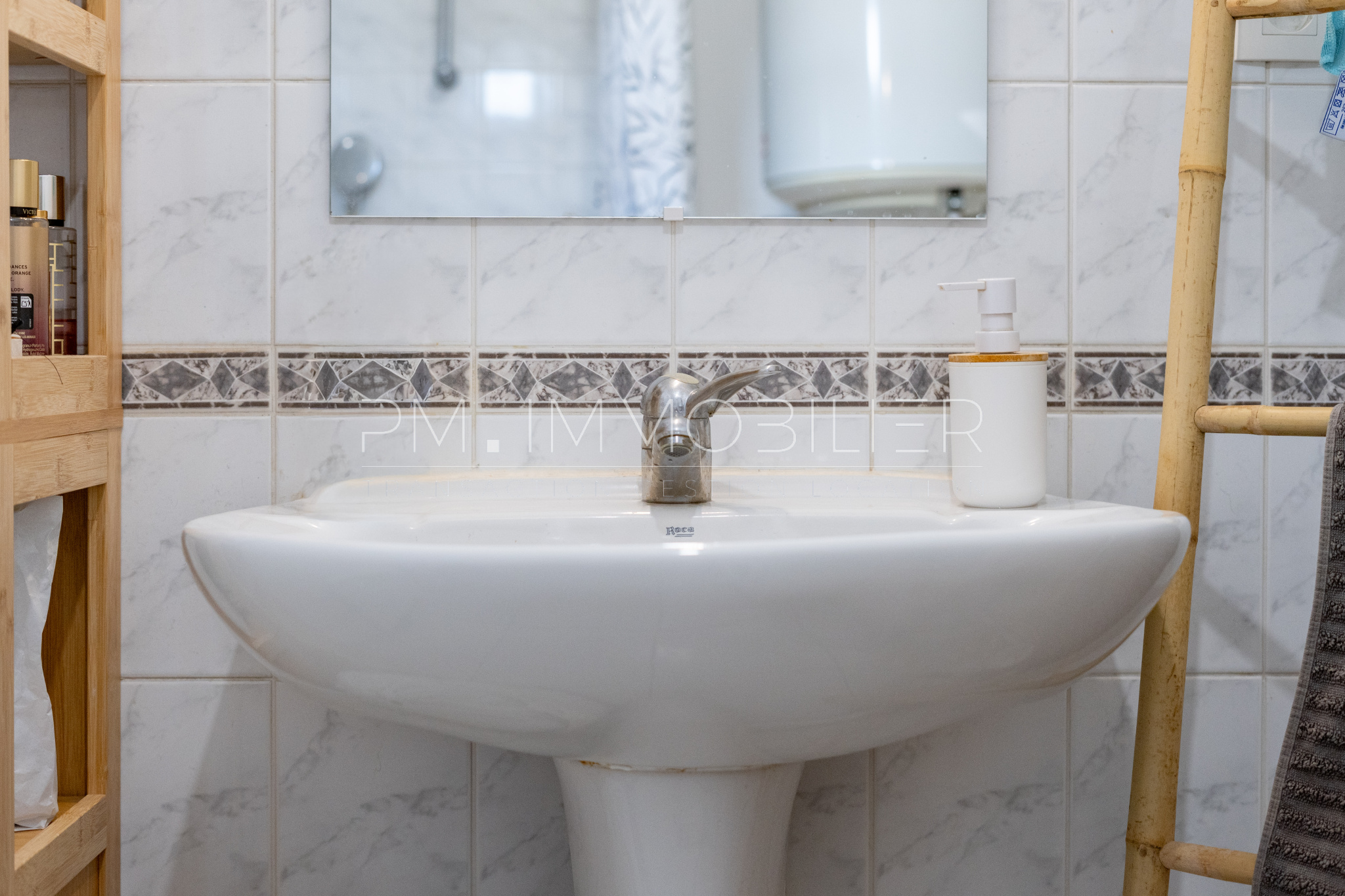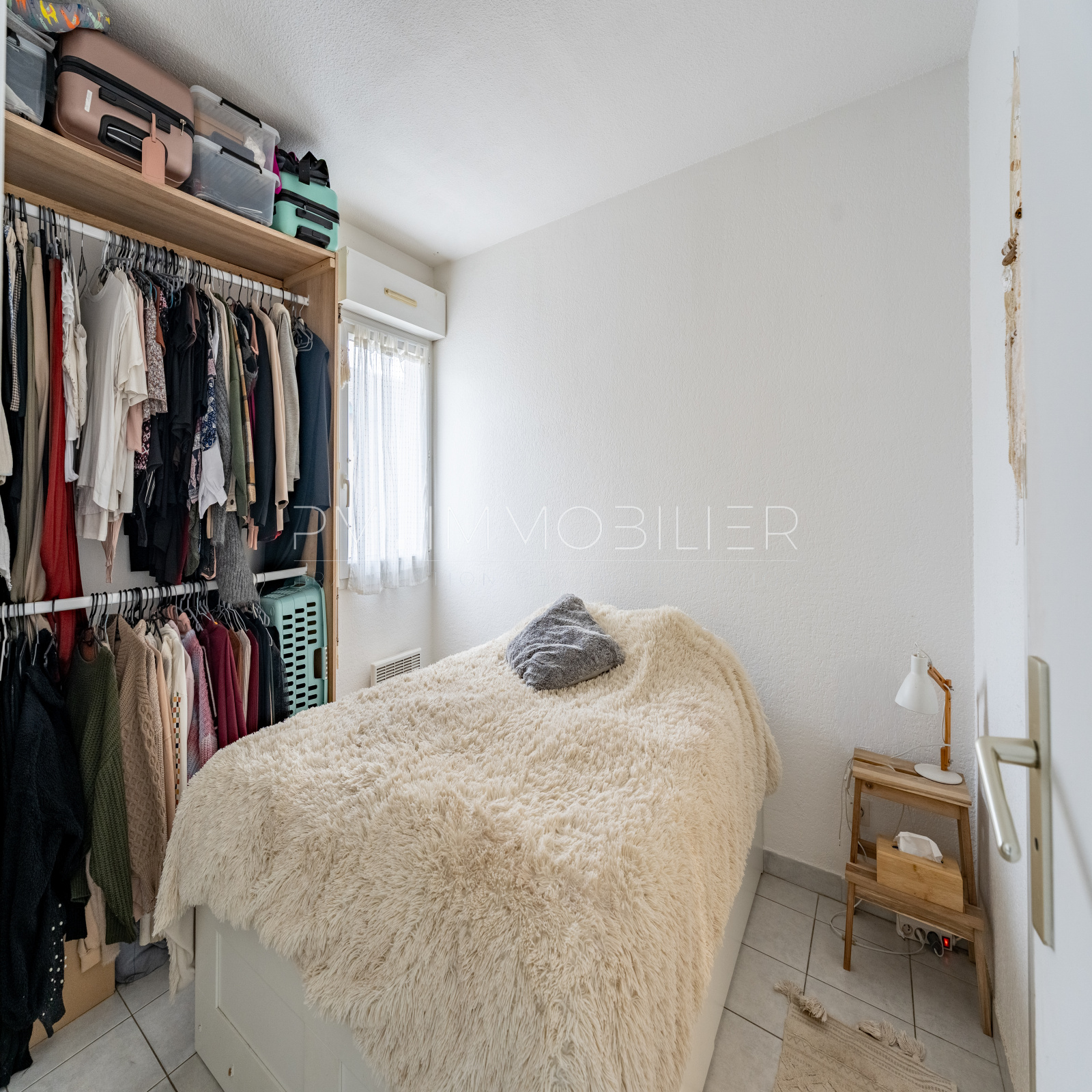 L’espace nuit comprend une chambre lumineuse donnant elle aussi sur le balcon, ainsi qu’une salle d’eau avec WC.