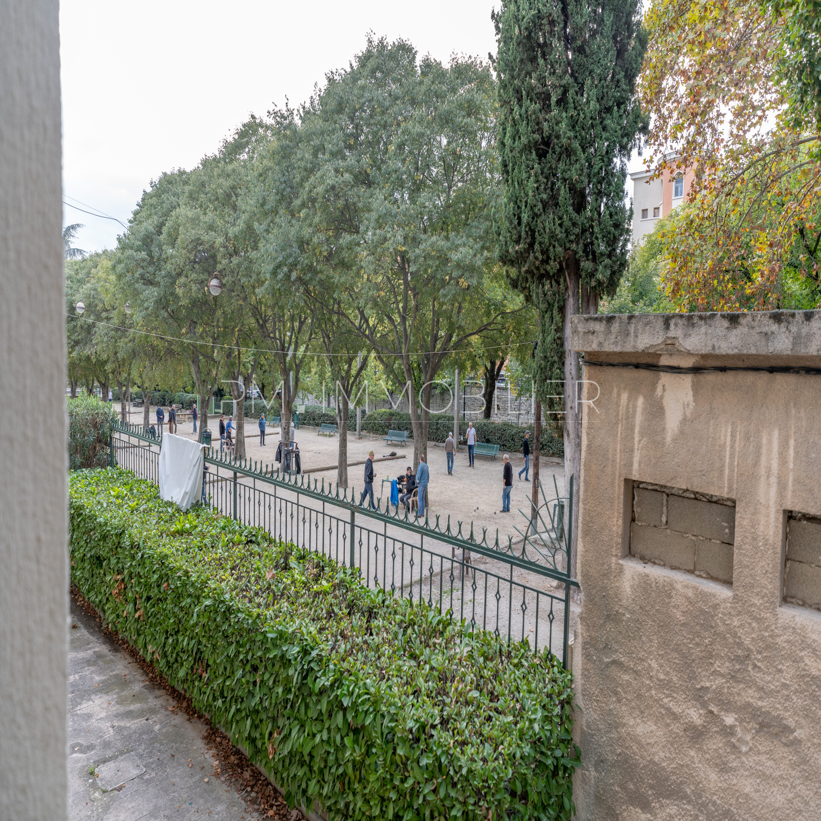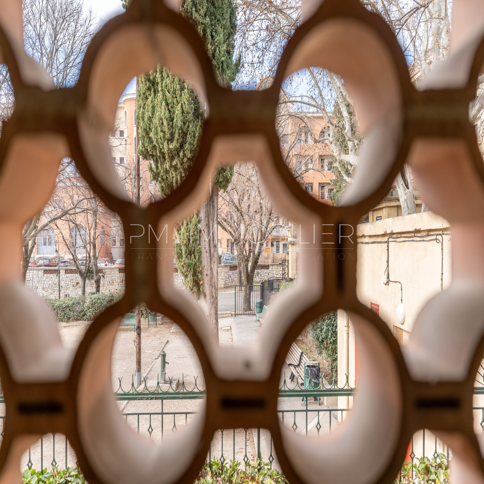 Architecture des années 60 pour cet immeuble situé derrière le parc Jourdan, dans l'un des quartiers les plus recherchés d'Aix-en-Provence, qui accueille au au rez-de-chaussée sur élevé un appartement de charme de 90m2 habitables.