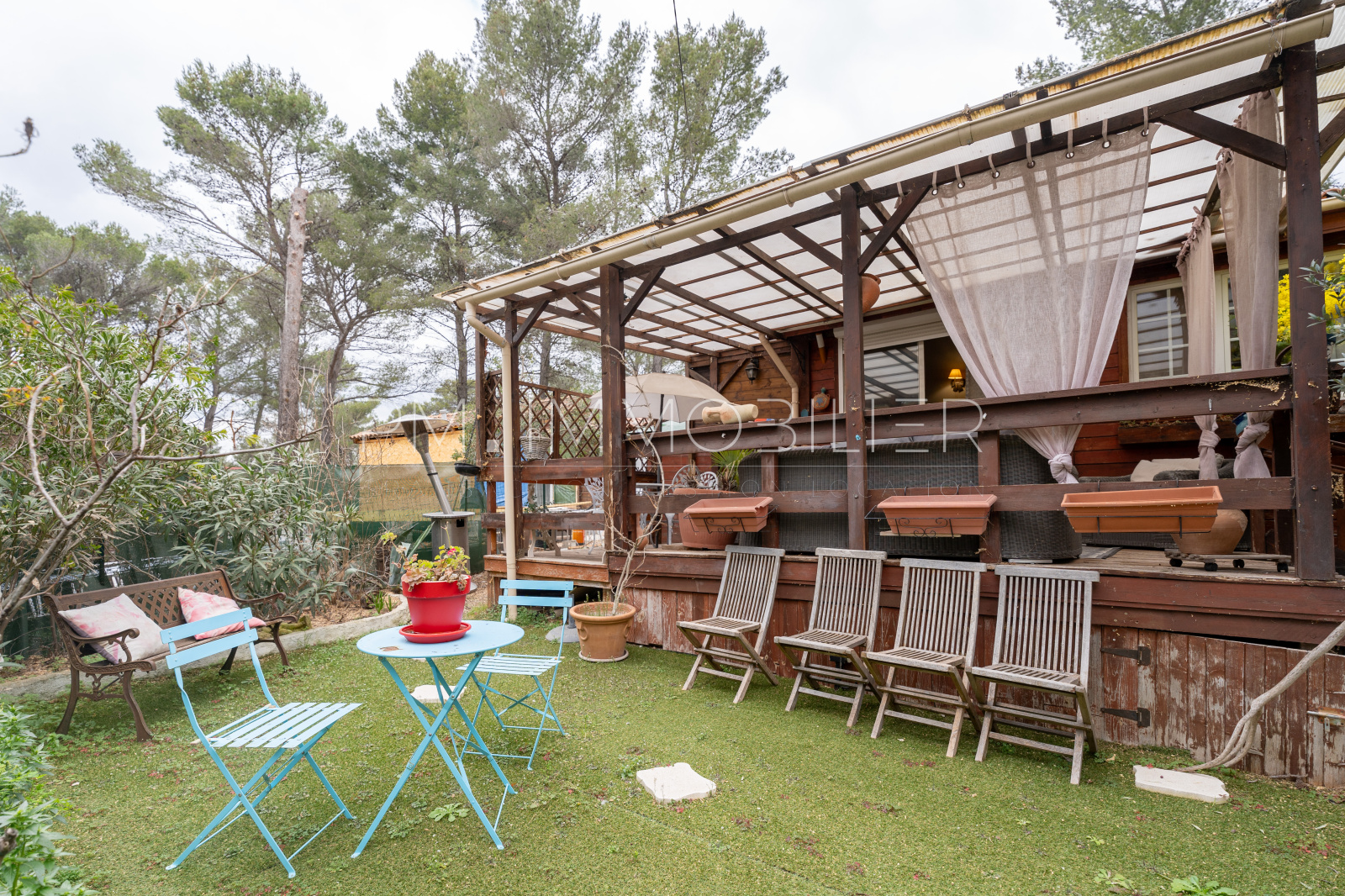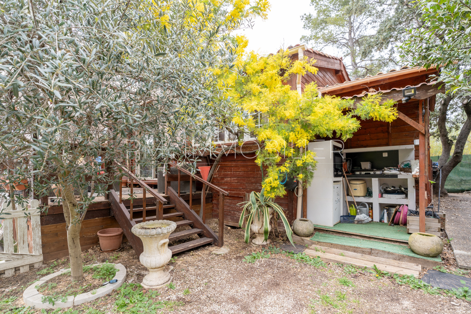 Le terrain du chalet, appartient à la Mairie du Castellet. IL est actuellement loué pour un montant de 240 euros par mois. Ce loyer est voué à disparaiîre prochainement car les parcelles sont mises en vente pendant les 2 années à venir. Cependant, une possibilité de crédit vendeur pourra être mis en place pour ceux qui le désirent.